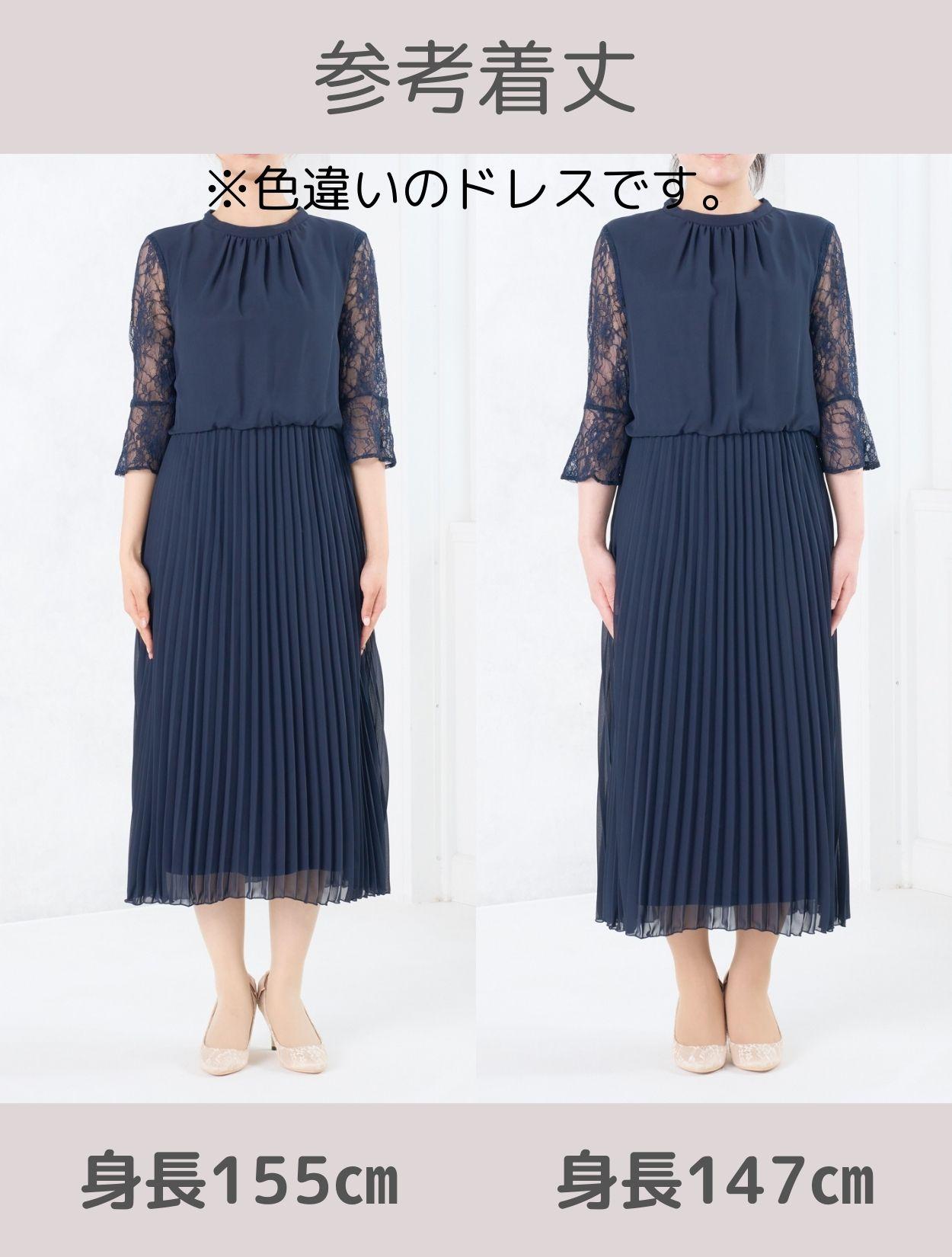 デコルテ部分の露出を抑えたミニボトルネックが上品なデザインのドレス。首元が開いていないので、デコルテ部分が華奢な方でも着こなしやすいです。お袖にはレースの程よい透け感のあるので、重たく見えないバランスが優秀です。トレンドの袖ありドレスは、結婚式でも羽織り不要で一枚で着られます。細いプリーツスカートは、縦のラインをしっかり強調する事でスタイルアップ効果あり。広がらないプリーツスカートのラインは、落ち着いた大人っぽい着こなしが出来ます。ウエストはゴム仕様で、長時間の着用でも着心地は抜群です。丈はミモレ丈で、軽いシフォン生地のスカートなので、小柄な方にもおすすめです。