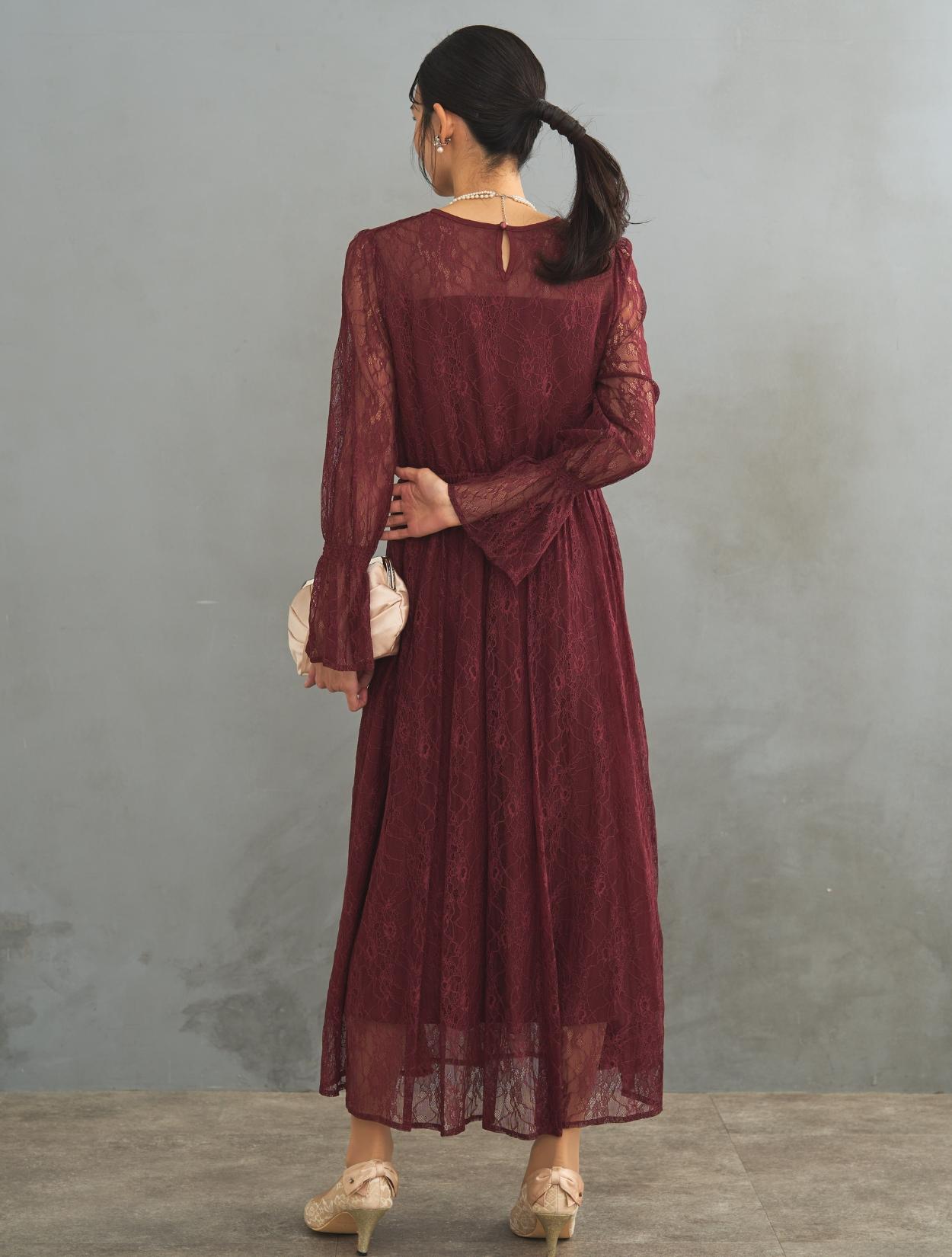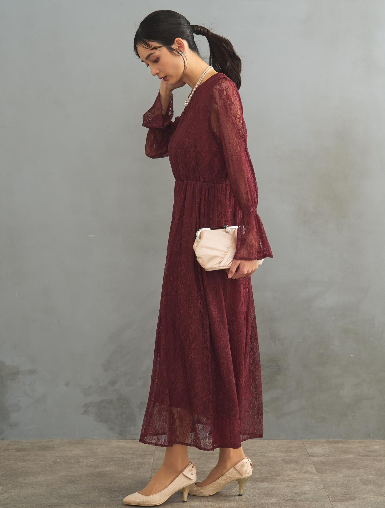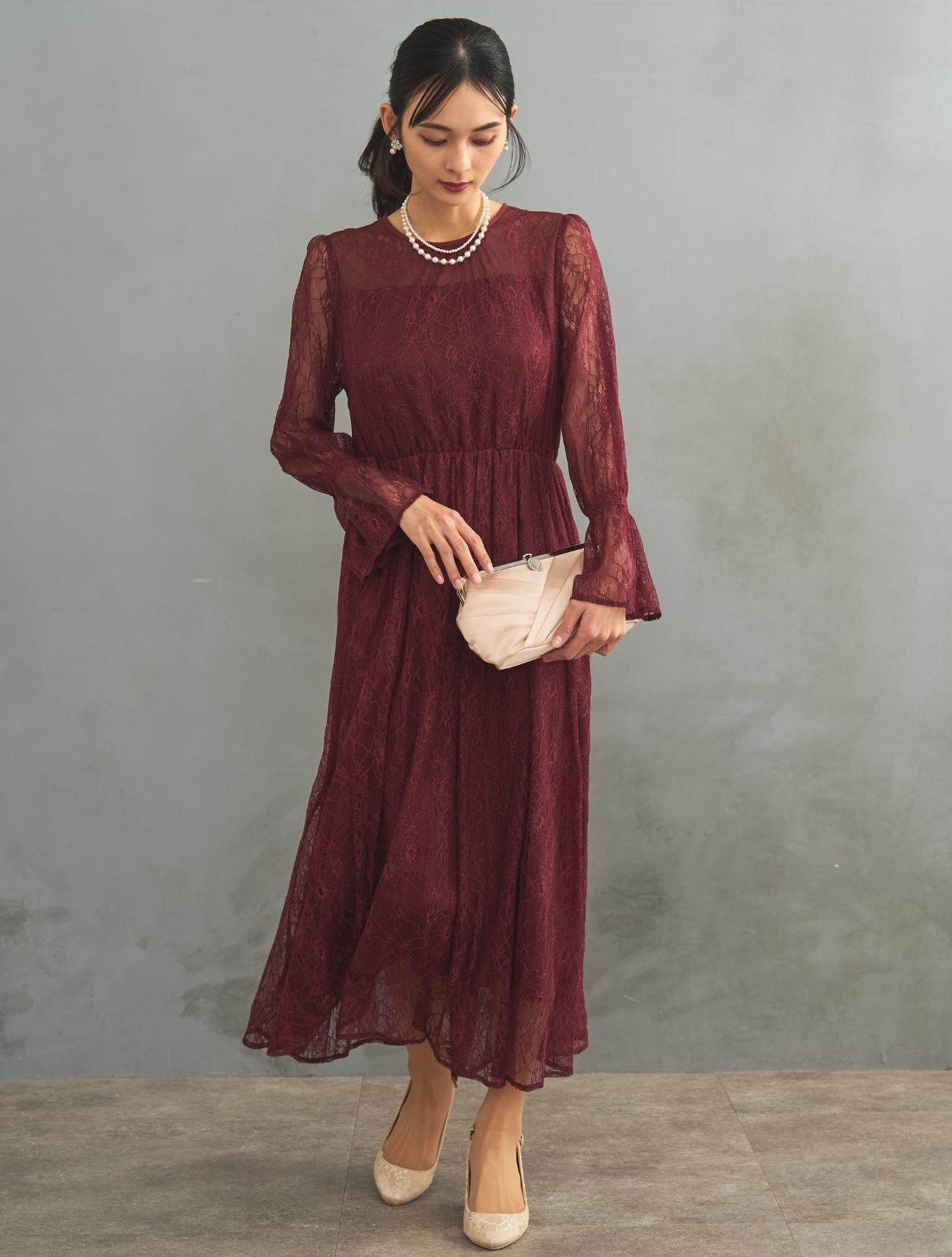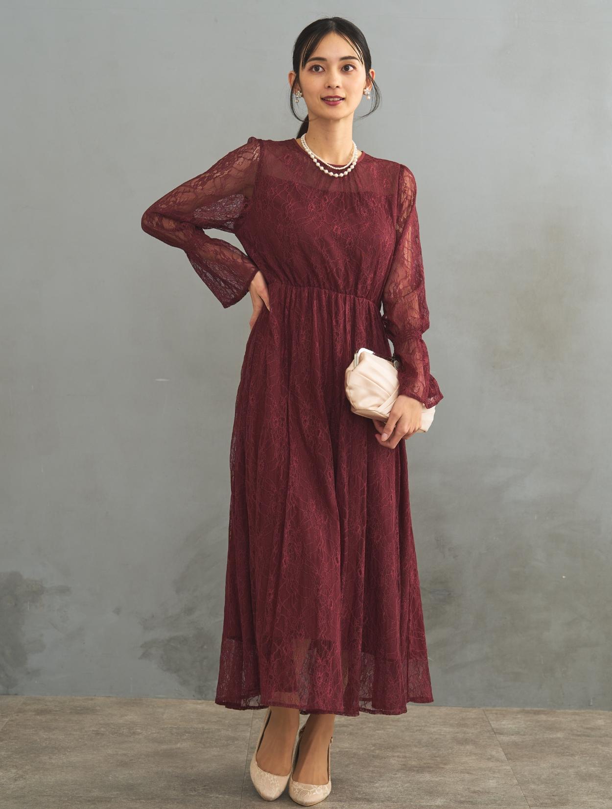レース生地は年中ご着用いただけますが、長袖なので特に「春・秋・冬」におすすめです。また、ボルドーは秋冬に人気のカラーです。