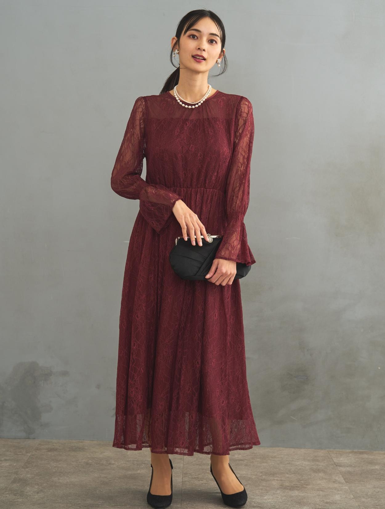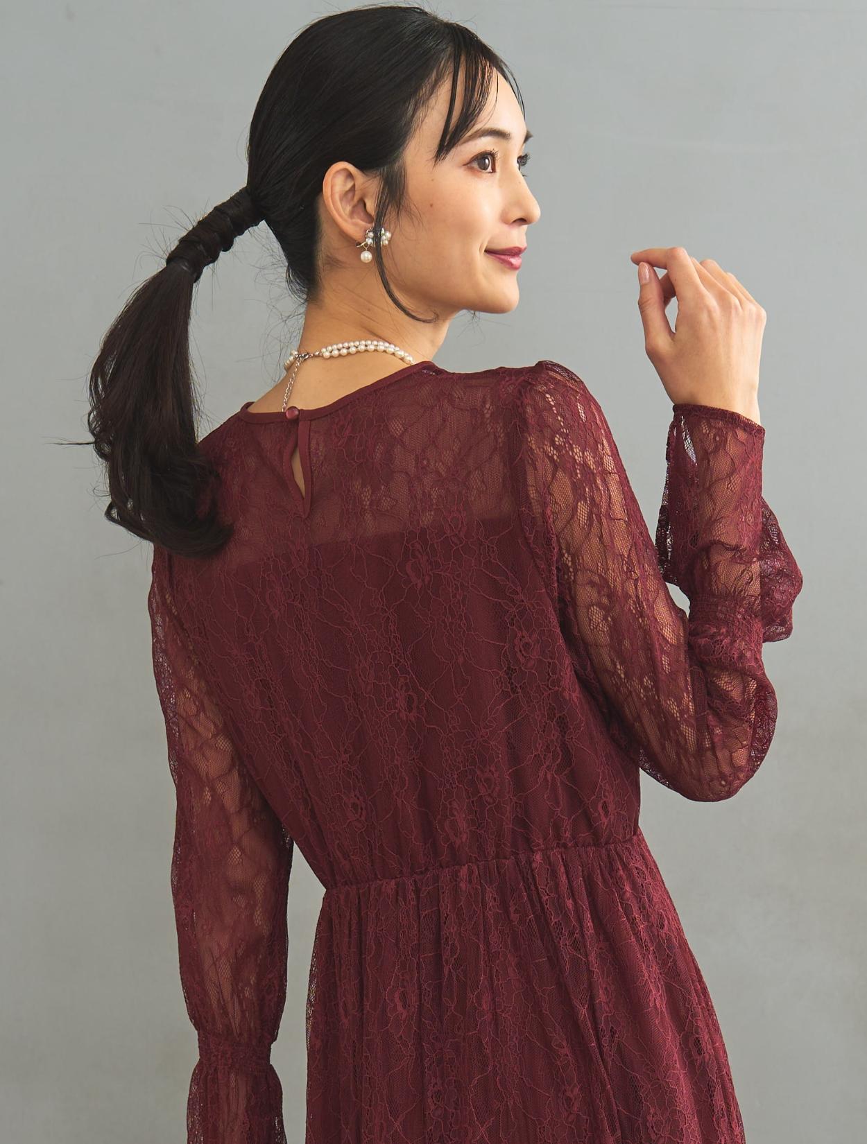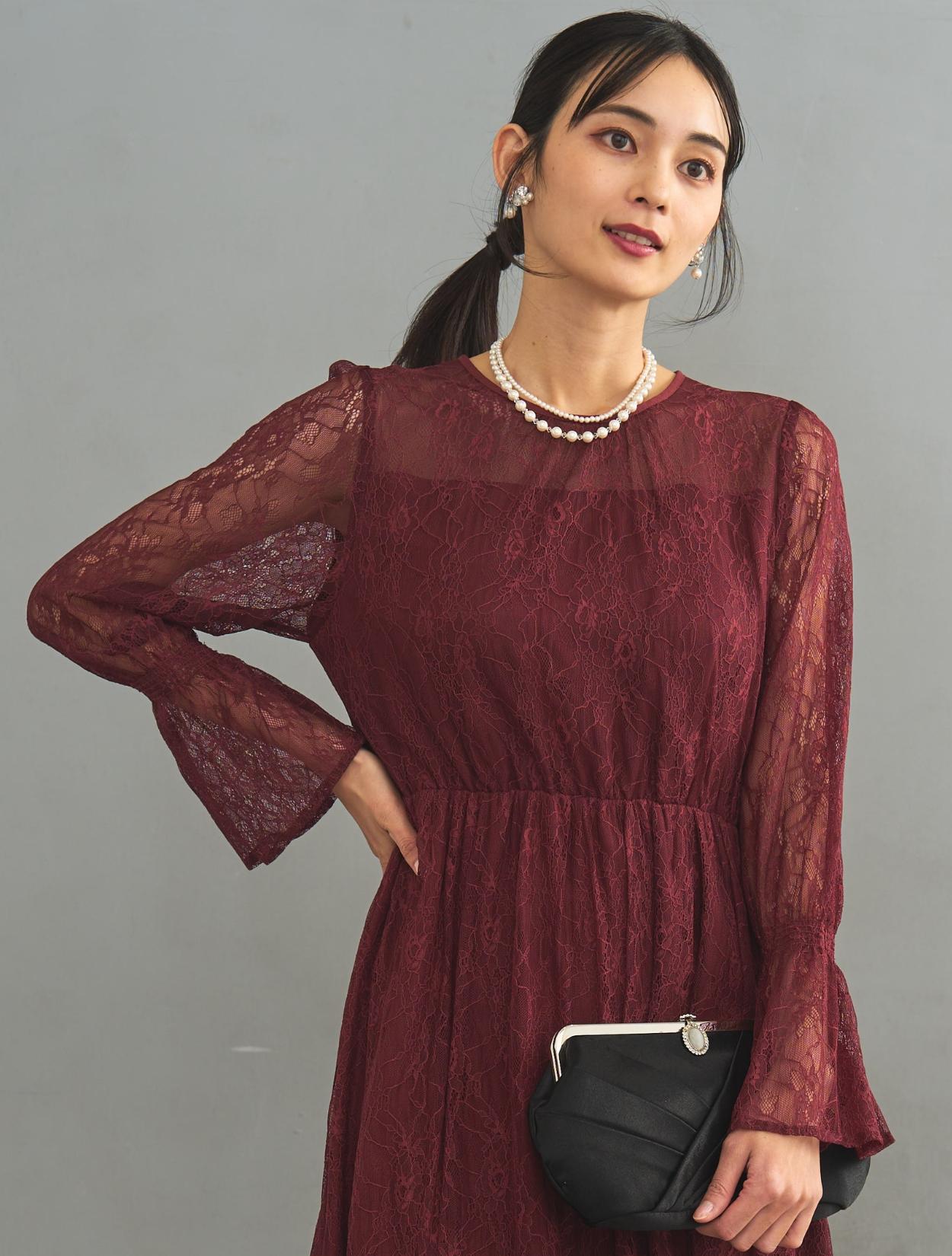 レース生地は年中ご着用いただけますが、長袖なので特に「春・秋・冬」におすすめです。また、ボルドーは秋冬に人気のカラーです。