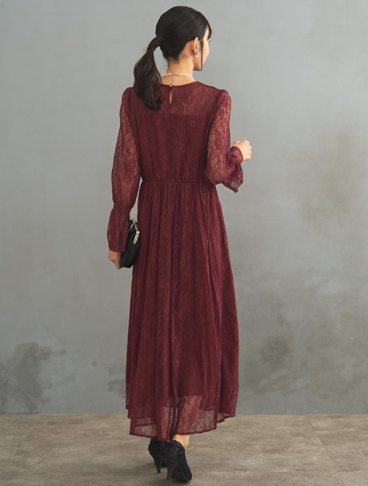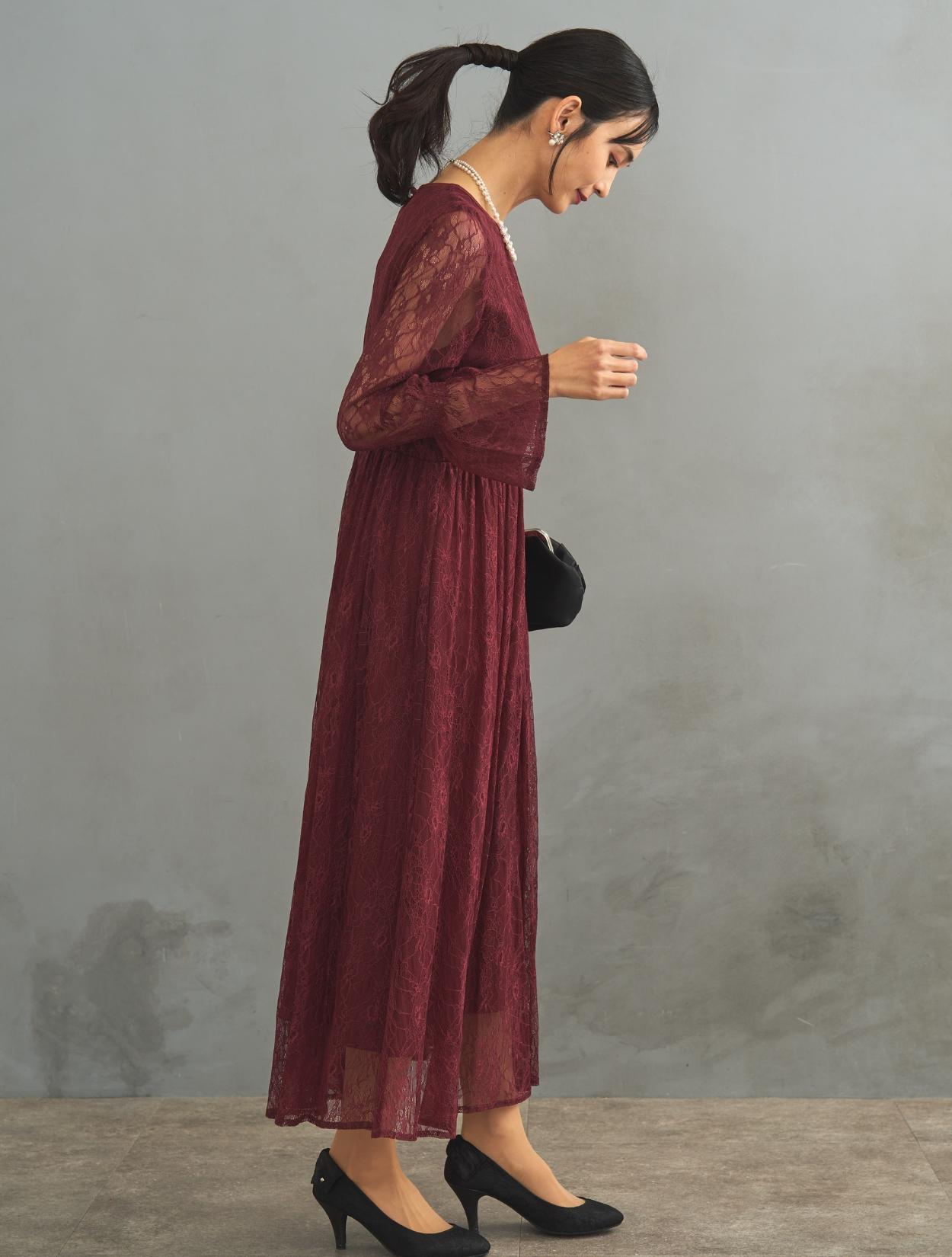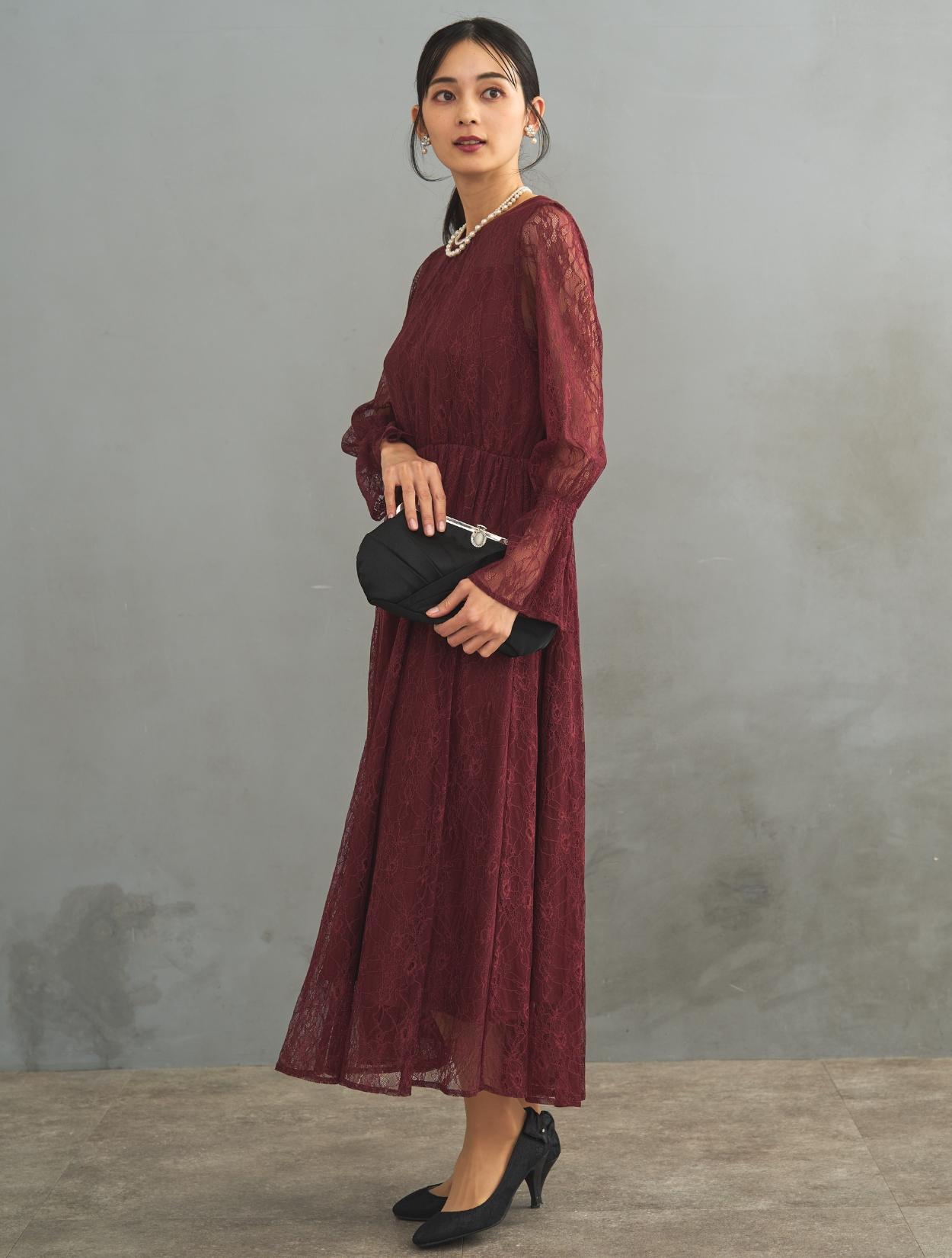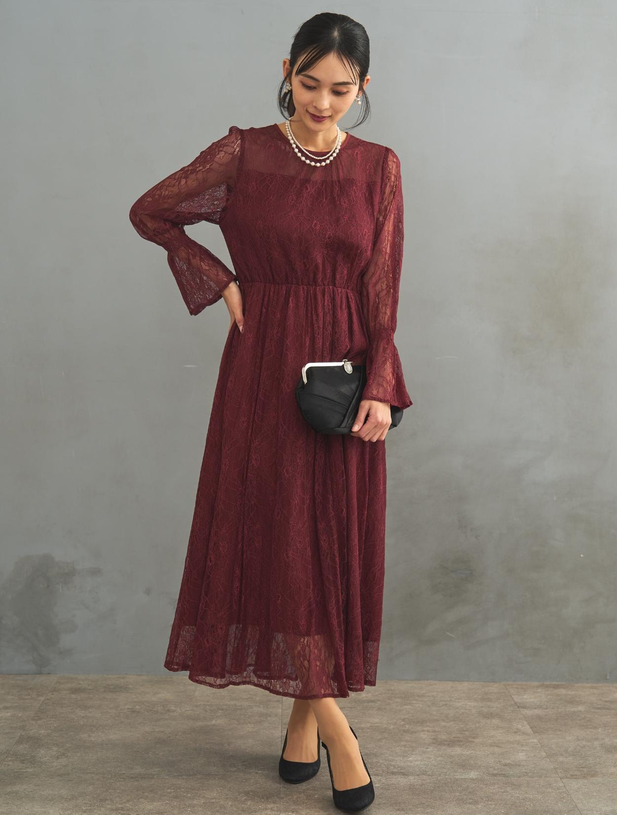レース生地は年中ご着用いただけますが、長袖なので特に「春・秋・冬」におすすめです。また、ボルドーは秋冬に人気のカラーです。