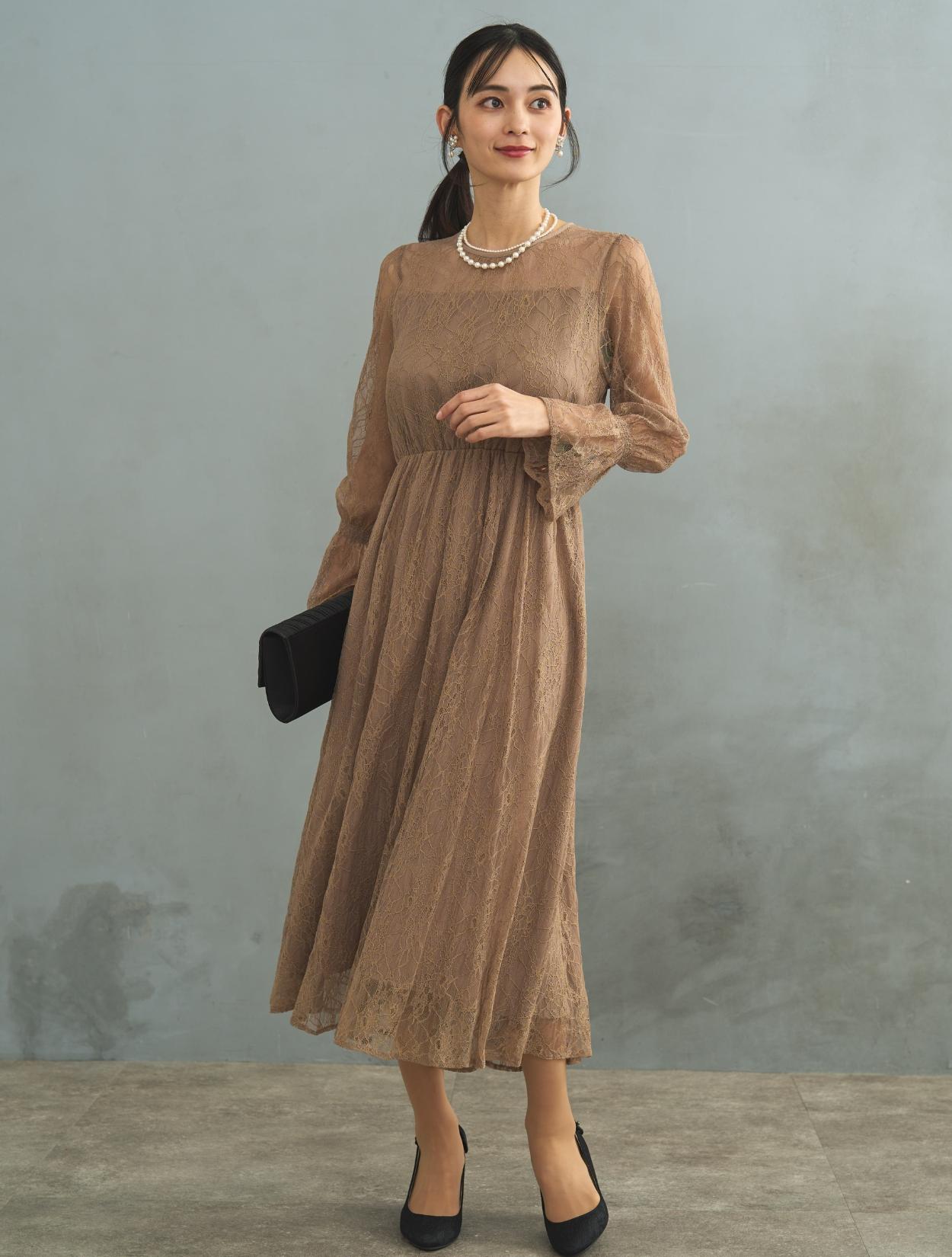レース生地は年中ご着用いただけますが、長袖なので特に「春・秋・冬」におすすめです。また、ベージュは秋冬に人気のカラーです。