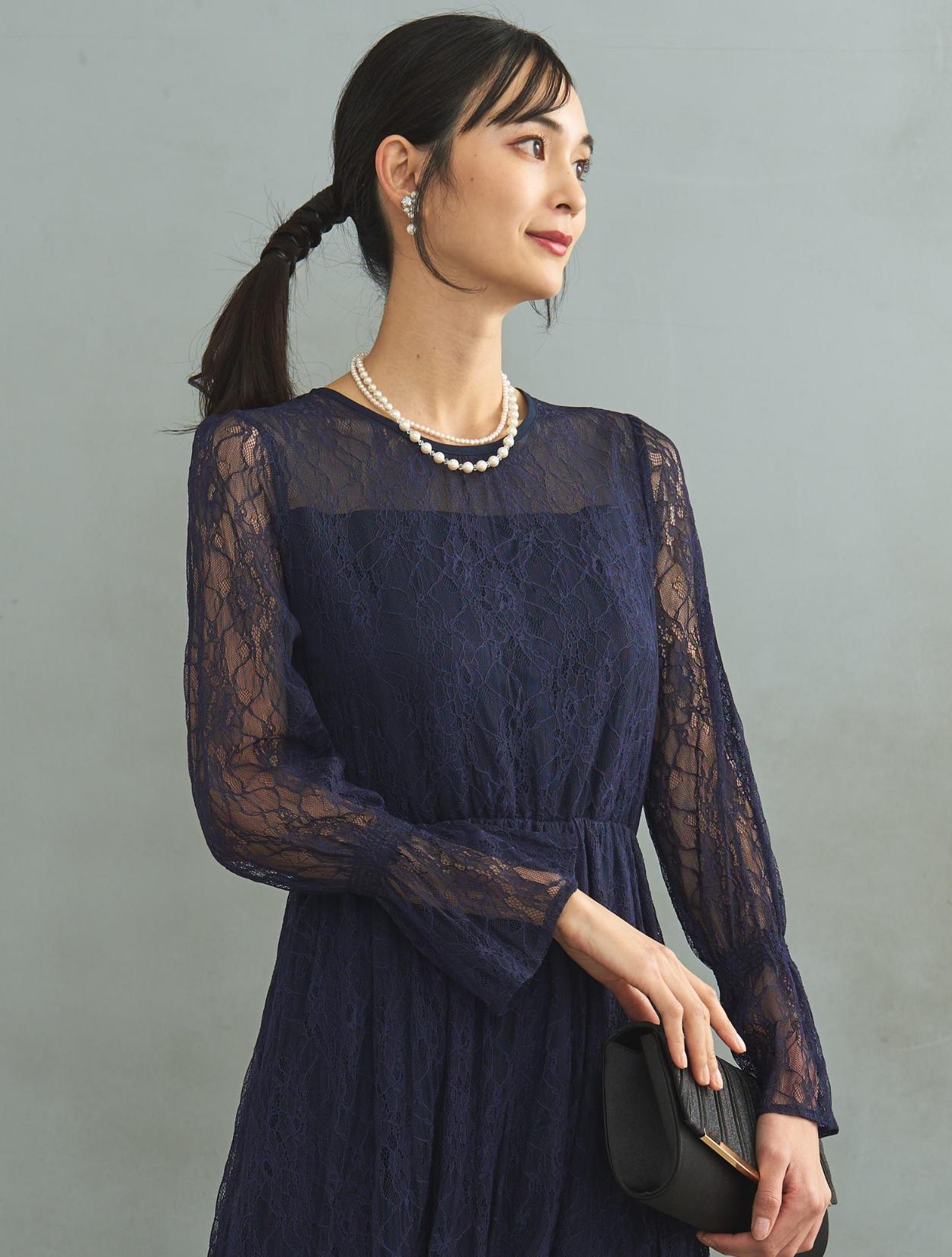※レースが使われているドレスは、アクセサリーやバッグのチェーンなど、引っかからない様ご注意ください。肩部分がレースのドレスは、バッグの肩掛けはご遠慮下さい。レースは繊細な素材なので、破れや傷みの原因になります。