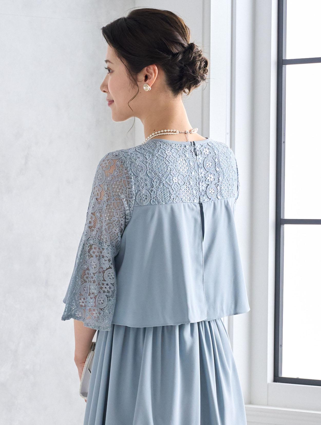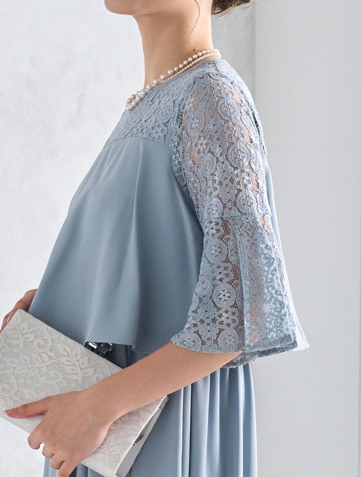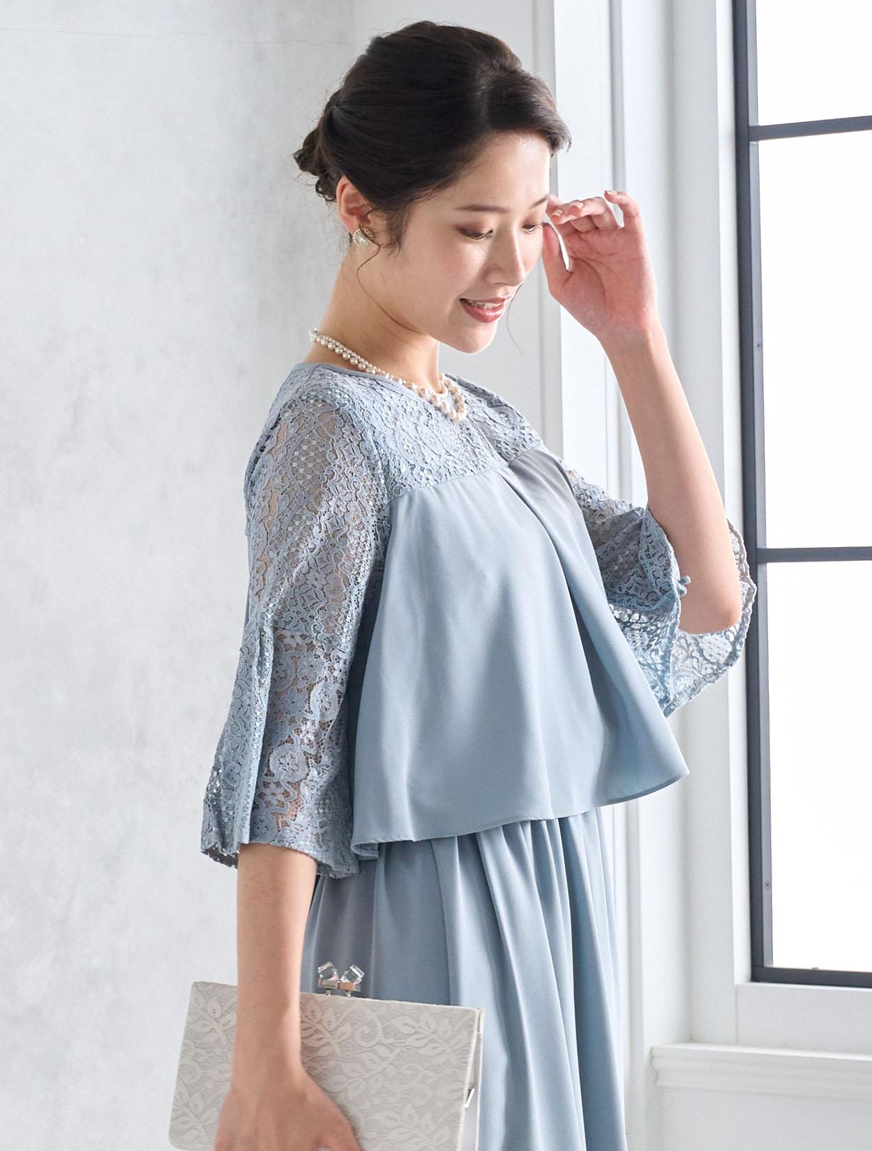 ジョーゼットとレース素材なので、「春・夏・秋・冬」と年中ご着用いただけます。爽やかなペールブルーのカラーは特に春夏に人気です。あえて冬に着るのも良いでしょう。
