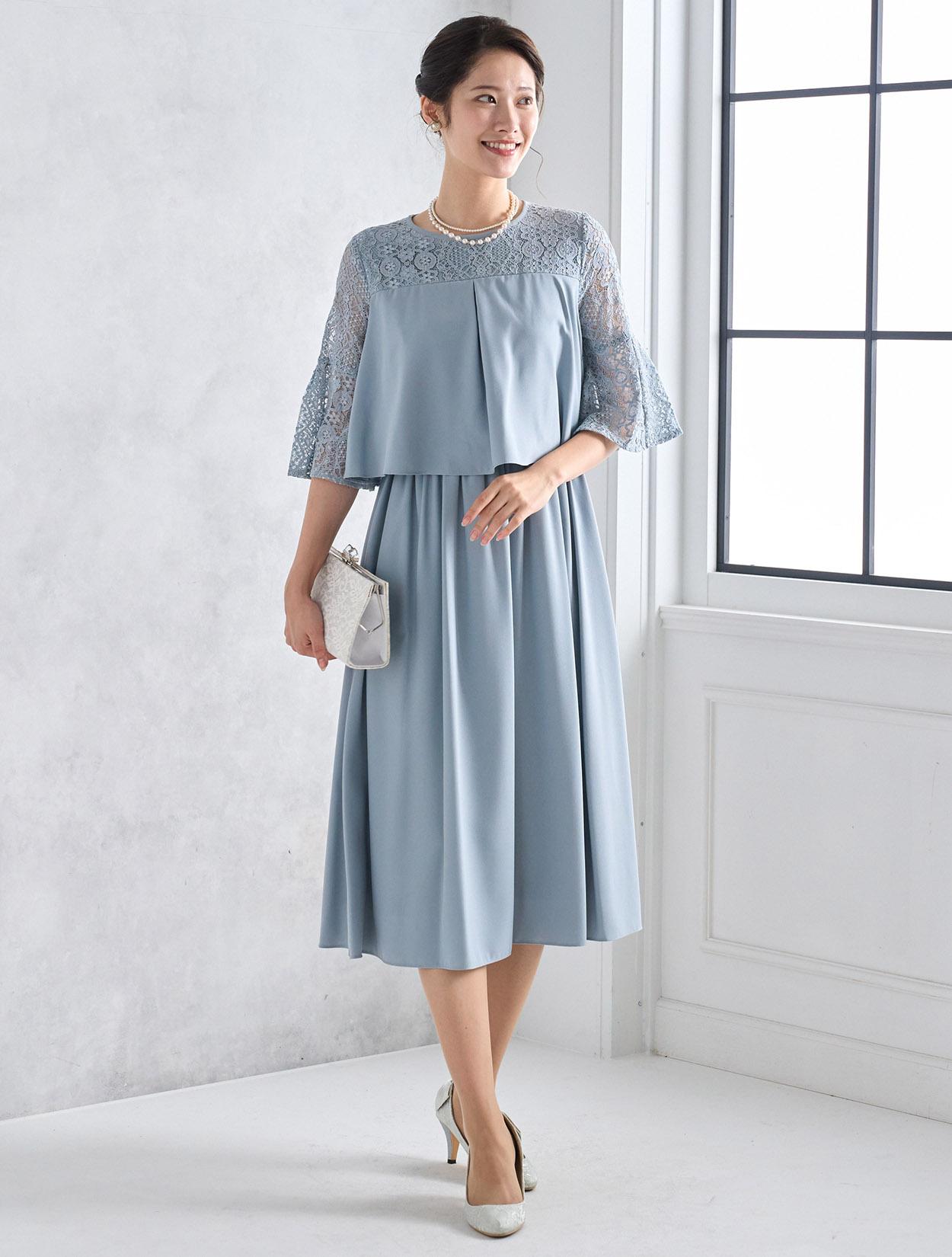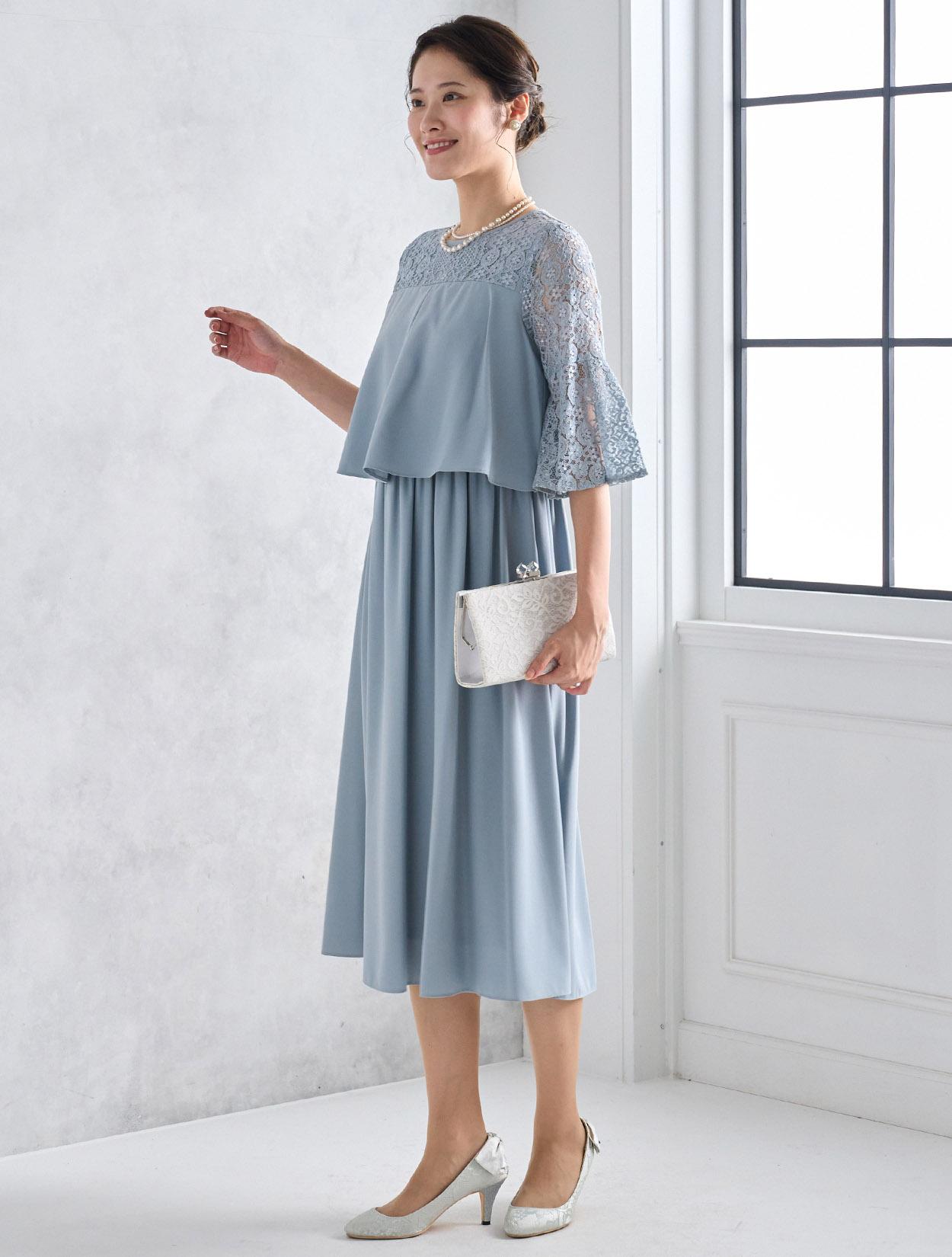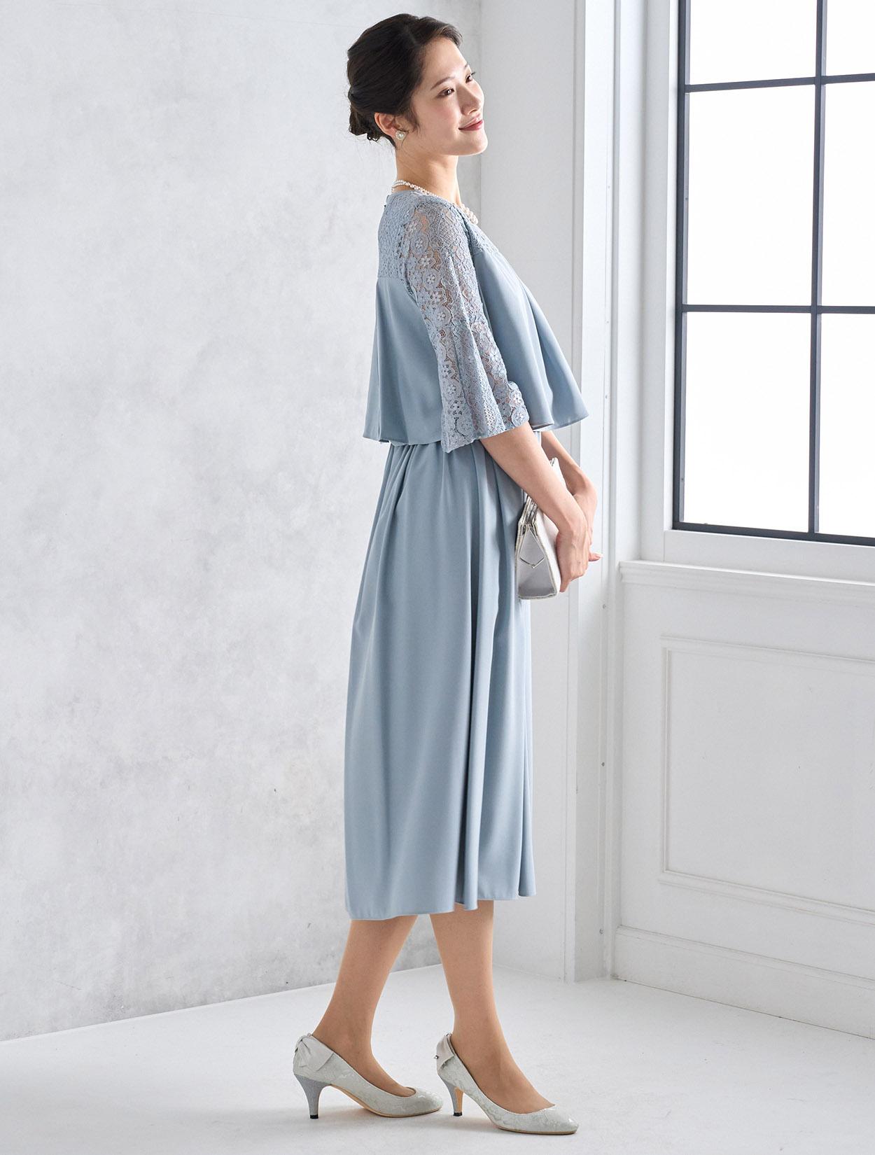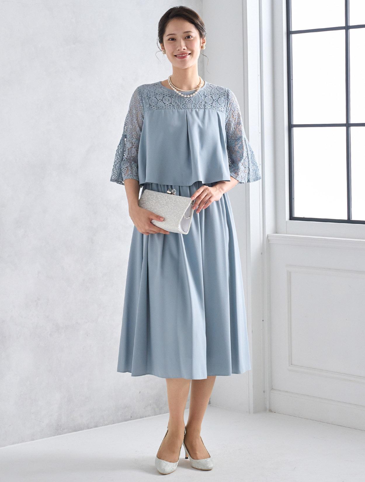 ジョーゼットとレース素材なので、「春・夏・秋・冬」と年中ご着用いただけます。爽やかなペールブルーのカラーは特に春夏に人気です。あえて冬に着るのも良いでしょう。