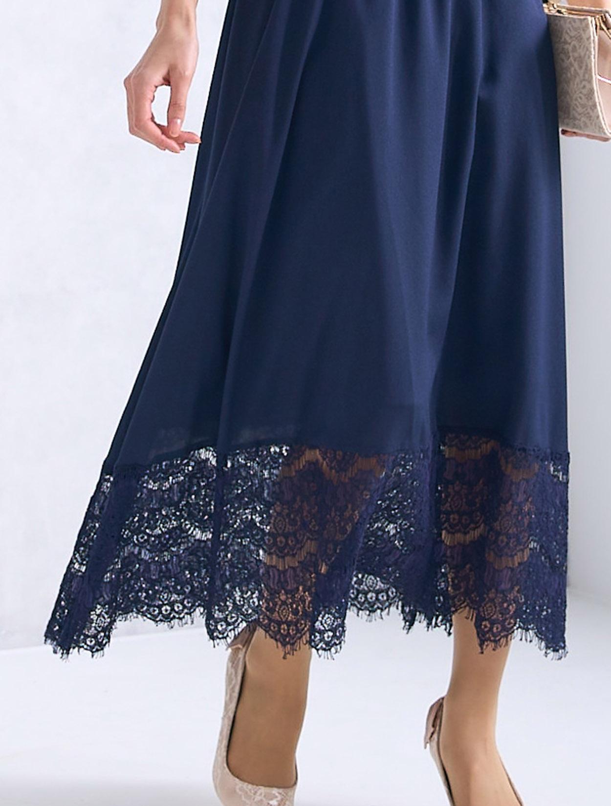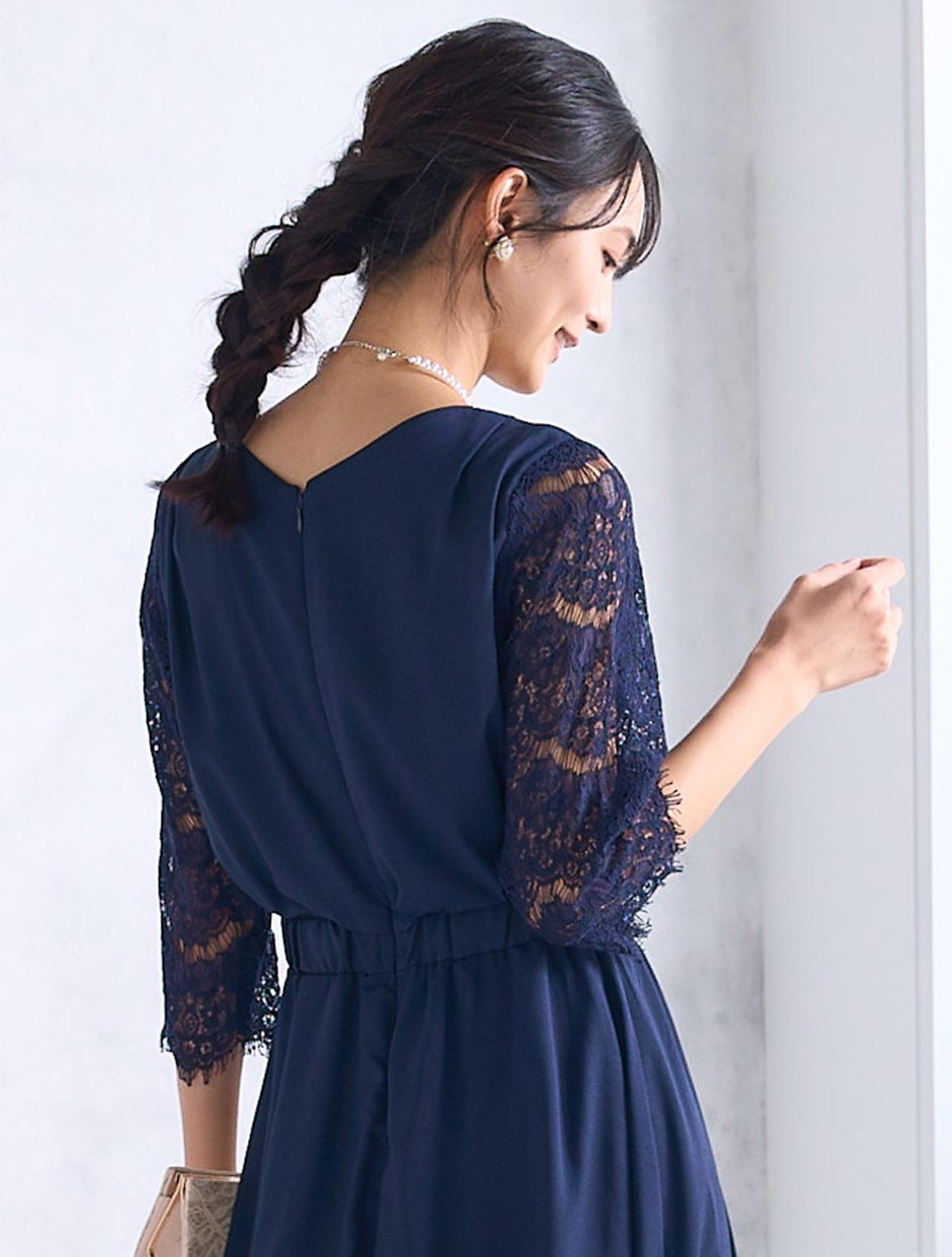 ※レースが使われているドレスは、アクセサリーやバッグのチェーンなど、引っかからない様ご注意ください。肩部分がレースのドレスは、バッグの肩掛けはご遠慮下さい。レースは繊細な素材なので、破れや傷みの原因になります。