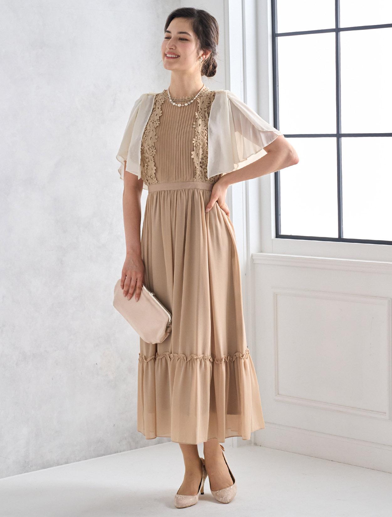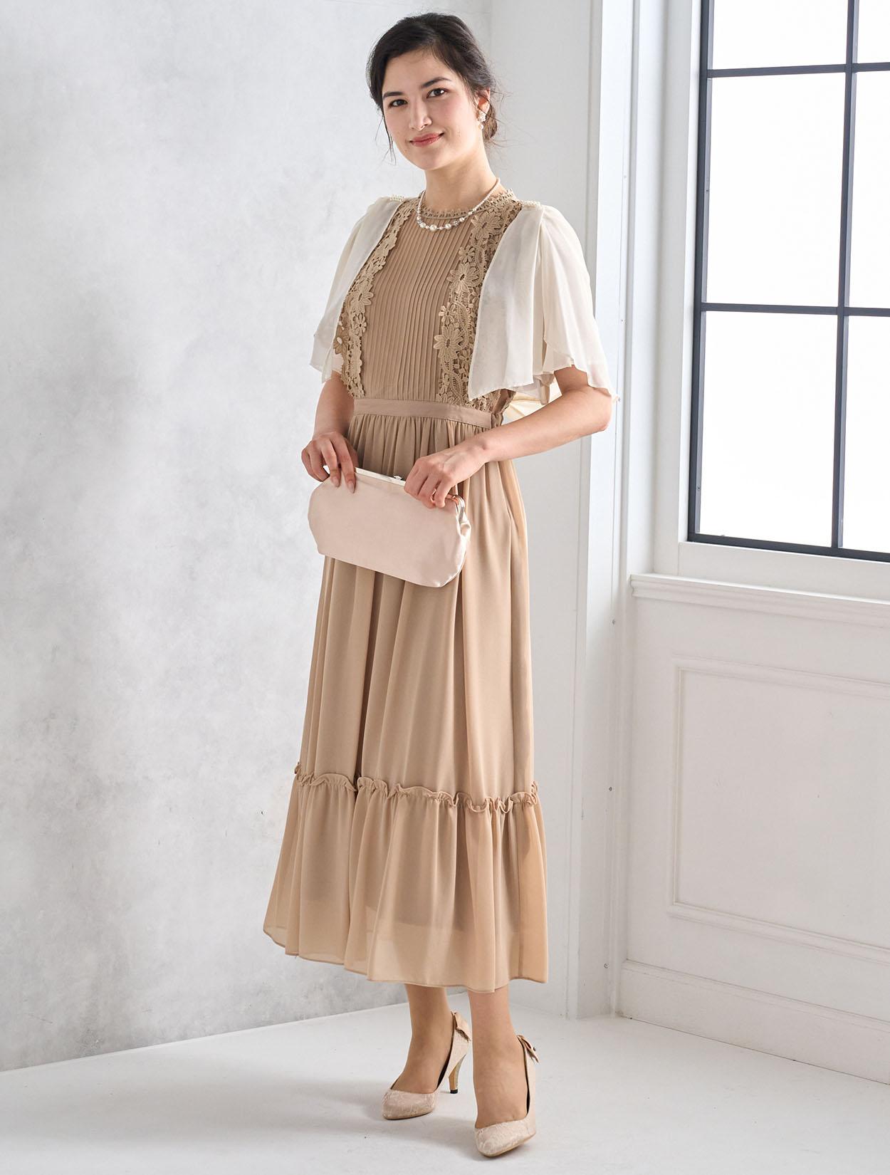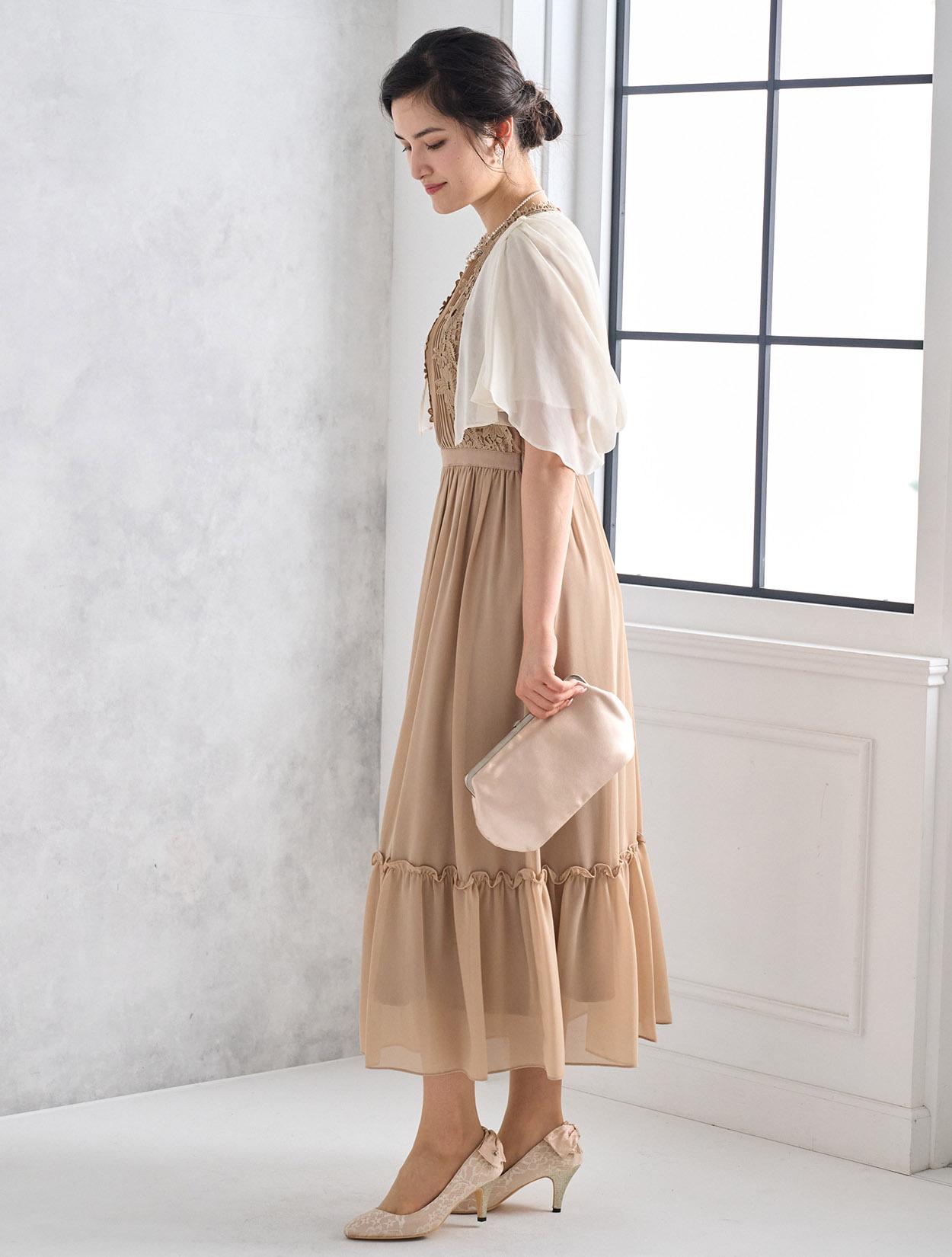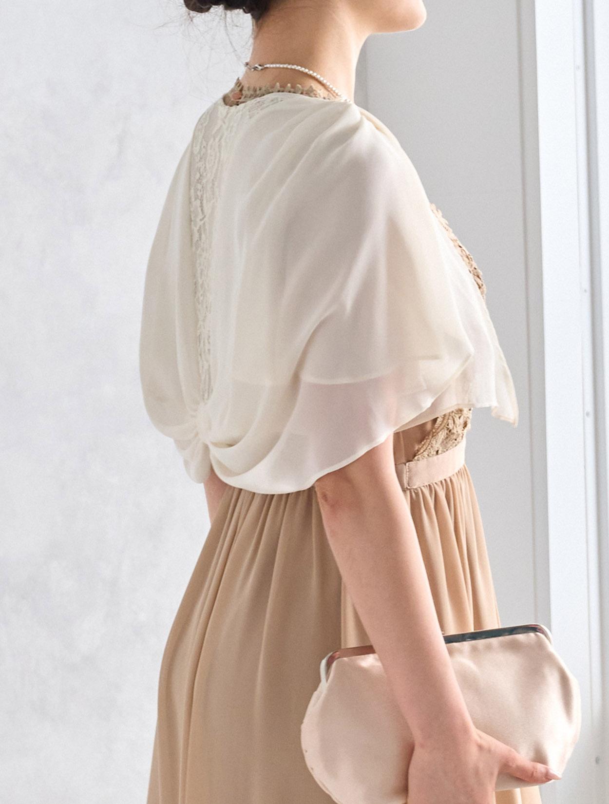 ※レースが使われているドレスは、アクセサリーやバッグのチェーンなど、引っかからない様ご注意ください。肩部分がレースのドレスは、バッグの肩掛けはご遠慮下さい。レースは繊細な素材なので、破れや傷みの原因になります。