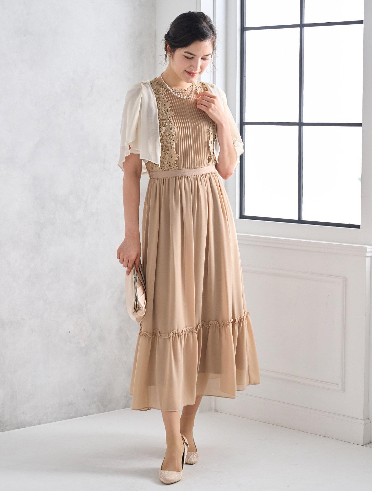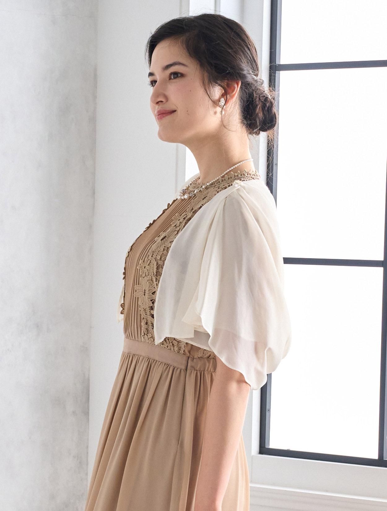 ジョーゼットは「春・夏・秋・冬」と年中着用可能です。ベージュは秋冬カラーのような印象もありますが、フラワーレースなので春夏に着ても◎。