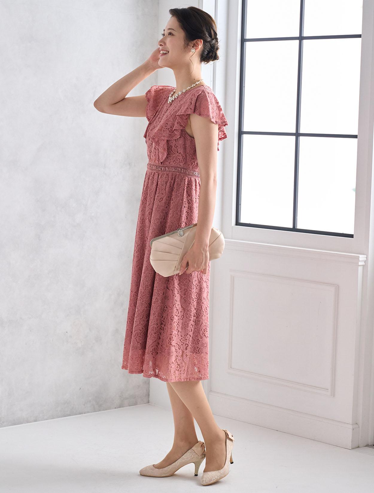 周りを明るく華やかにするピンクカラー。原色ではなくダスティーピンクなので、ピンクドレスが気になっている方にも挑戦しやすい色味です。ピンクはお顔の血色が良く見えるので、写真写りも◎。