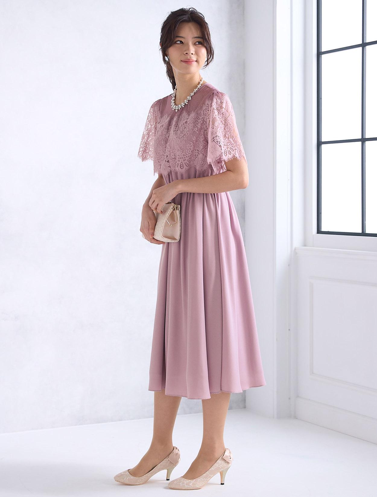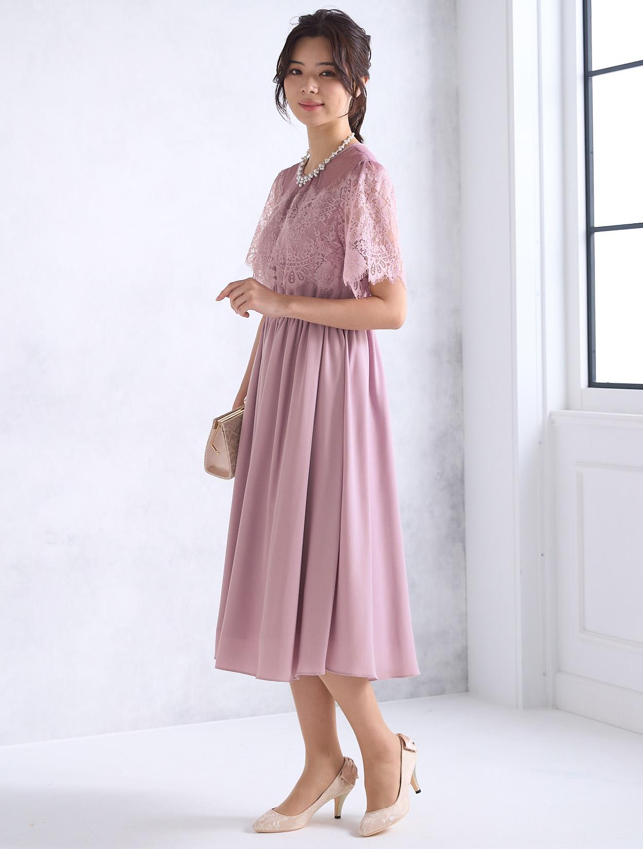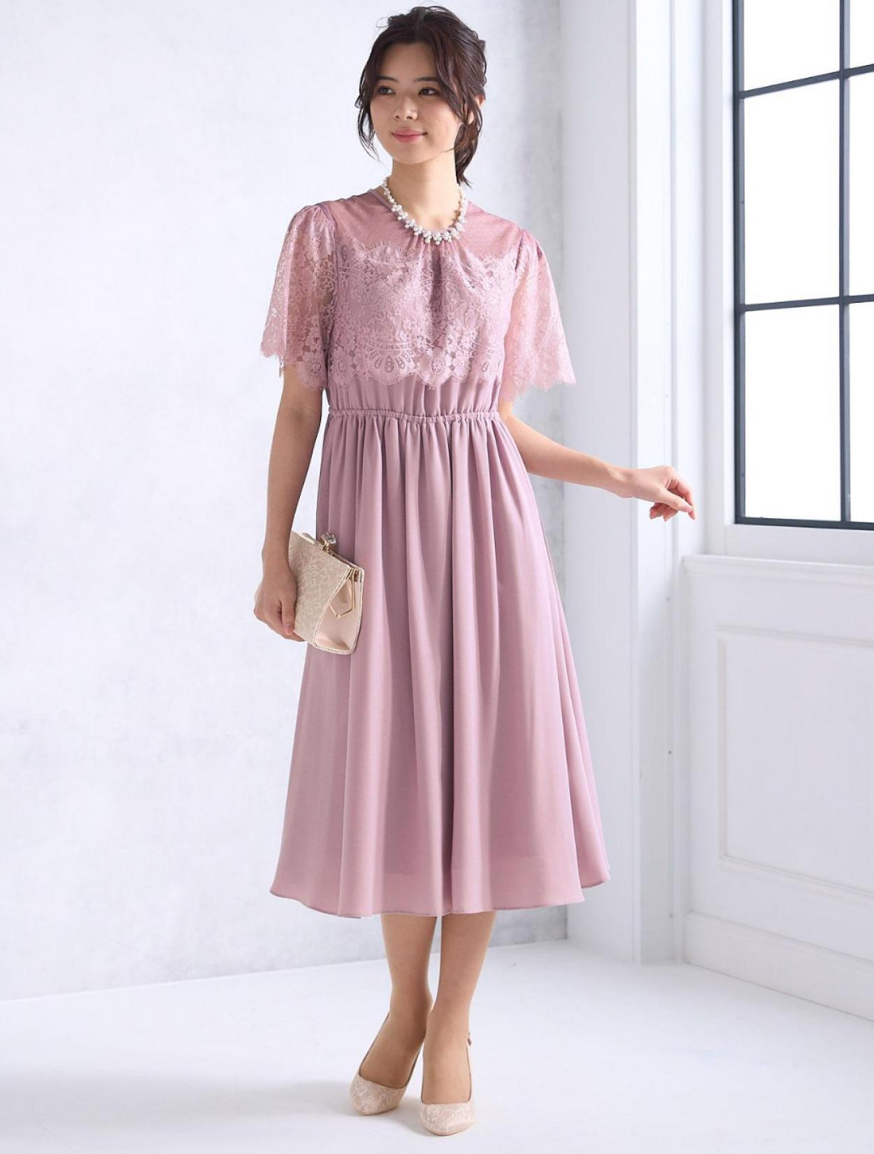 レースとジョーゼットの生地は「春・夏・秋・冬」と年中ご着用いただけます。くすみピンクは春夏に限らず、秋冬にも似合うカラーです。