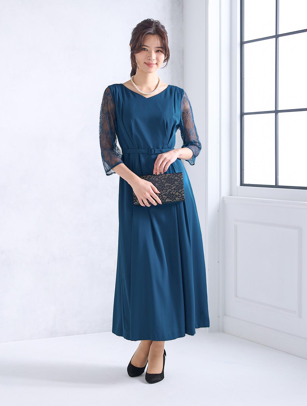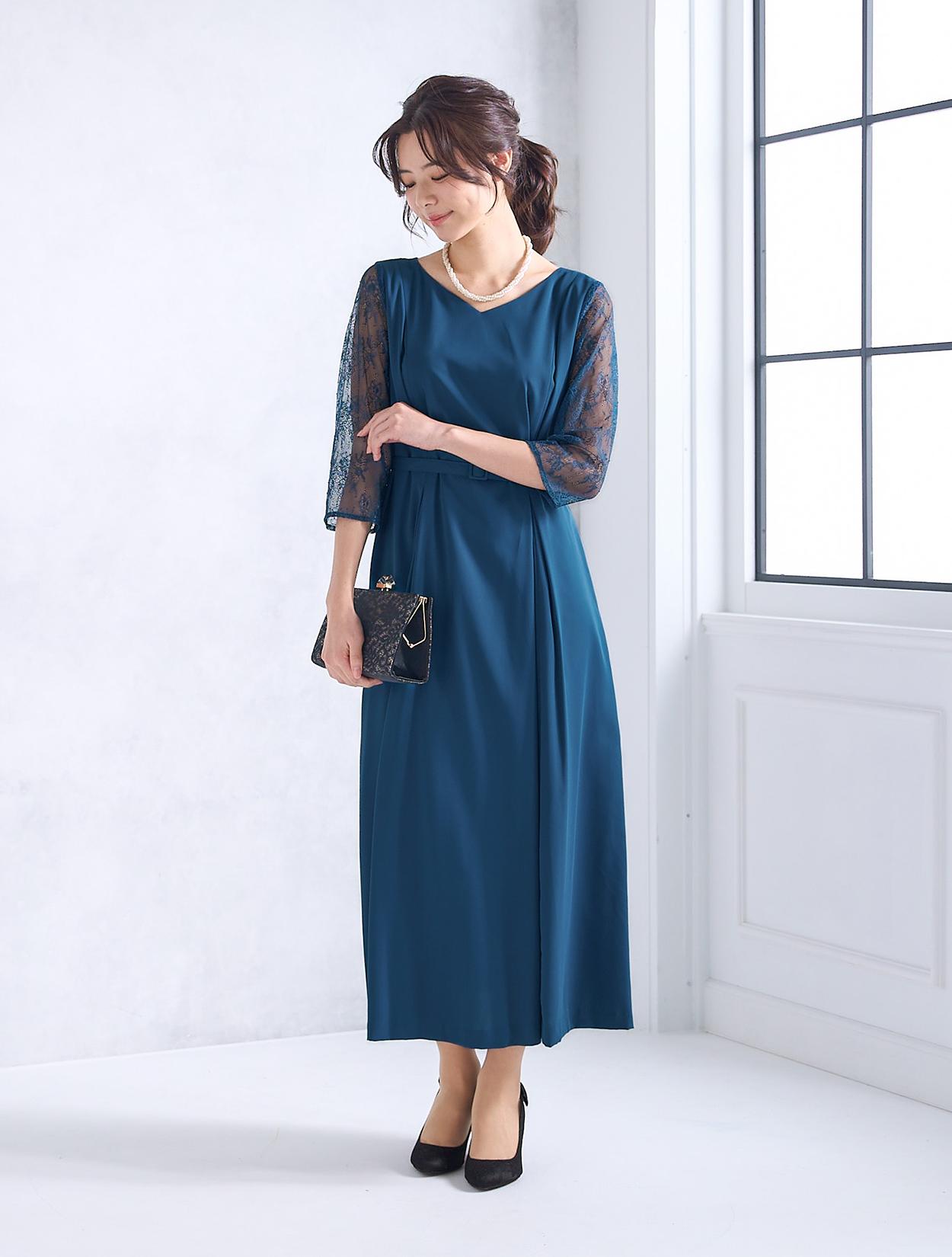 結婚式や二次会・パーティーはもちろん、同窓会・謝恩会にもおすすめです。顔合わせやお食事会、婚活パーティー、ディナーショーなどのドレスコードがある会場でもご利用いただけます。袖ありの丈長ドレスは、受付や代表スピーチをする方にもおすすめです。落ち着いたブルーなので、親族ドレスとしても着用可能。