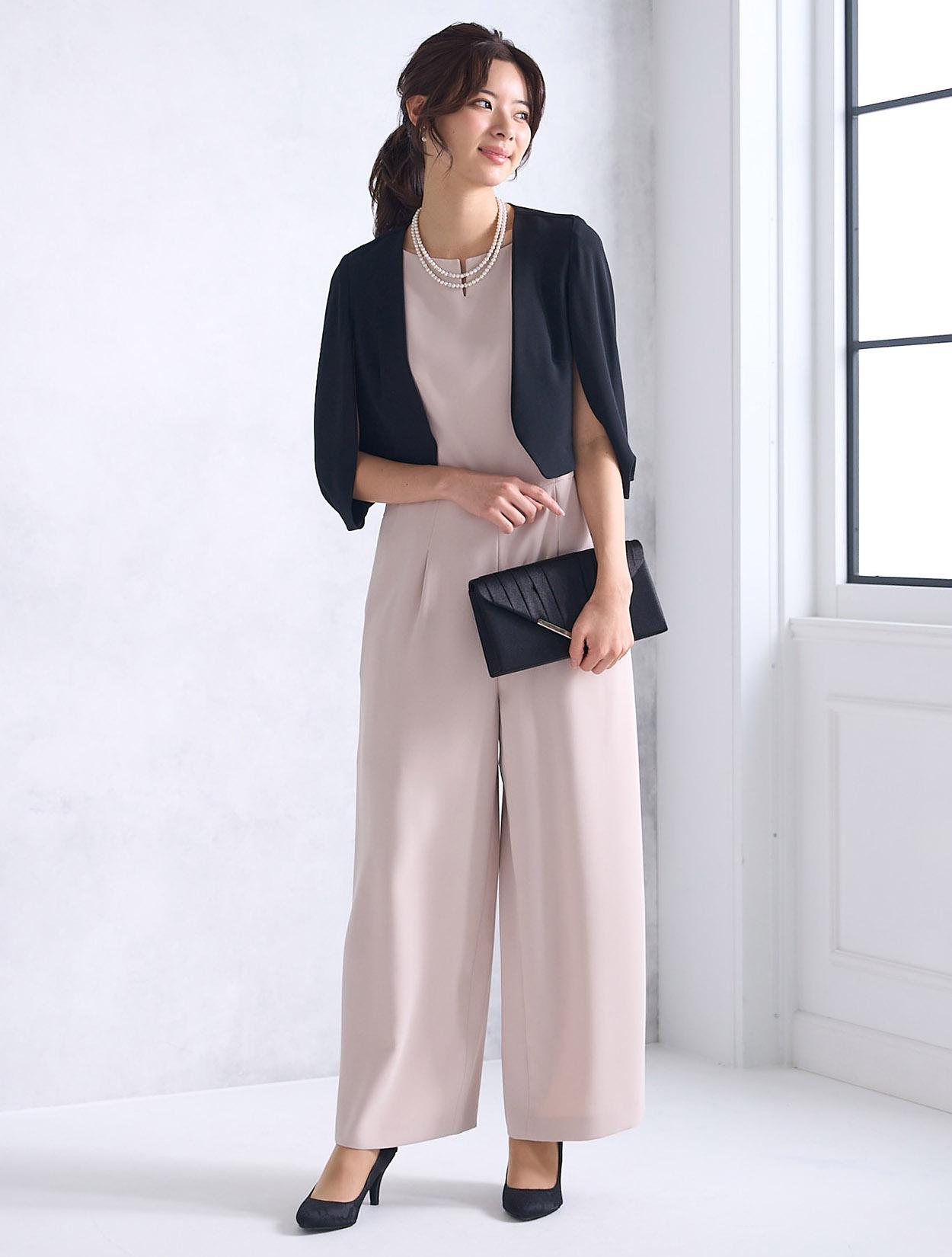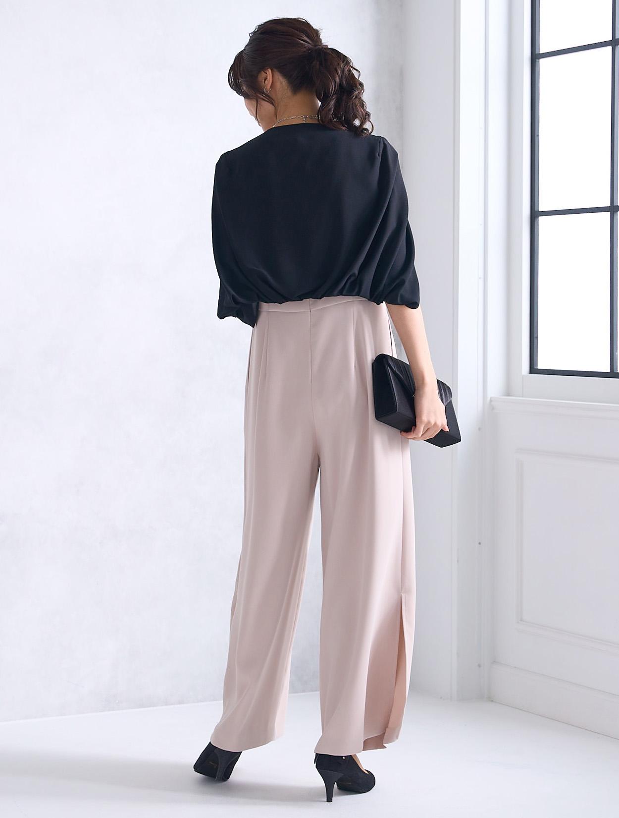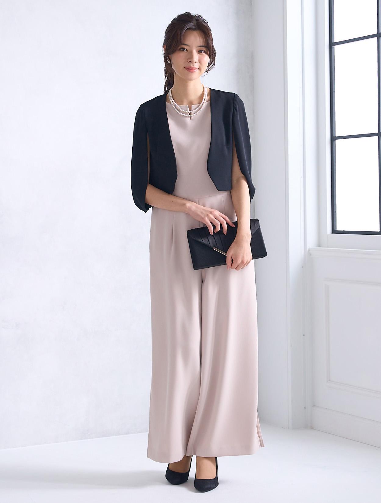 上質なツイル生地を使ったスタイリッシュなパンツドレス。パンツスタイルは最近のトレンドでもあります。パンツ裾にスリットが入っているので、程よく肌見せできる大人ドレスです。ワンドパンツのパンツドレスは、かっこよくも華やかな印象で特に30代に人気です。脚のラインを拾わないのも安心して着られるポイントです。ウエスト周りはストンとしているので楽な着心地ですが、ハイウエストに切り替えがあるので程よくスタイルアップしてくれます。首元はボートネック風のデザインにさりげないカットが入っています。横に広めの襟元は、首が短いのがお悩みの方でもキレイに着られます。