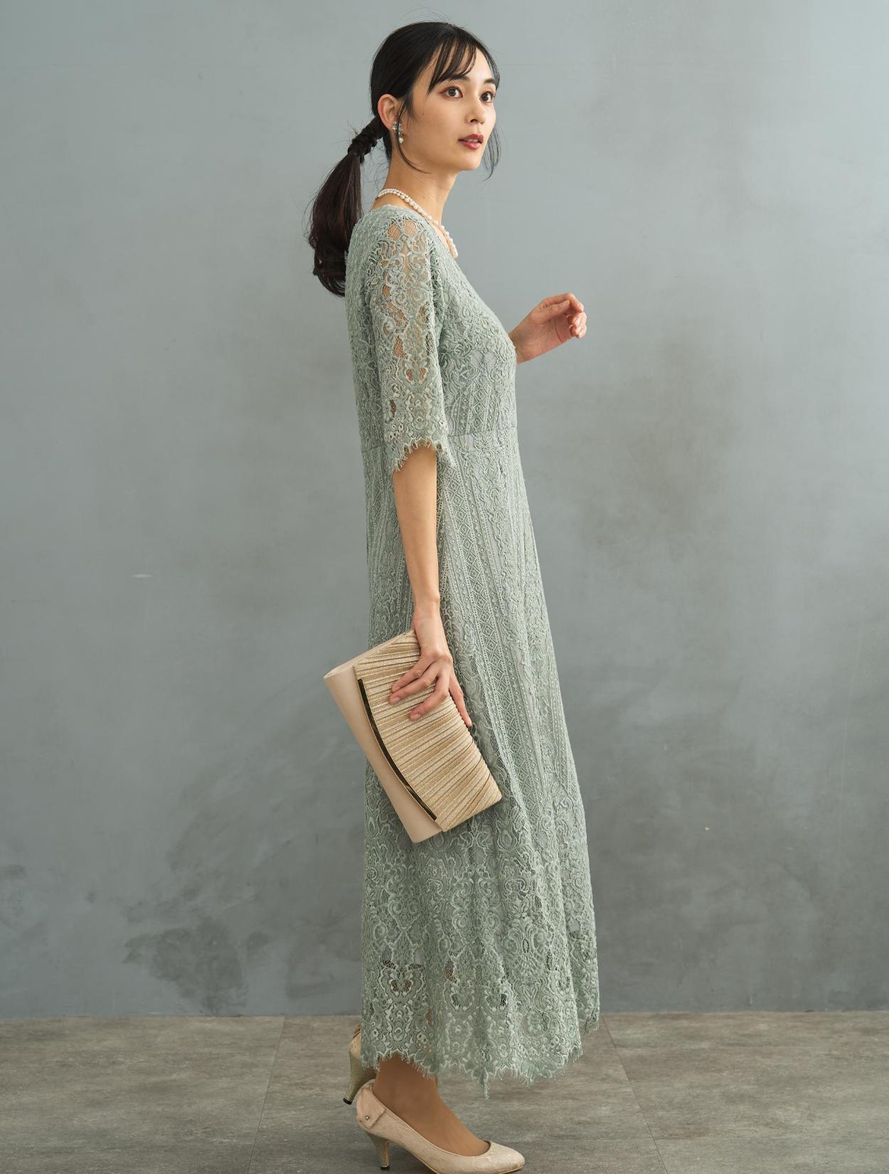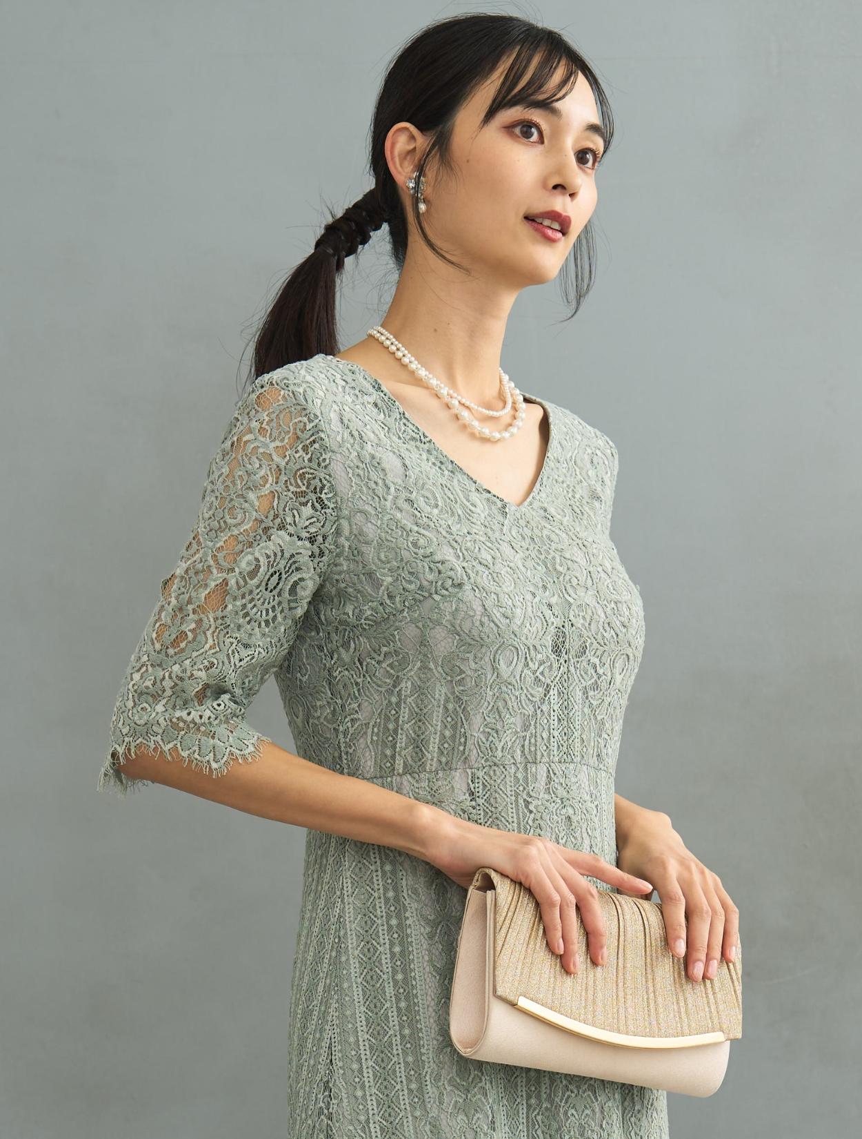 ※レースが使われているドレスは、アクセサリーやバッグのチェーンなど、引っかからない様ご注意ください。肩部分がレースのドレスは、バッグの肩掛けはご遠慮下さい。レースは繊細な素材なので、破れや傷みの原因になります。