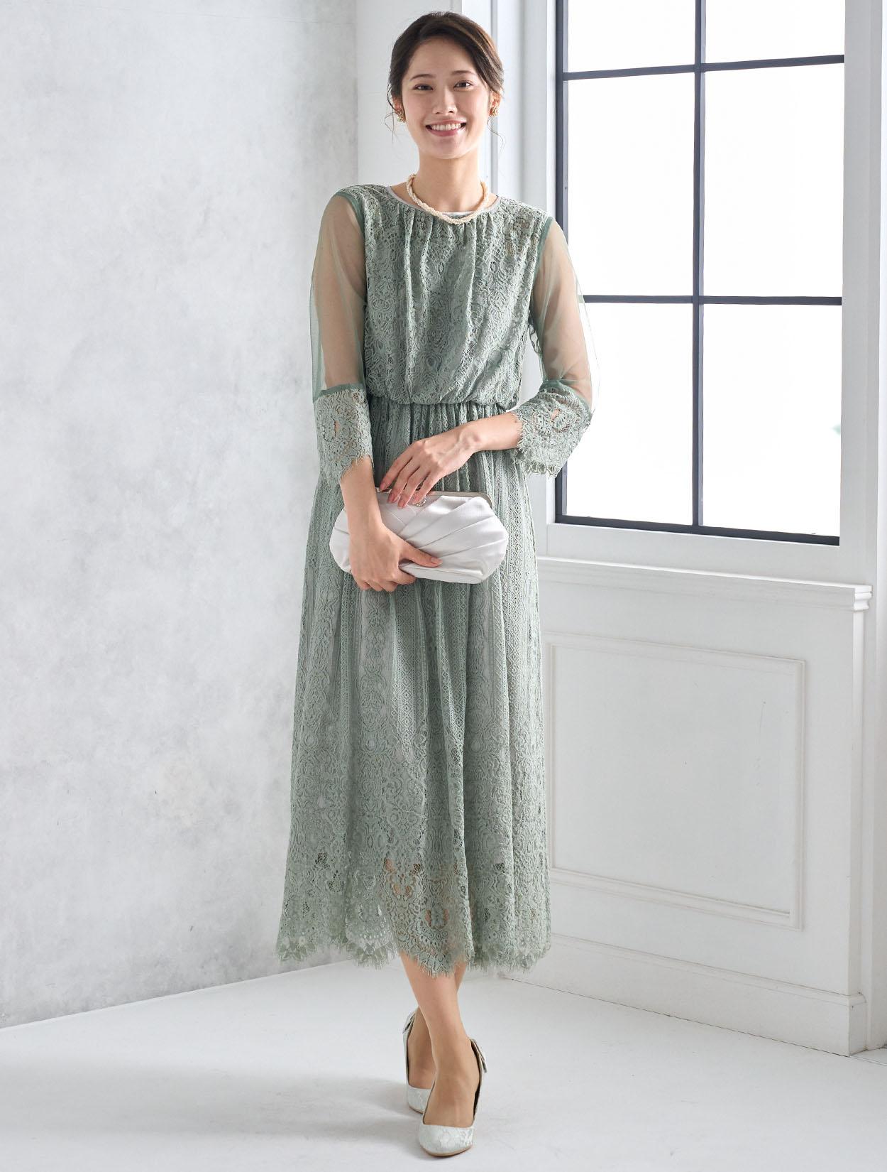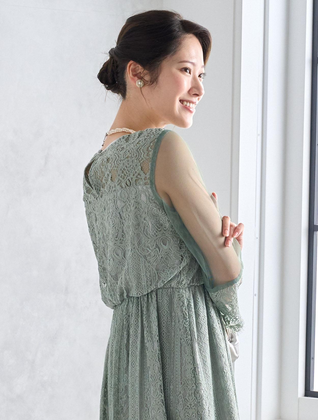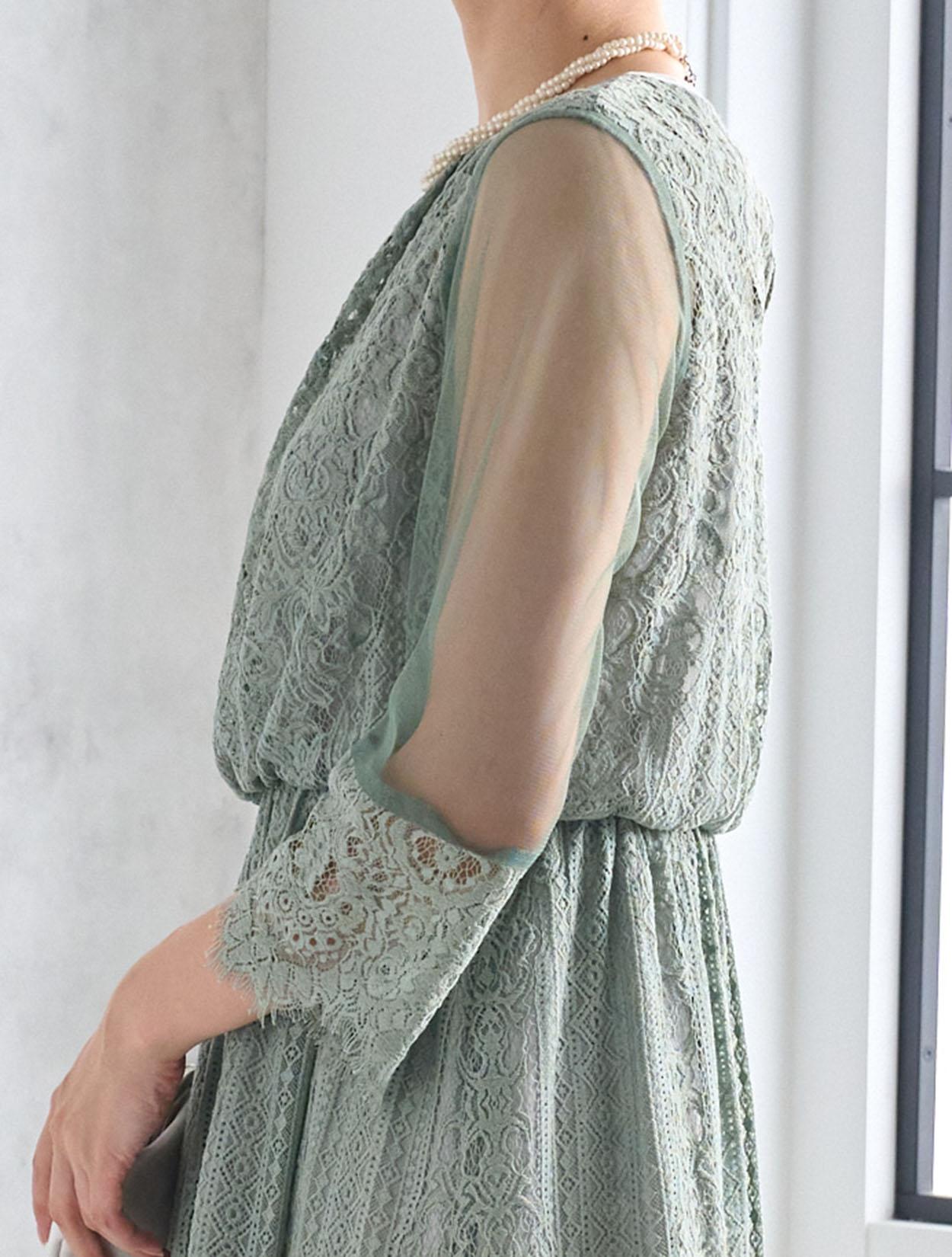 ※レースが使われているドレスは、アクセサリーやバッグのチェーンなど、引っかからない様ご注意ください。肩部分がレースのドレスは、バッグの肩掛けはご遠慮下さい。レースは繊細な素材なので、破れや傷みの原因になります。