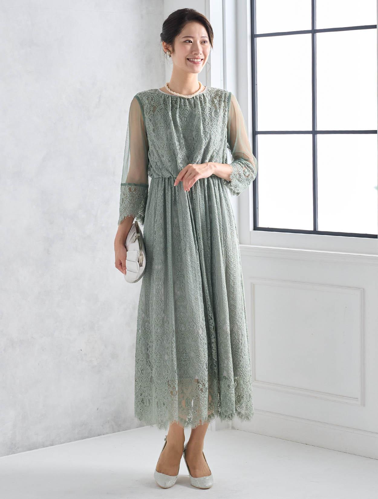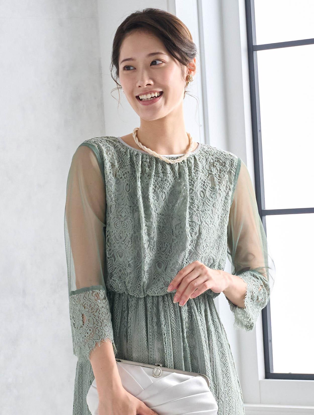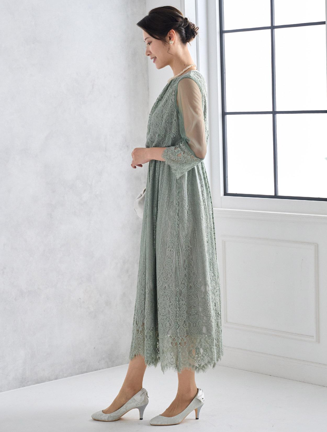 ※レースが使われているドレスは、アクセサリーやバッグのチェーンなど、引っかからない様ご注意ください。肩部分がレースのドレスは、バッグの肩掛けはご遠慮下さい。レースは繊細な素材なので、破れや傷みの原因になります。
