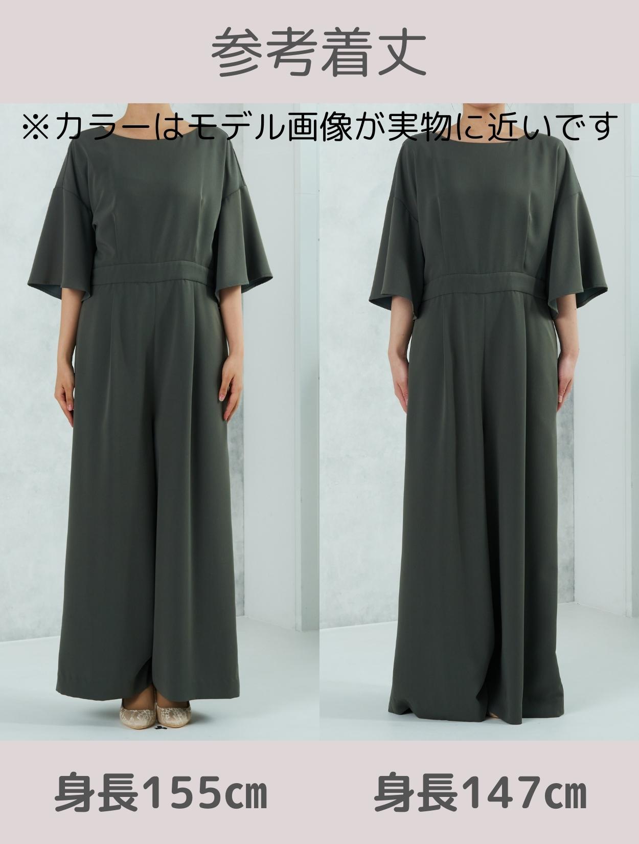 ドロップショルダーからのフレアスリーブが華やかなドレス。ゆるめのシルエットは、頑張りすぎないエフォートレスな大人のパンツドレスです。人気の袖ありドレスは、結婚式でも羽織なしで一枚で着用可能です。ウエストから上下にタックが入っているので、立体的なシルエットに。ウエストは背中側がゴムになっています。ワイドパンツのデザインで、脚のラインを拾い過ぎないのも嬉しいポイント。また、パンツドレスでもドレッシーな雰囲気が出ます。