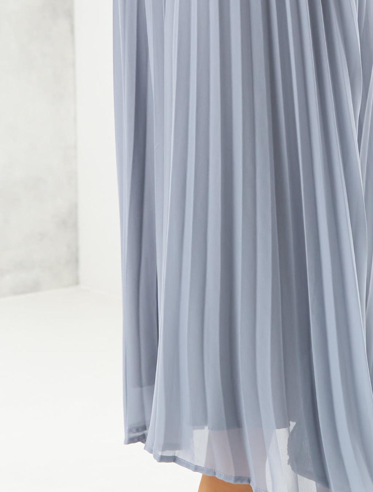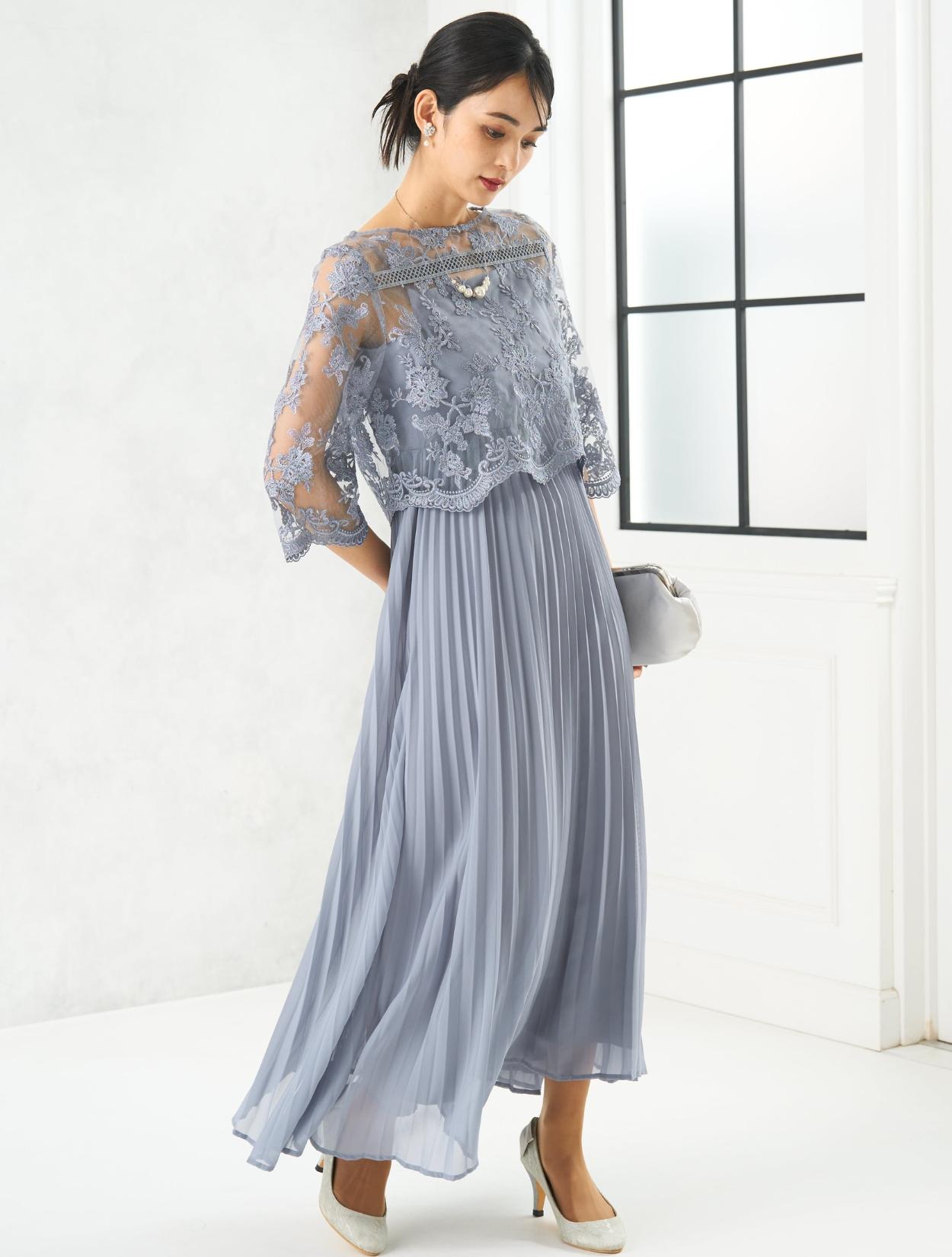 ライトグレーに透明感のあるペールブルーを混ぜたような清楚なブルーグレーは、控えめな華やかさが人気のポイント。お呼ばれドレスの中でも人気のカラーです。