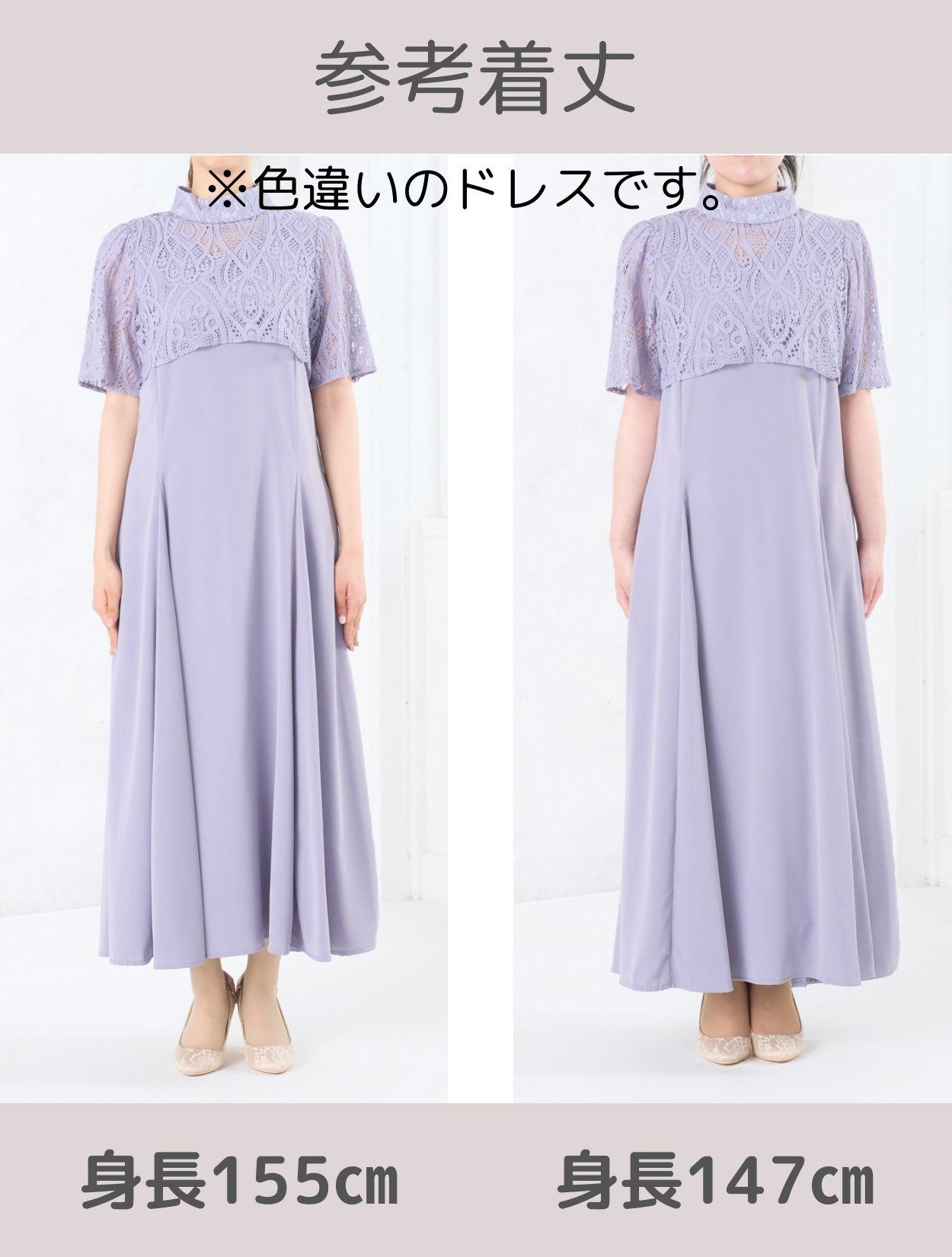 ショート丈のオーバーブラウスがセットになった、トレンド感のあるデザインのドレス。ロング丈ドレスでも、全体のポイントを上に持ってきているので、足長効果やスタイルアップ効果も抜群です。人気のマーメイドスカートのインナーワンピースには、微光沢があるのでお呼ばれにもぴったりなきちんと感もあります。ウエストからヒップにかけての、女性らしいキレイなラインも嬉しいポイント。オーバーブラウスのレースには程よい厚みがあり、透け感も気にならず上品に着こなせます。ハイネック風の首元ですが、ゆとりがあり締め付けは気になりずらいデザインです。デコルテ部分の露出は抑えて、ハーフスリーブからは肘下を大胆に出すバランスが◎。着崩れしないドレスなので、受付や代表スピーチなどを任されている方にもおすすめ。