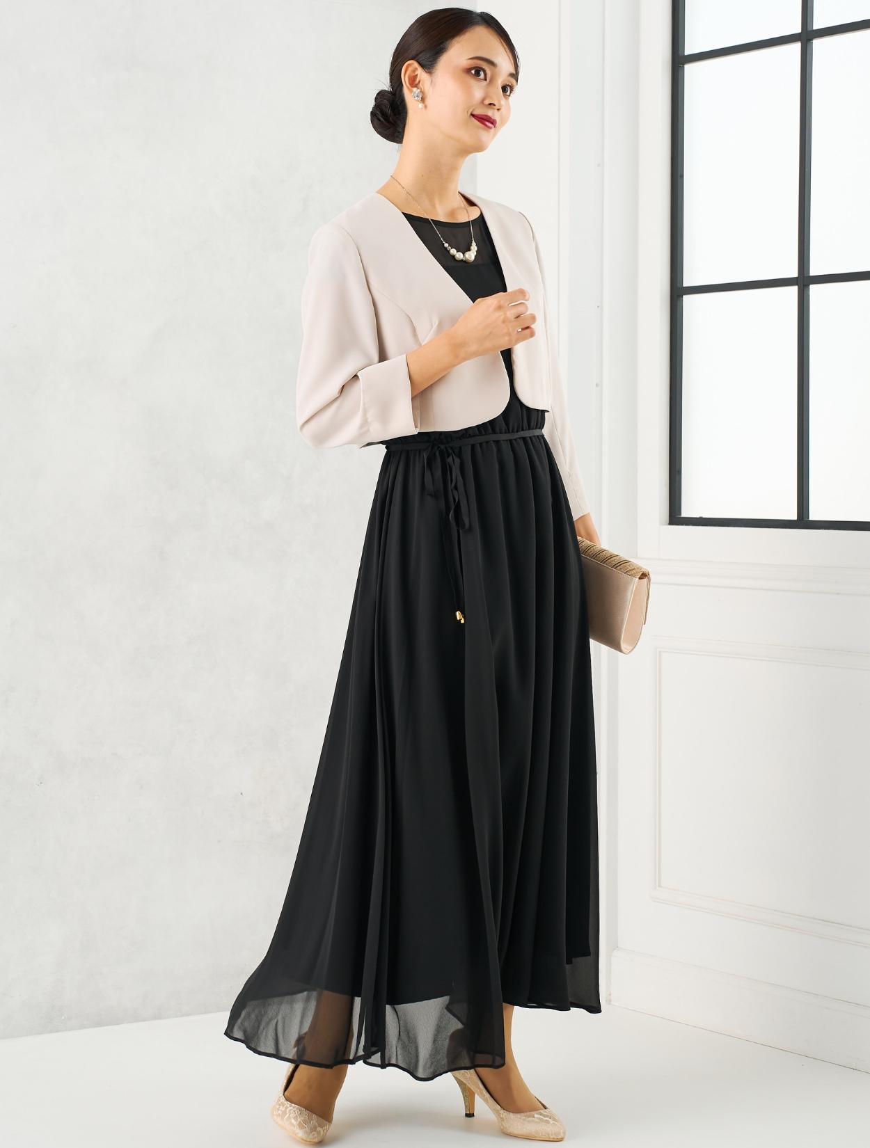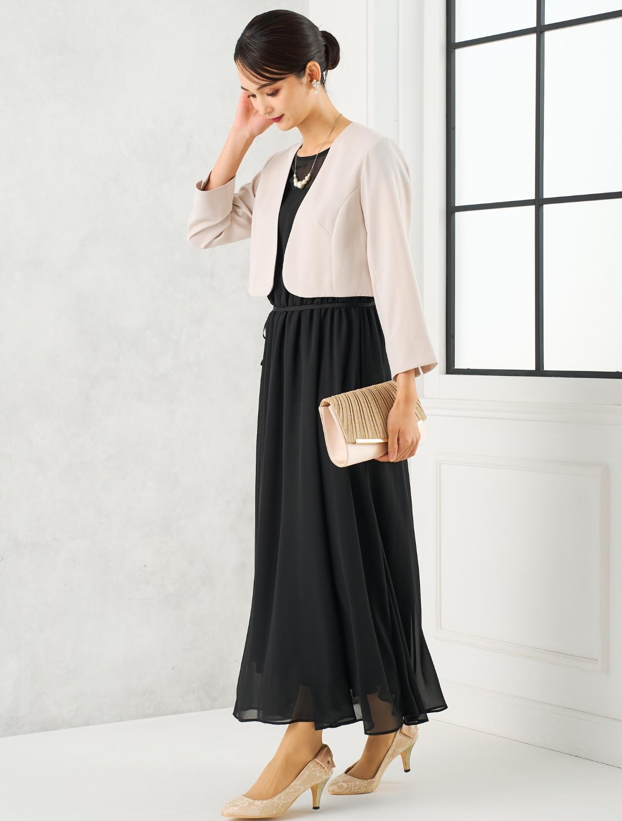 シンプルでシックなブラックカラー。軽さのあるジョーゼット生地のブラックは、重たくなり過ぎないのがポイントです。