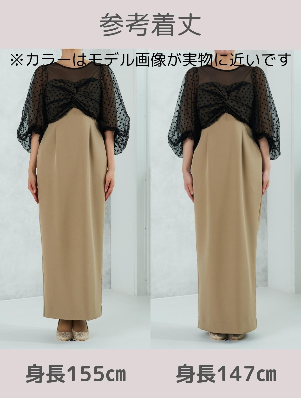 ドット柄が目を引くトレンド感のあるドレス。ペンシルラインのデザインで全体の印象を大人っぽく仕上げているので、ドット柄でも甘くなり過ぎず20代30代でも品よく着こなせるドレスです。スリーブはセットインスタイルで、肩の切替が肩先よりも内側にきます。デコルテが華奢な方でも貧相に見えにくく、肩幅がある方でもカバーして着られます。ふんわりとしたバルーンスリーブは短すぎず長すぎず、上手に露出を抑えつつ、手首を華奢に見せてくれる絶妙な長さです。トップのツイストデザインは、程よくボリュームがありシックな配色のドレスも華やかに見せてくれます。アンダーバストに切り替えがあるので、脚長効果は抜群です。ウエスト後部分はゴム仕様で着心地も◎。ドレスには珍しく、スカートにポケットが付いています。ポケットにたくさん物を入れるとシルエットが崩れるので要注意です。ドット柄はこれまでカジュアルな側面もありました、知的な印象もある小さいドットにシックな配色で、トレンド感のある今っぽいお呼ばれドレス・ワンピースを探している方に人気です。