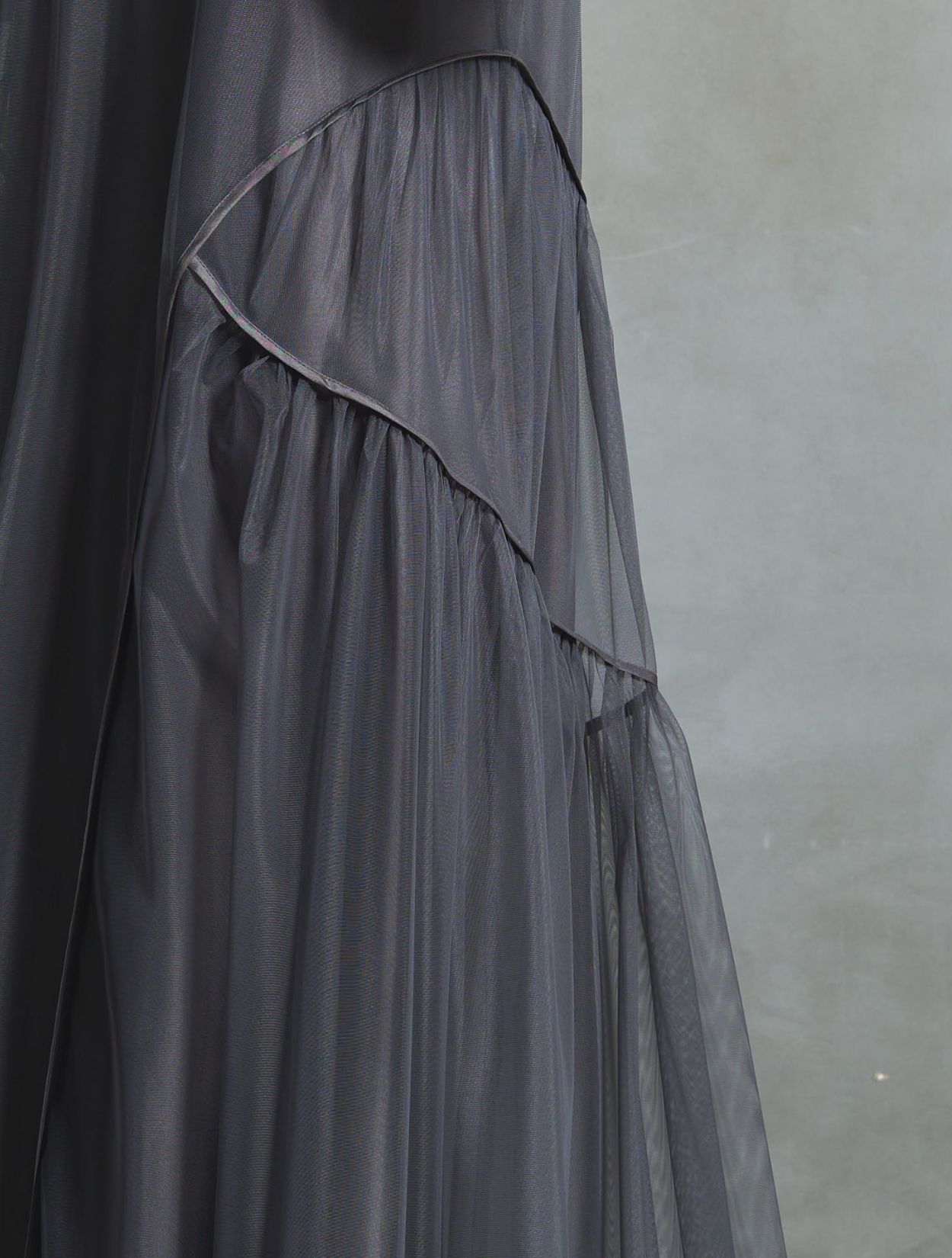 軽やかなチュール素材に、露出を抑えたデザインは「春夏秋冬」と年中ご着用いただけます。