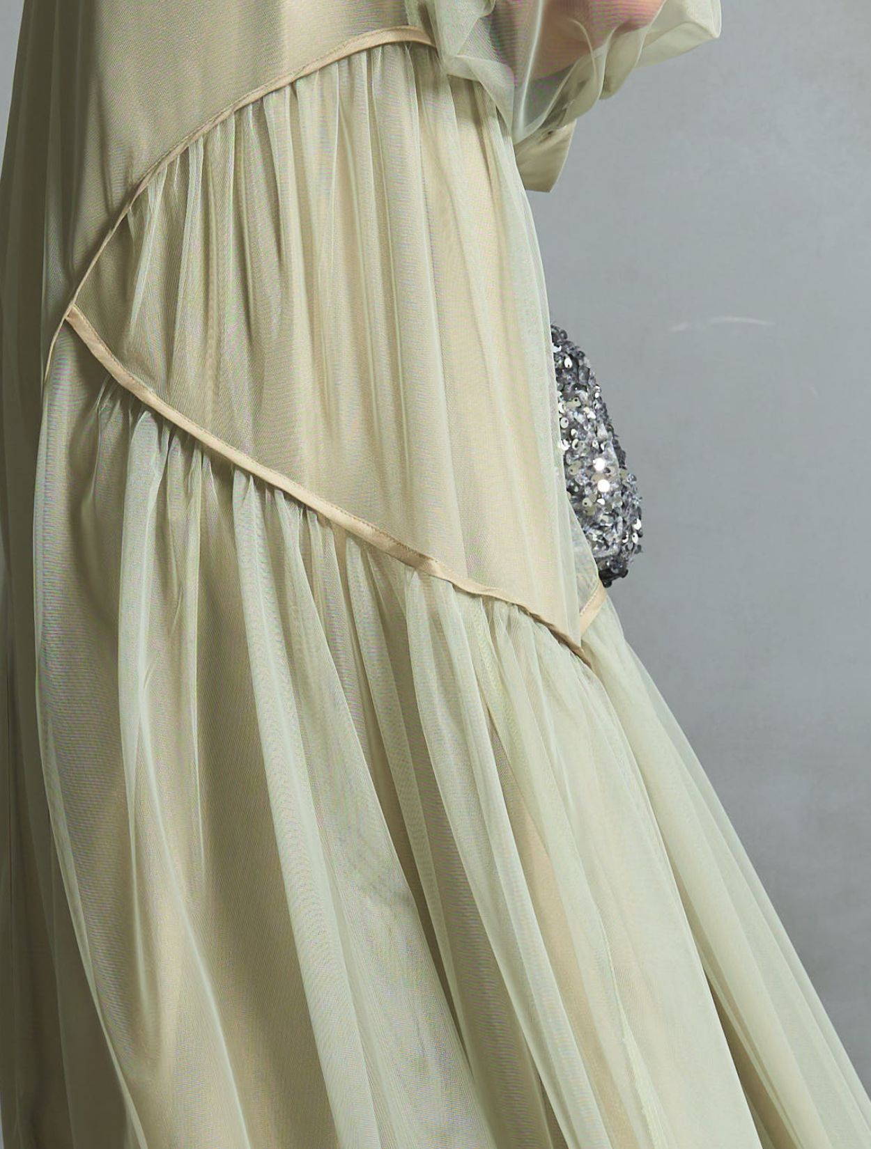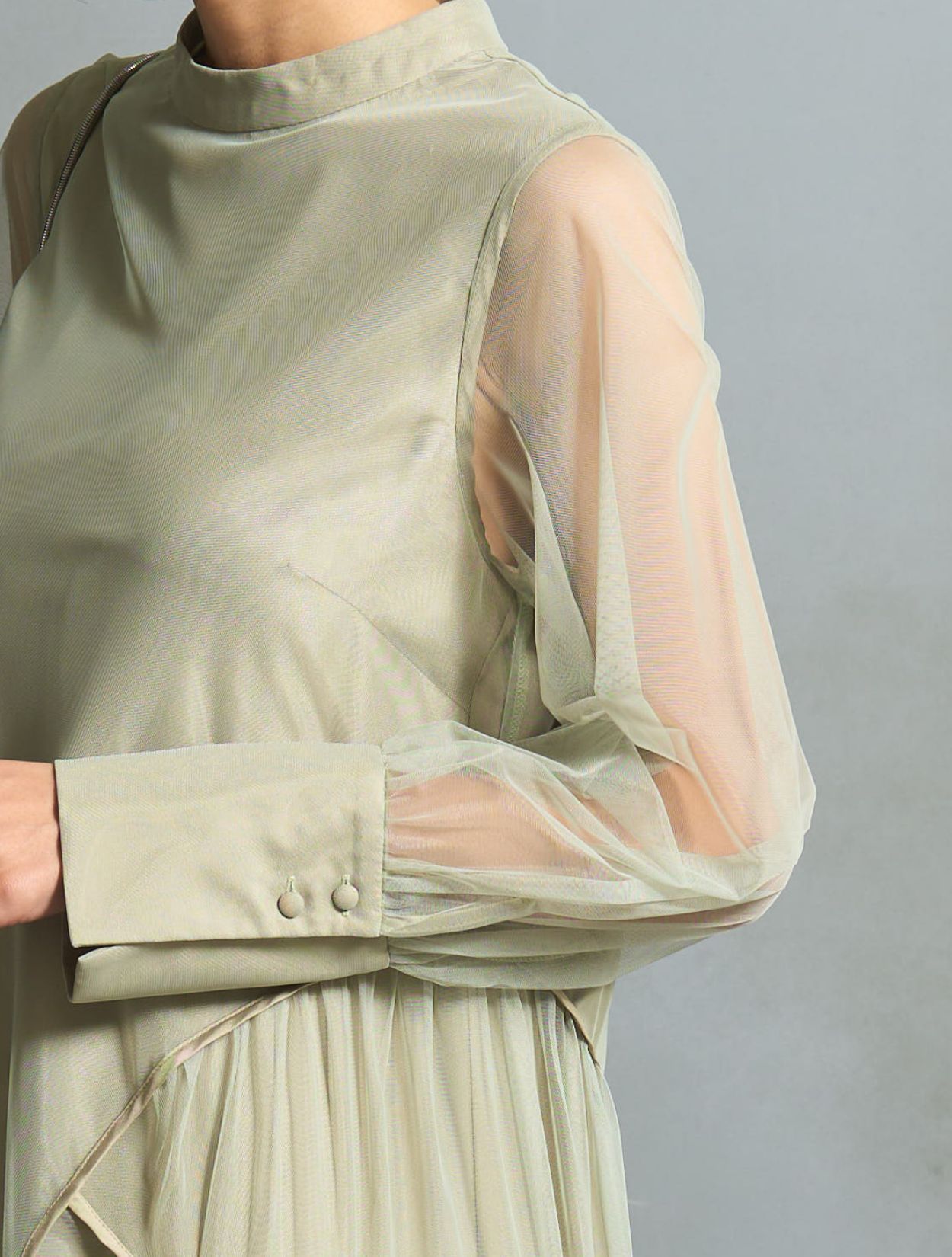 軽やかなチュール素材に、露出を抑えたデザインは「春夏秋冬」と年中ご着用いただけます。