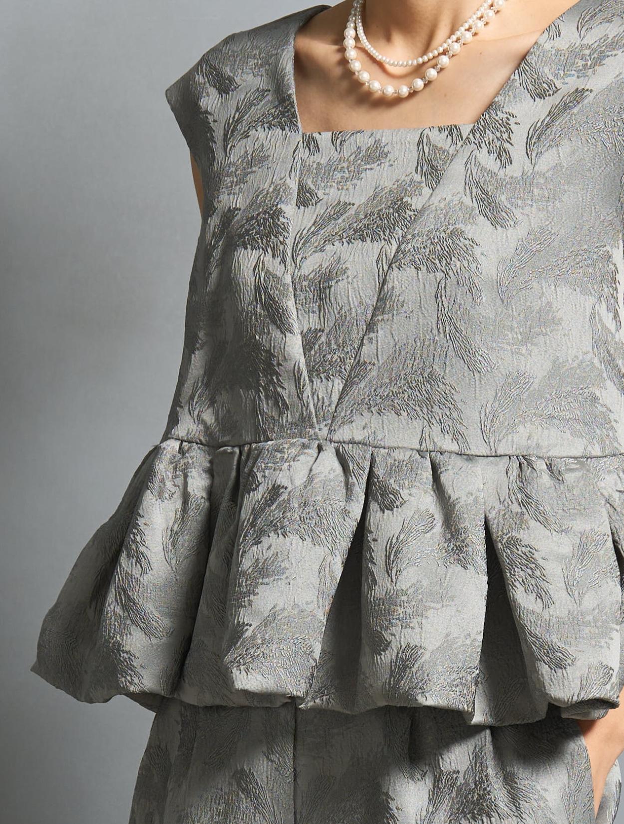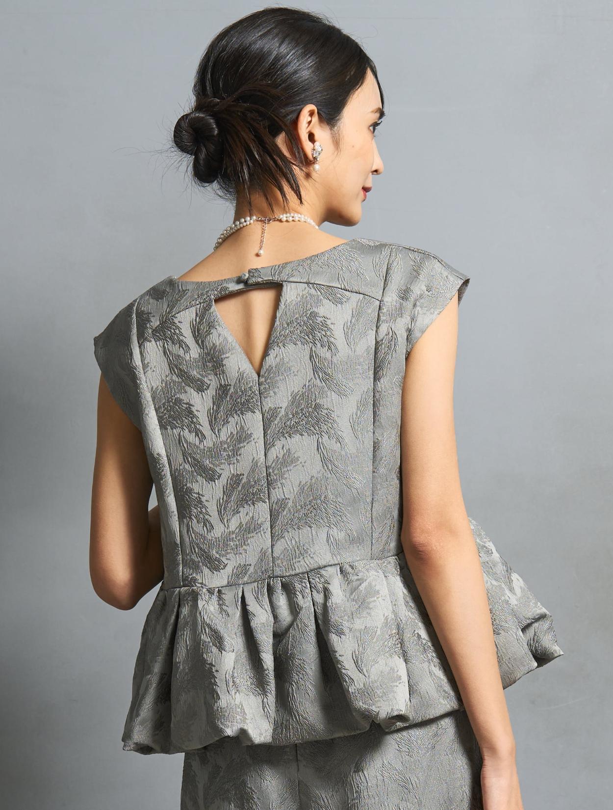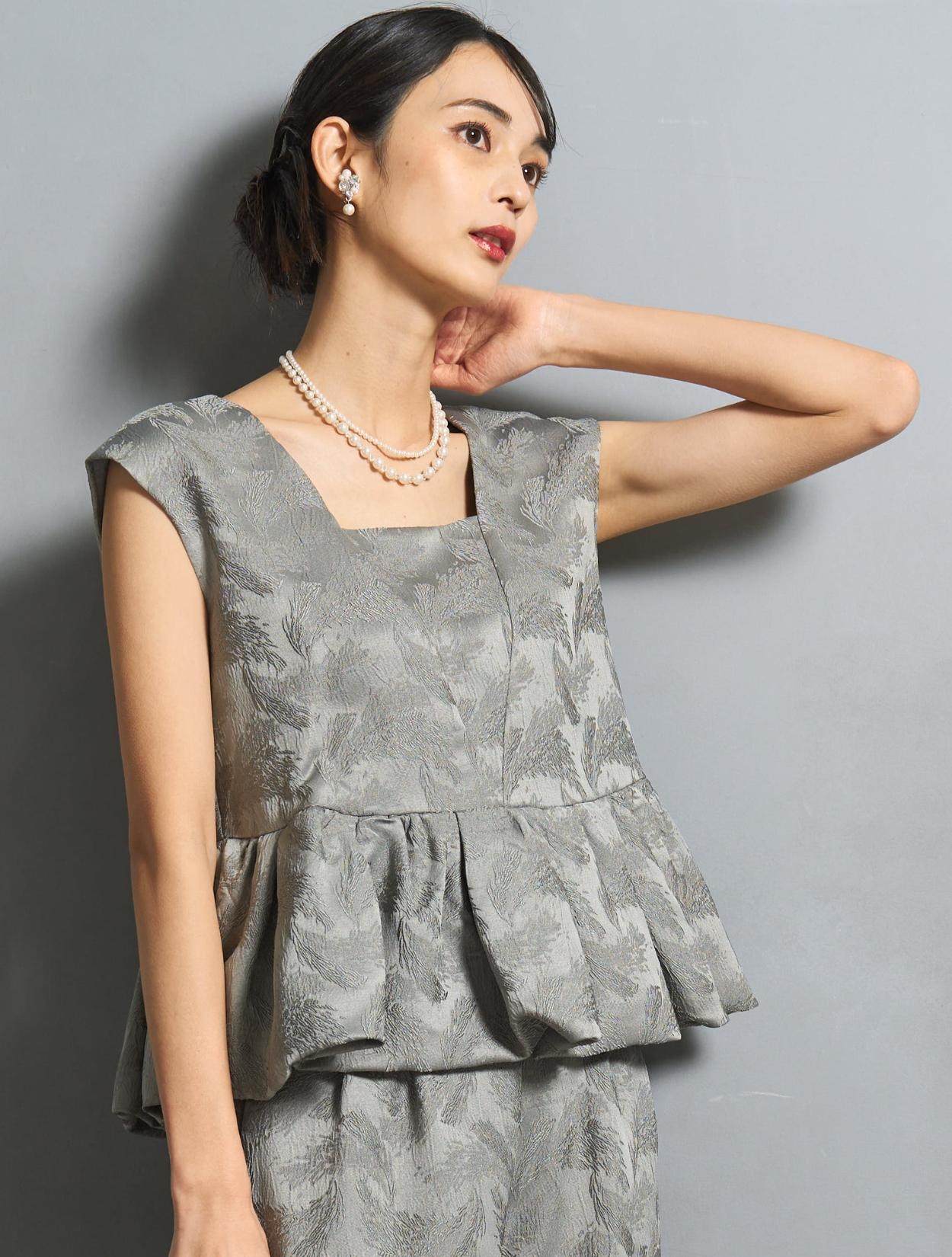 透け感のないしっかりしたジャガード生地ですが、フレンチスリーブのデザインからも「春夏秋冬」と年中ご着用いただけます。秋冬は、長袖のインナーブラスを中に着ると季節感が出まて◎。
