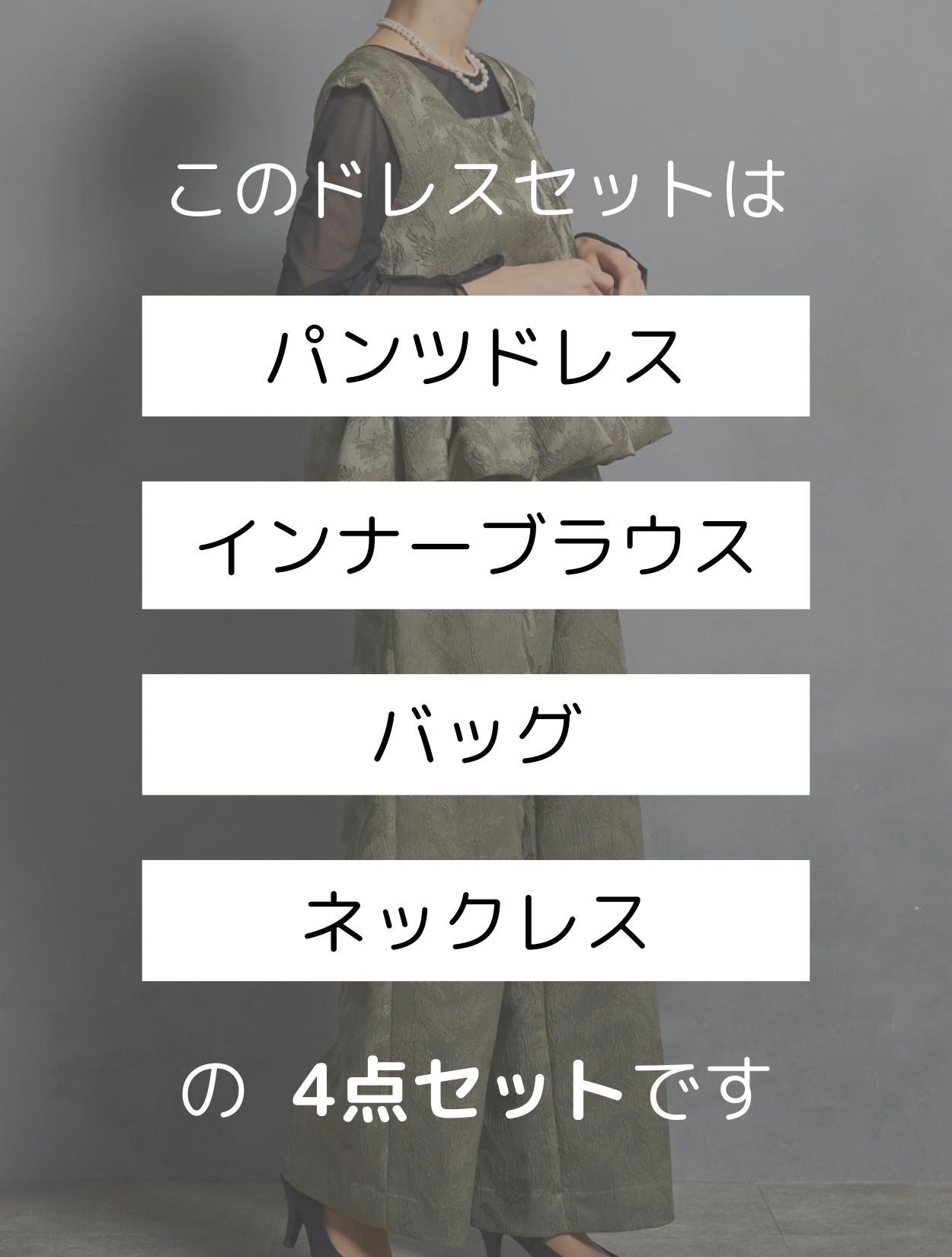 このセット商品は「ドレス・ブラウス・バッグ・ネックレス」の4点コーディネートセットです。