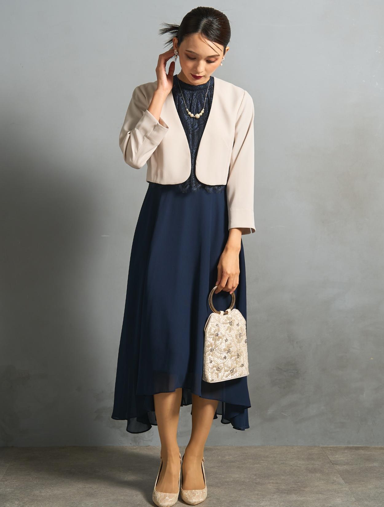このセット商品は「ドレス・ジャケット・バッグ・ネックレス」の4点コーディネートセットです。