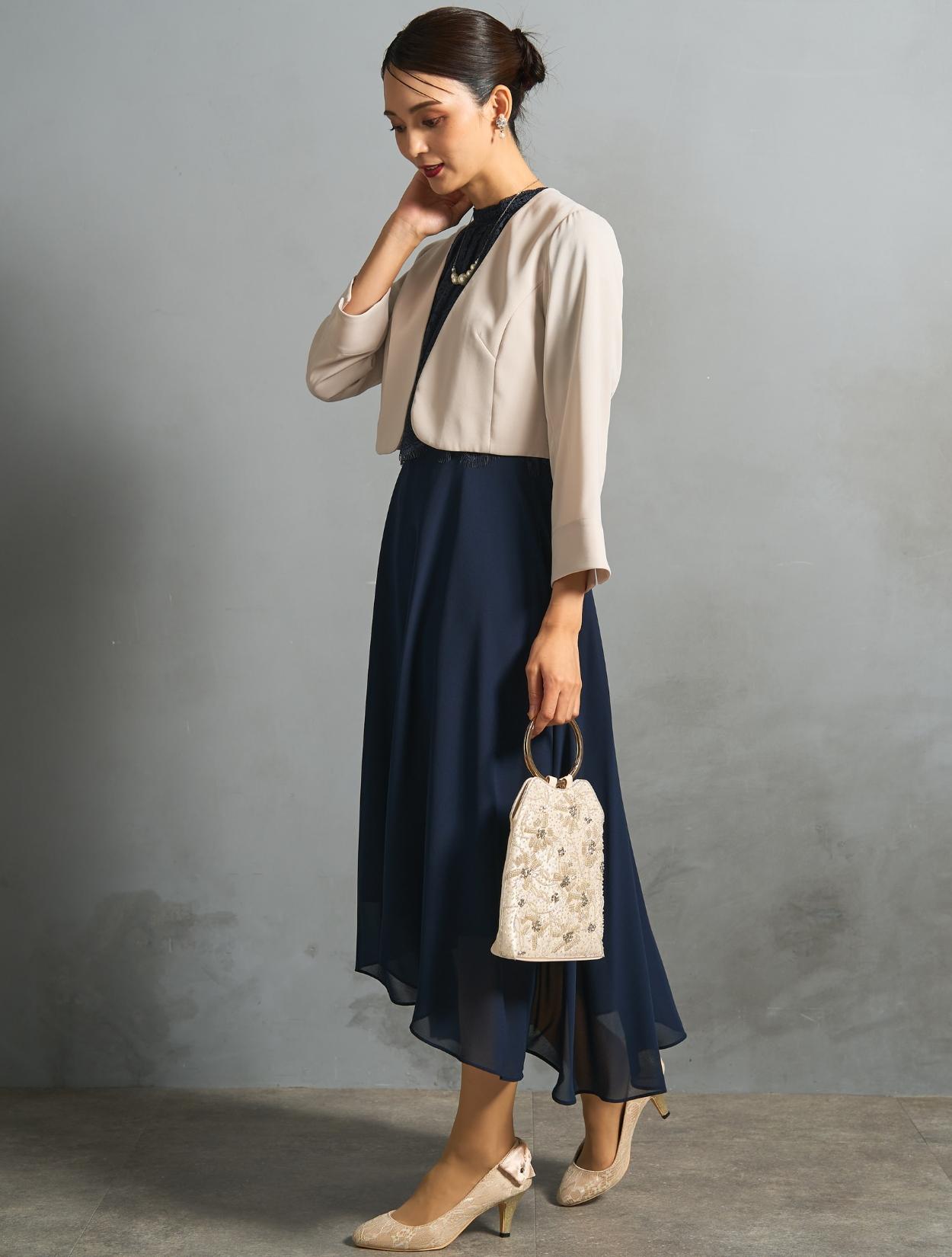 このセット商品は「ドレス・ジャケット・バッグ・ネックレス」の4点コーディネートセットです。