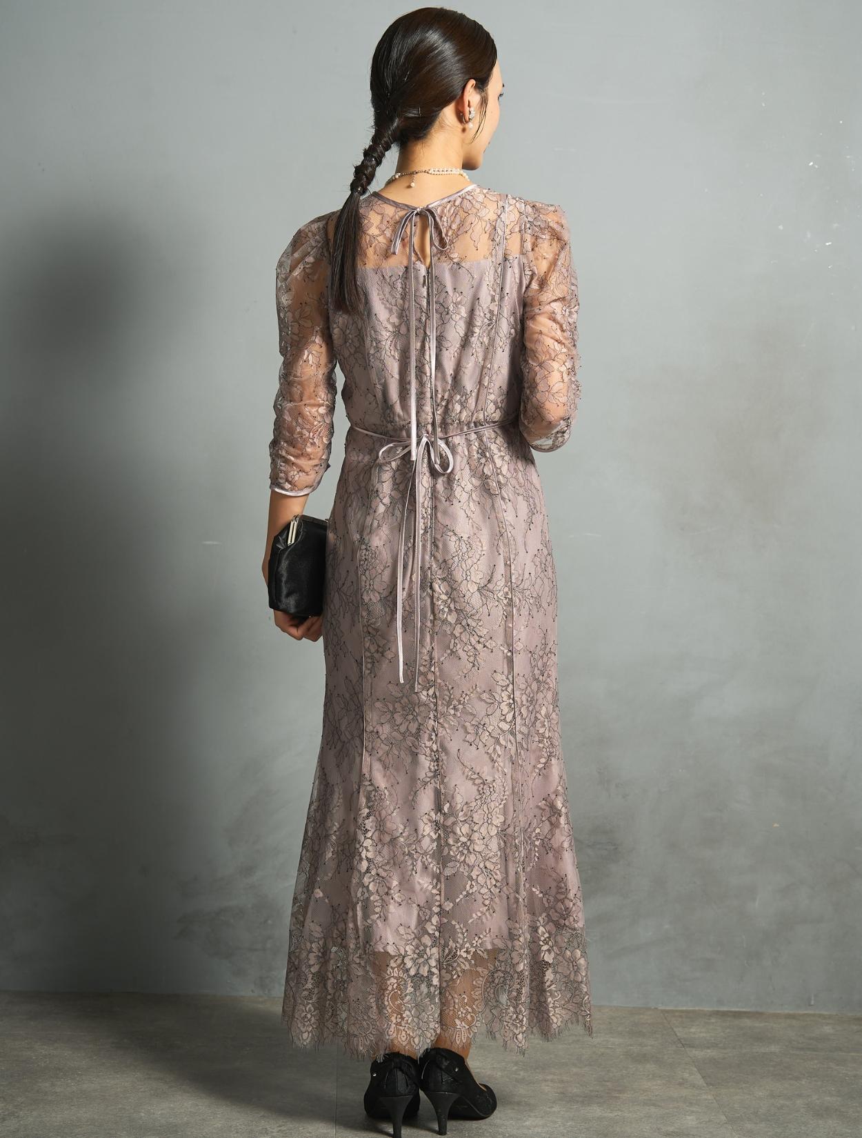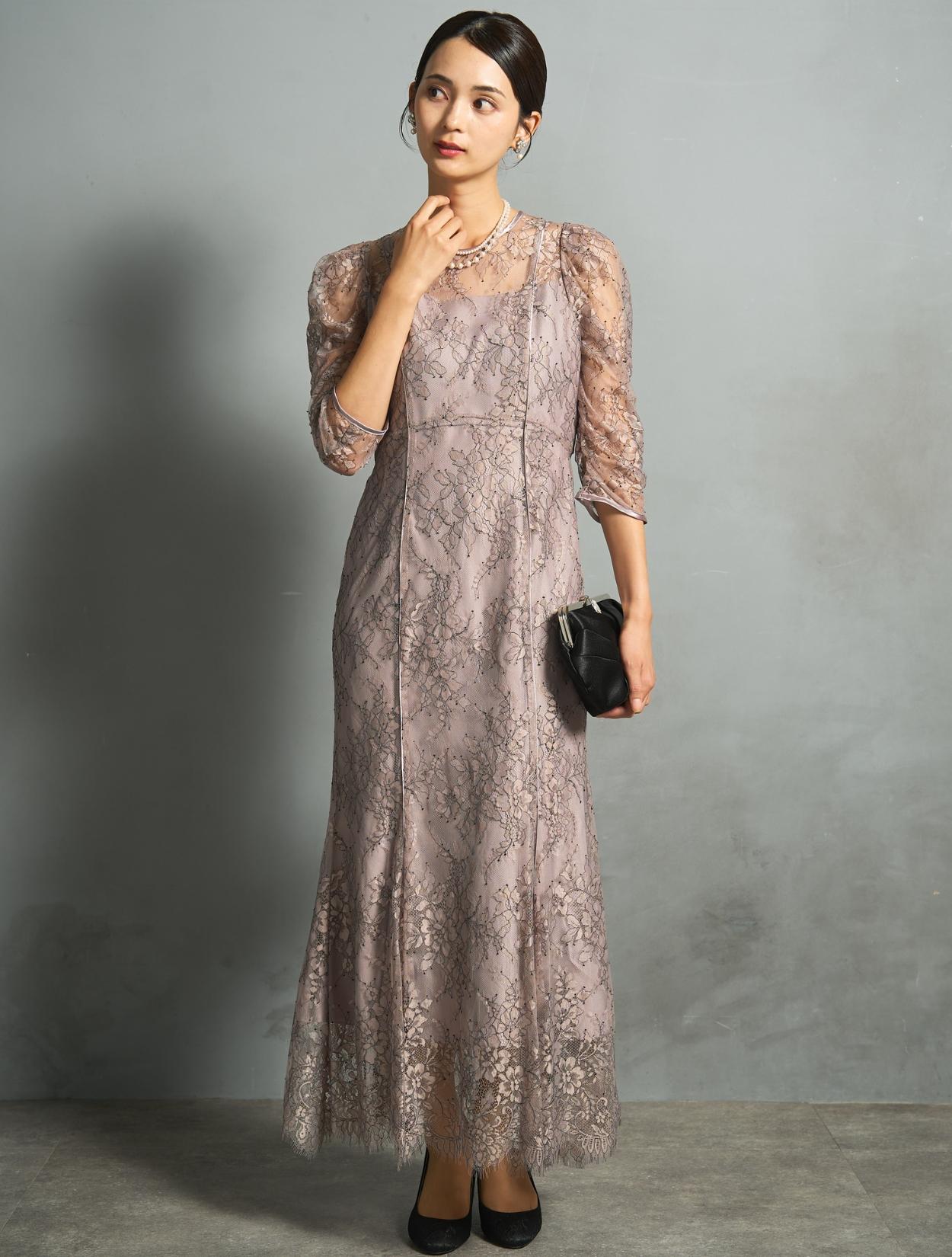 エレガントで大人っぽいマーメイドラインがポイントのロングドレス。すっきりスタイルを良く見せてくれるドレスです。フラワー柄の総レースなので華やかさもあり。スカラップ調にレースがカットされた裾は、動くと目を引くキレイめなデザイン。透け感がありロング丈でも軽やかに着こなせます。
