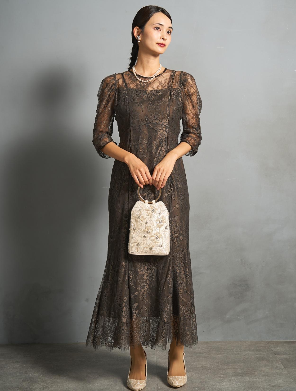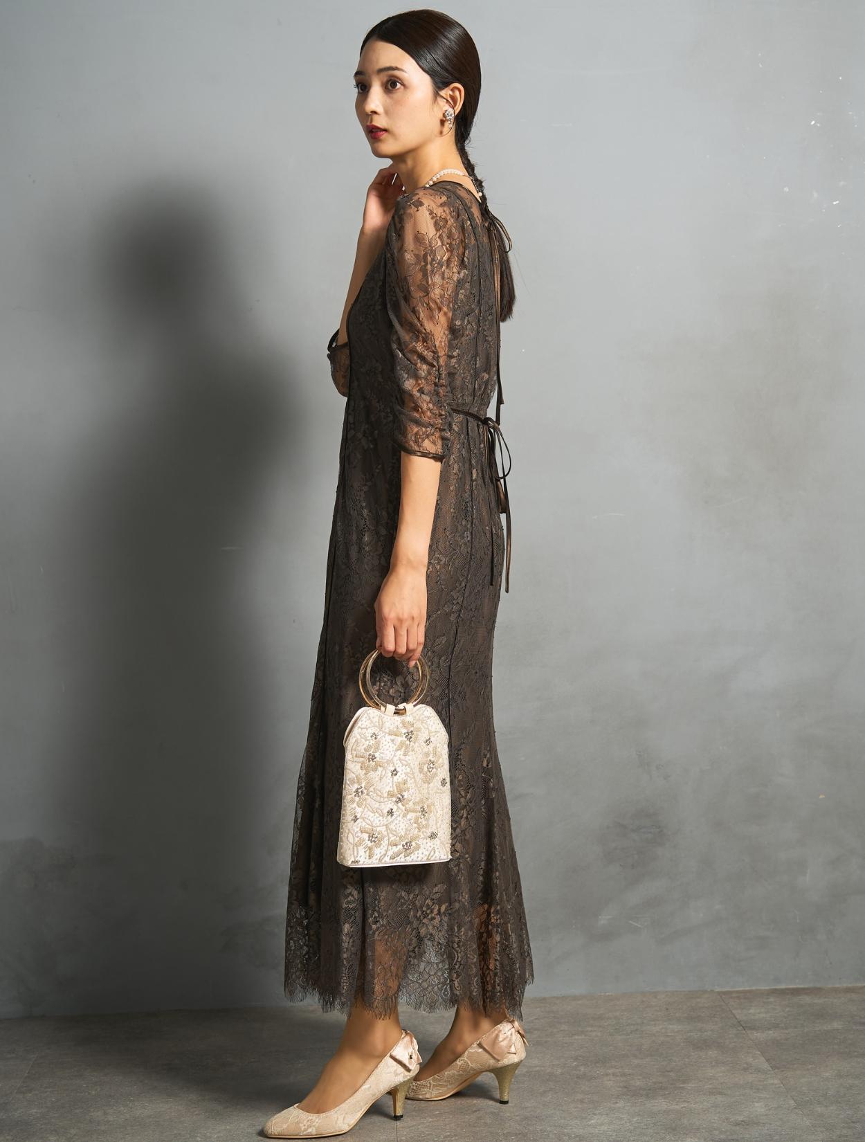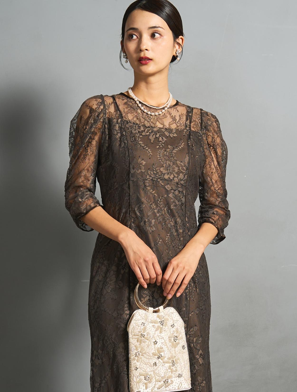 ※レースが使われているドレスは、アクセサリーやバッグのチェーンなど、引っかからない様ご注意ください。肩部分がレースのドレスは、バッグの肩掛けはご遠慮下さい。レースは繊細な素材なので、破れや傷みの原因になります。