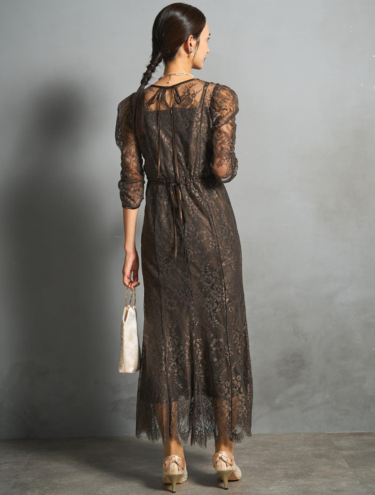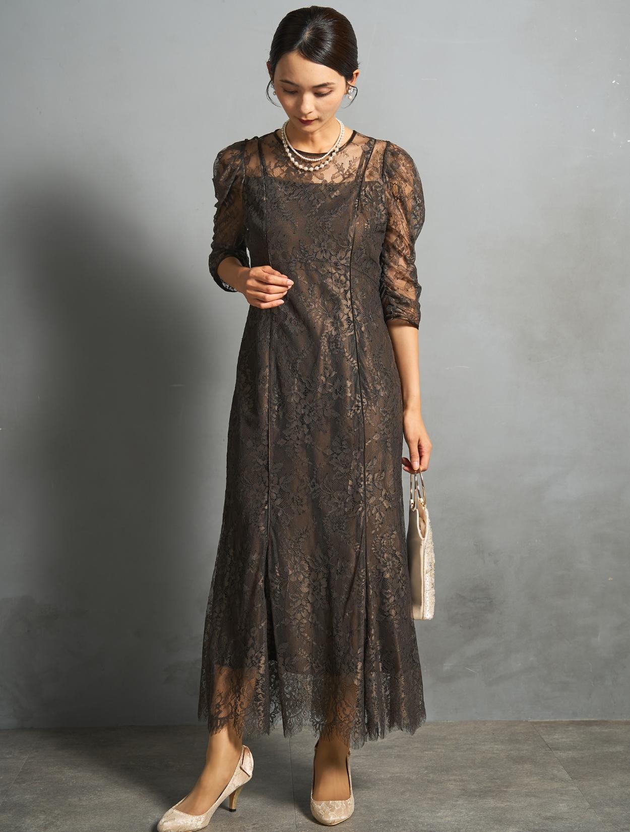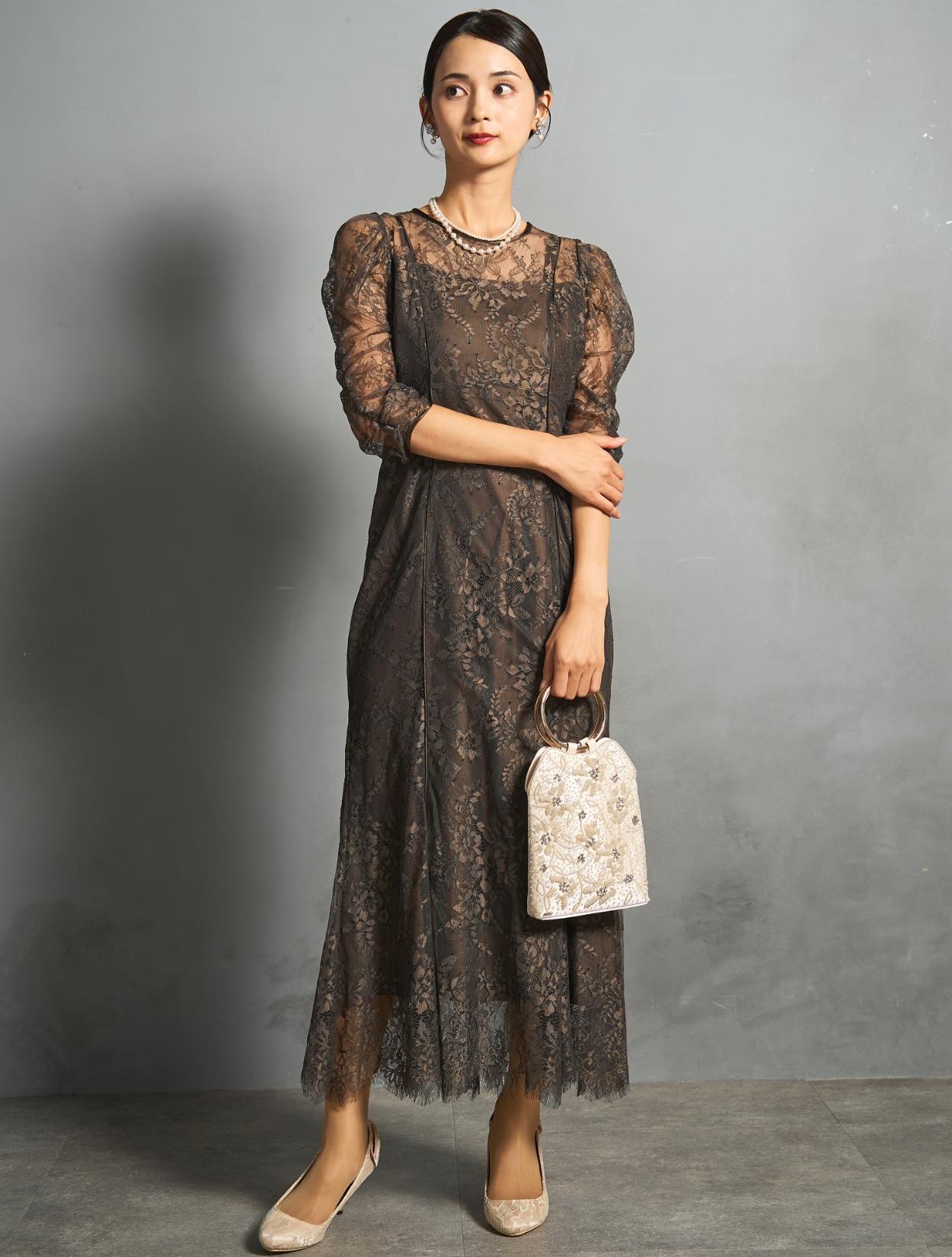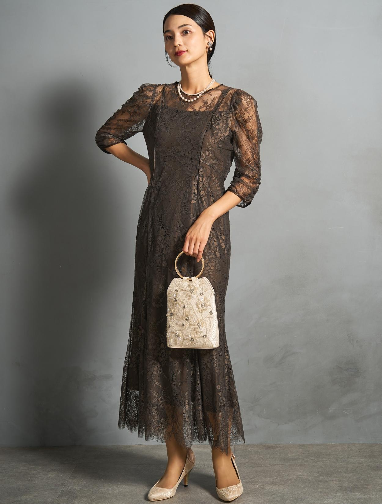 ※レースが使われているドレスは、アクセサリーやバッグのチェーンなど、引っかからない様ご注意ください。肩部分がレースのドレスは、バッグの肩掛けはご遠慮下さい。レースは繊細な素材なので、破れや傷みの原因になります。