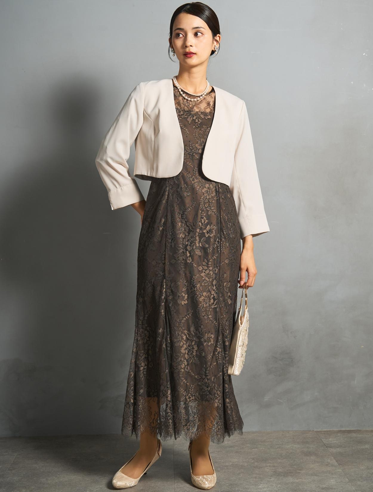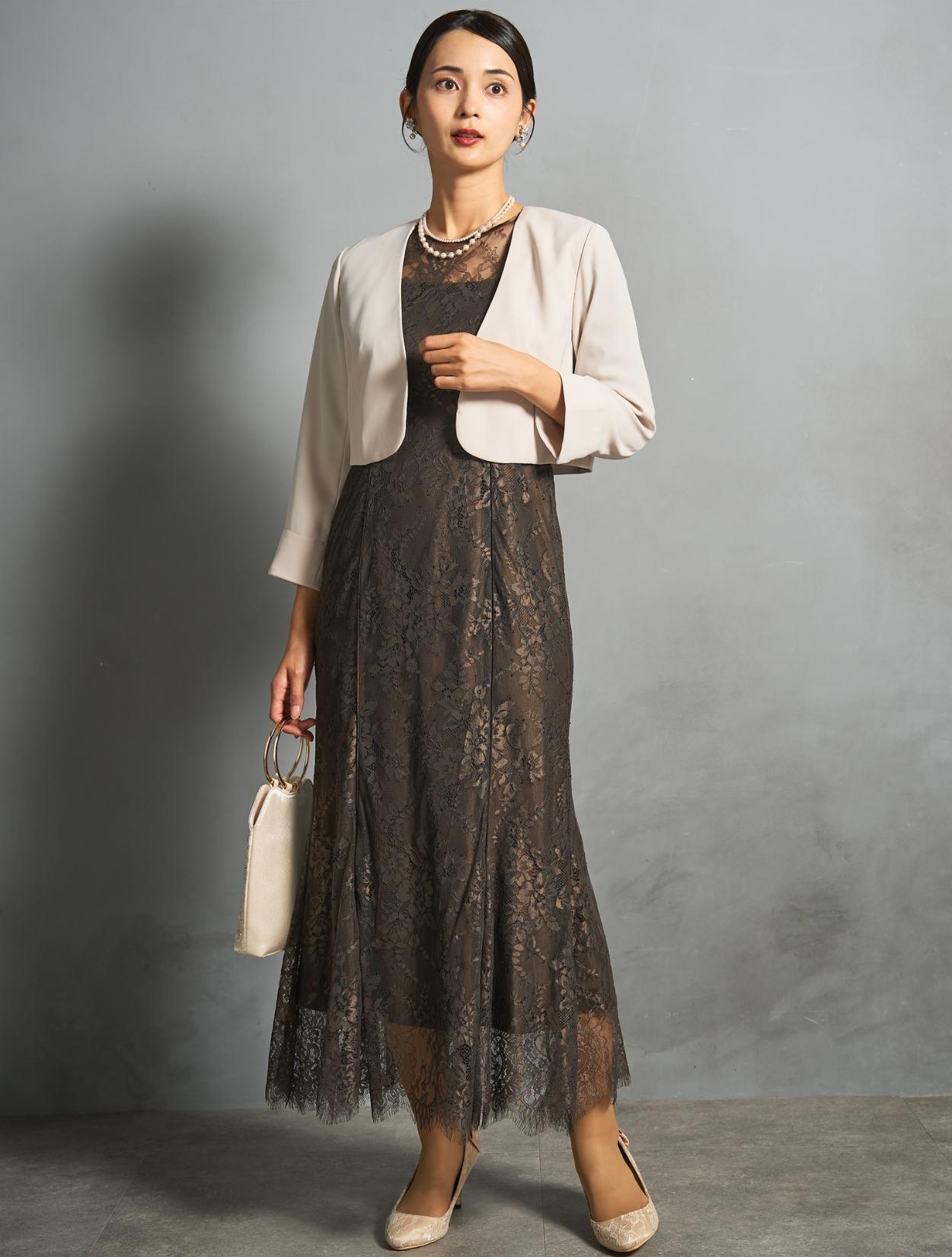 このセット商品は「ドレス・ジャケット・バッグ・ネックレス」の4点コーディネートセットです。