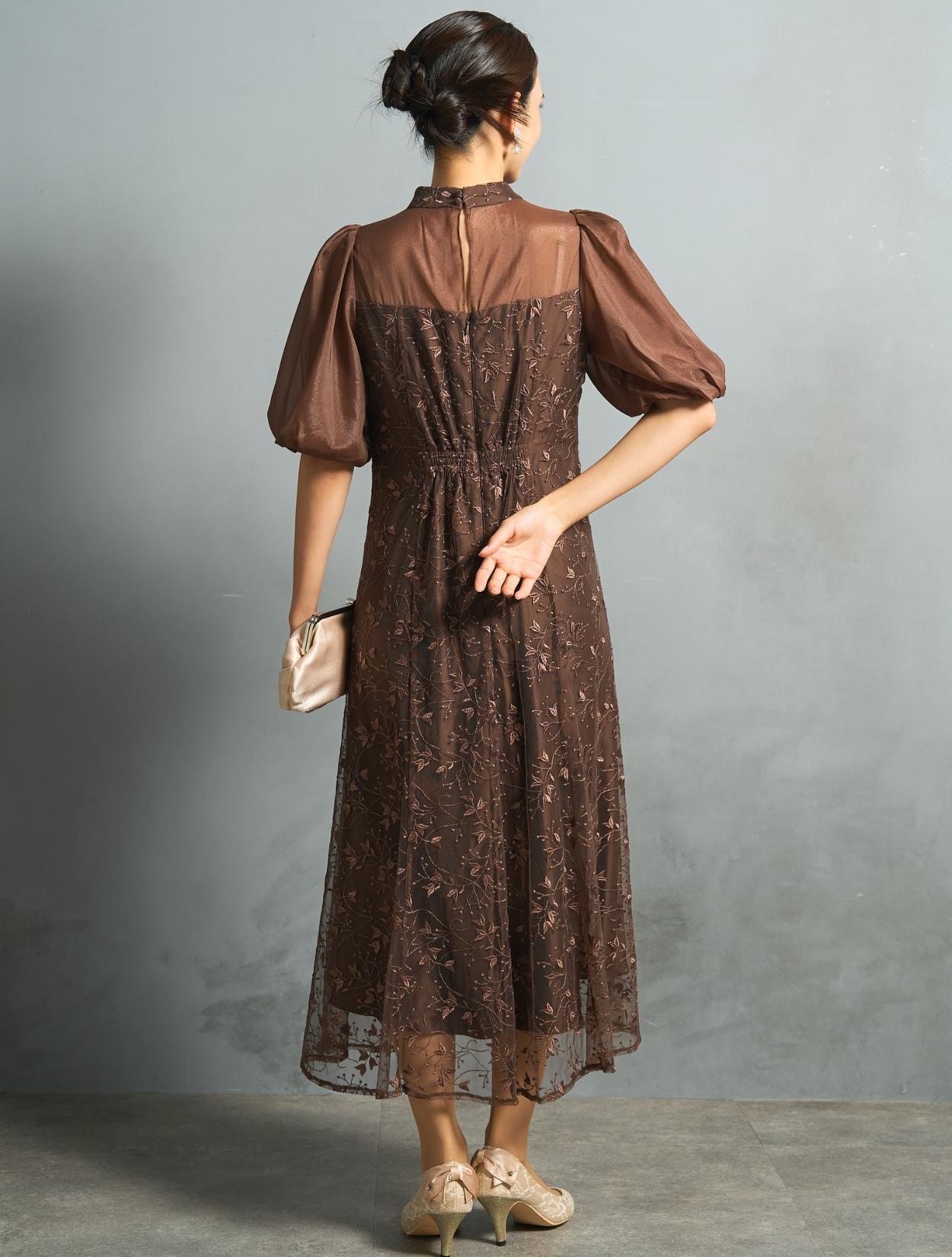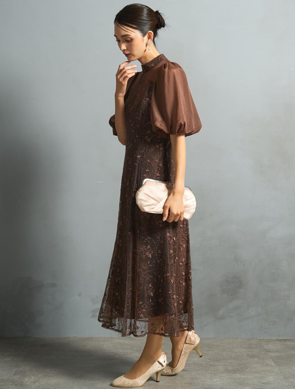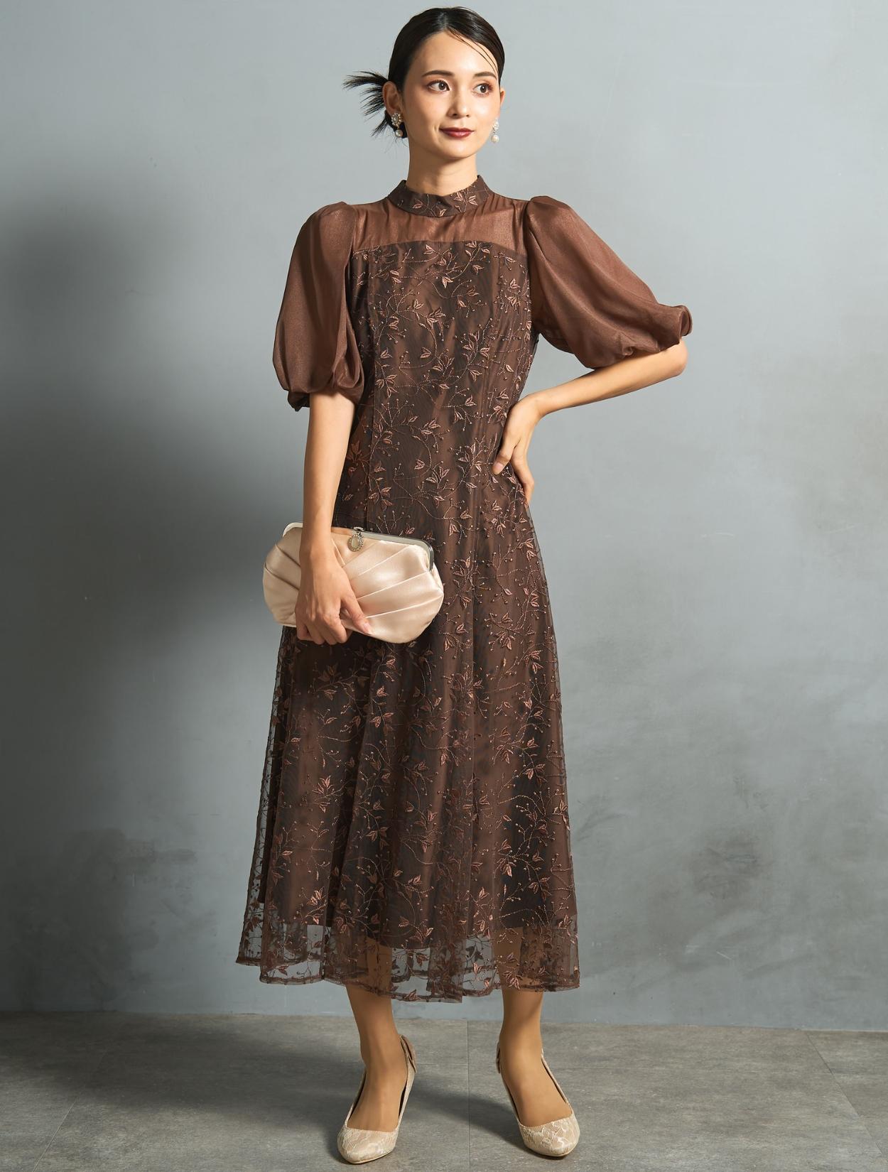 ボタニカル柄のチュールレースがオケージョンにぴったり。レースの柄は大きくなく、控えめな可愛らしさがあります。