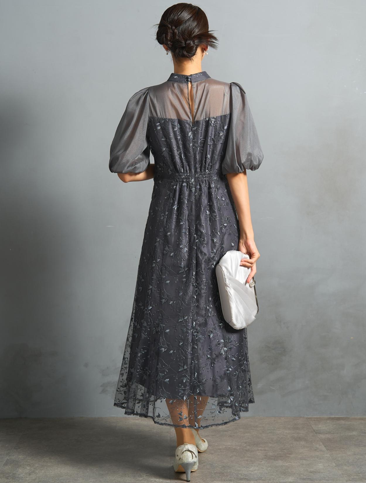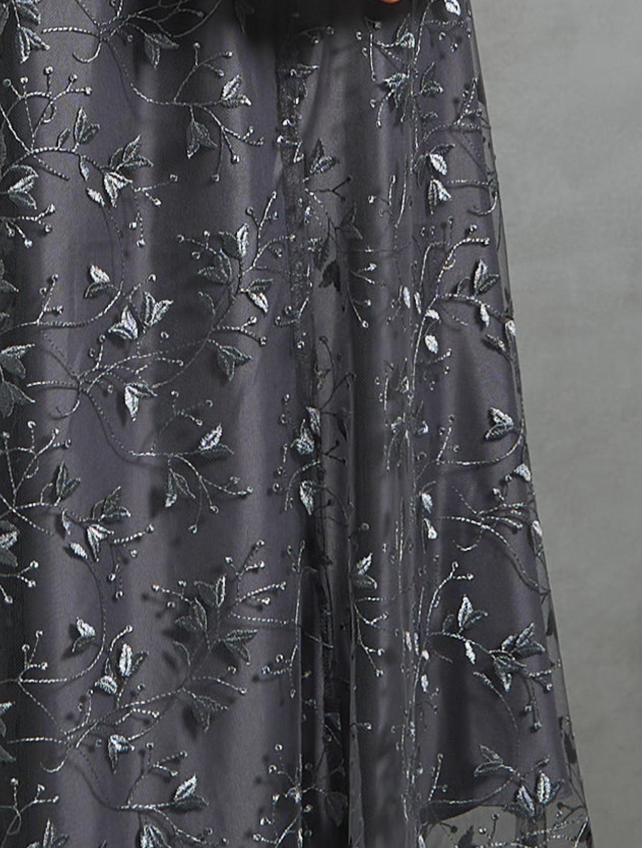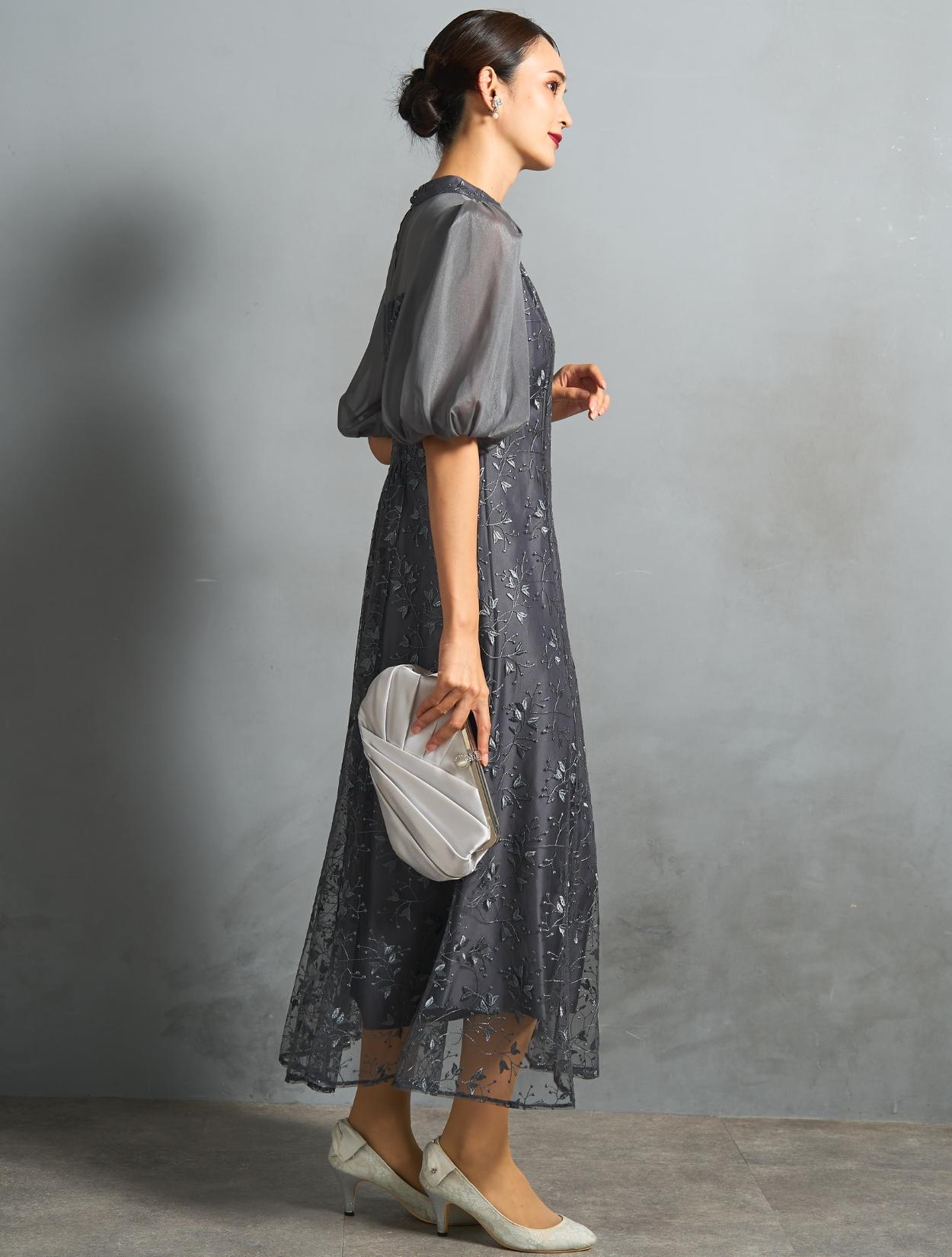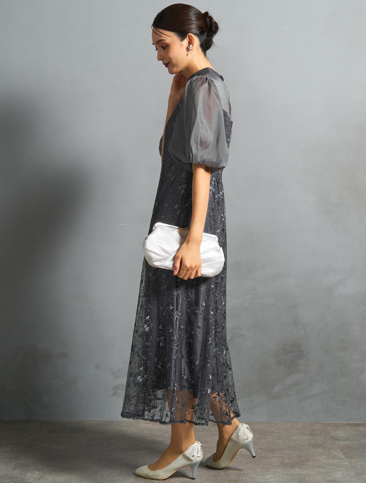 ボタニカル柄のチュールレースがオケージョンにぴったり。レースの柄は大きくなく、控えめな可愛らしさがあります。