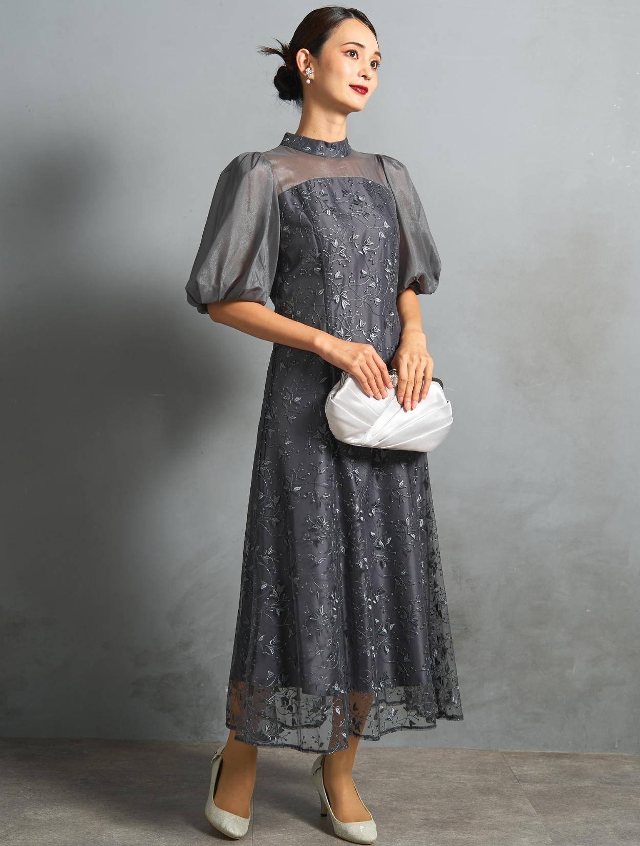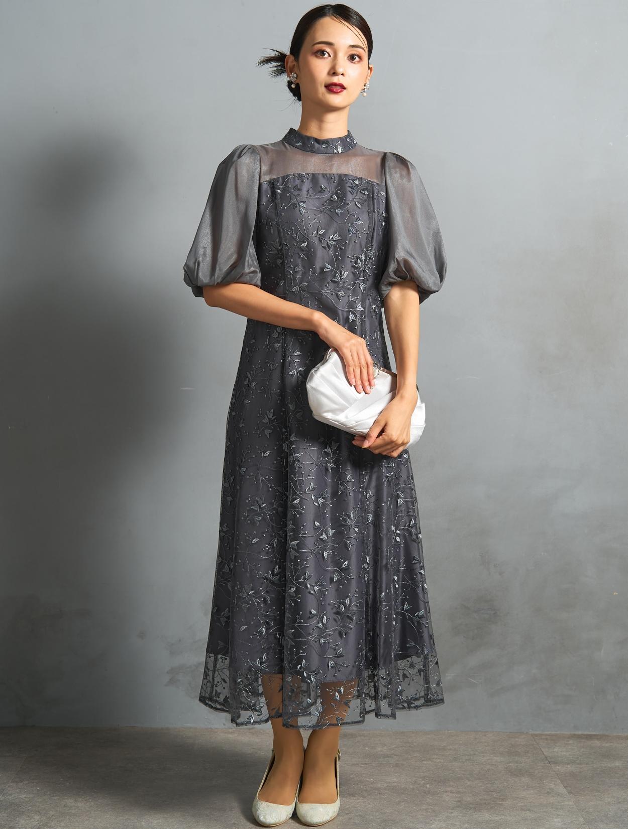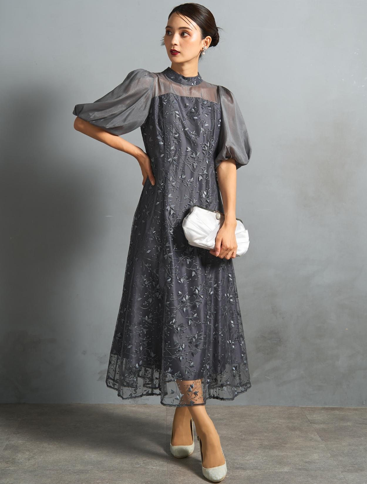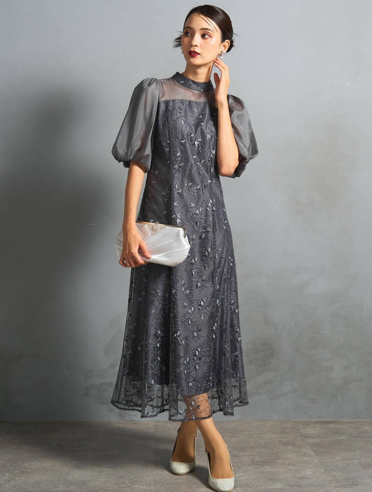 ボタニカル柄のチュールレースがオケージョンにぴったり。レースの柄は大きくなく、控えめな可愛らしさがあります。