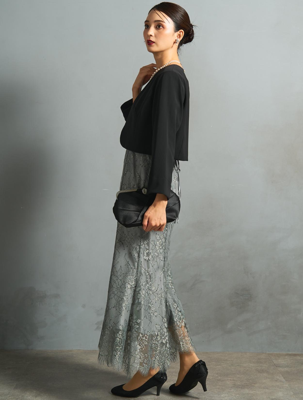このセット商品は「ドレス・ジャケット・バッグ・ネックレス」の4点コーディネートセットです。