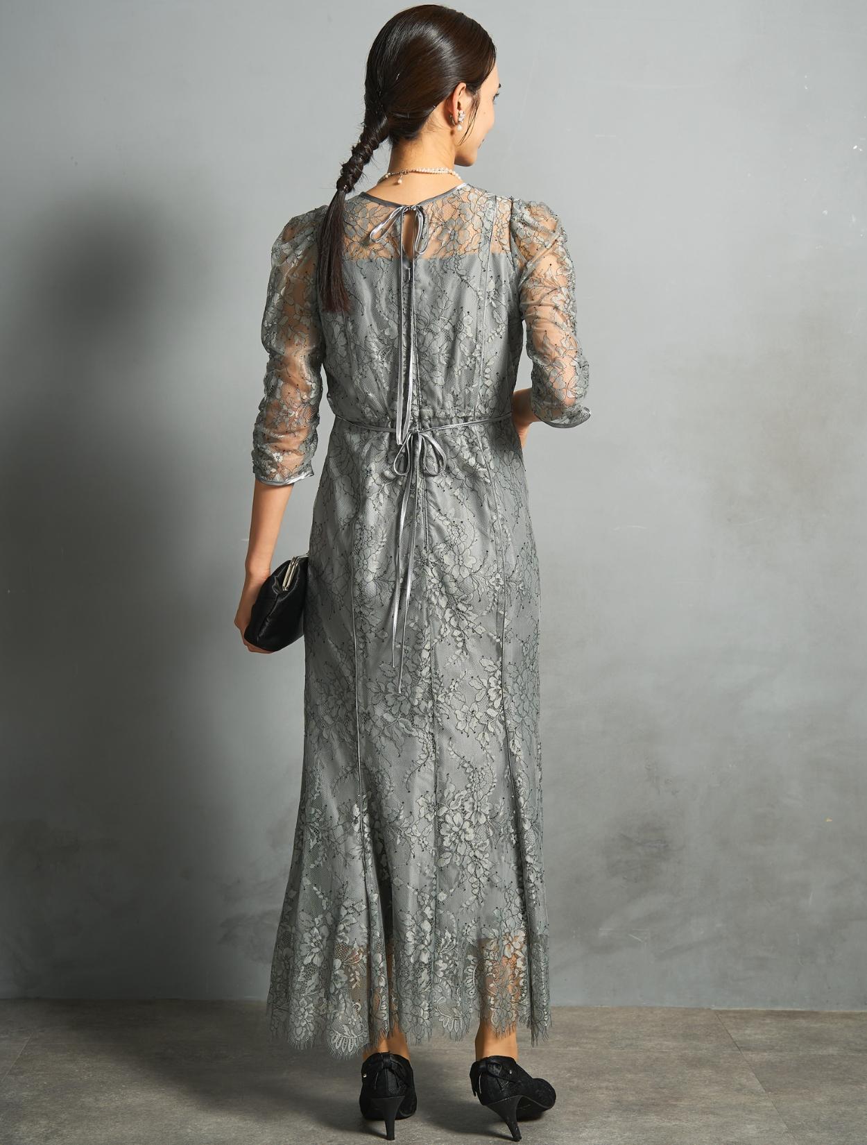 ※レースが使われているドレスは、アクセサリーやバッグのチェーンなど、引っかからない様ご注意ください。肩部分がレースのドレスは、バッグの肩掛けはご遠慮下さい。レースは繊細な素材なので、破れや傷みの原因になります。