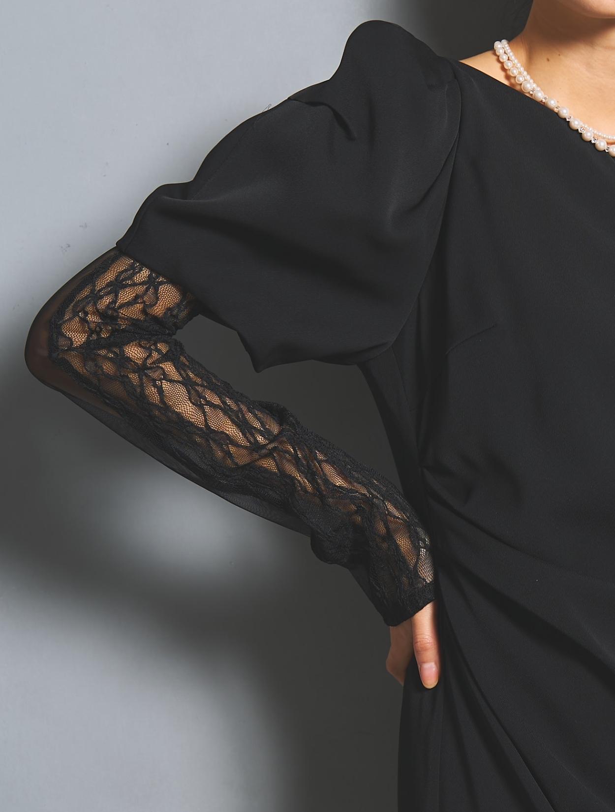 シックな大人カラーのブラック。着痩せ効果も抜群のカラー。ドレープの陰影がブラックカラーに立体感と華やかさを出してくれます。お呼ばれにも親族にもおすすめのカラーです。