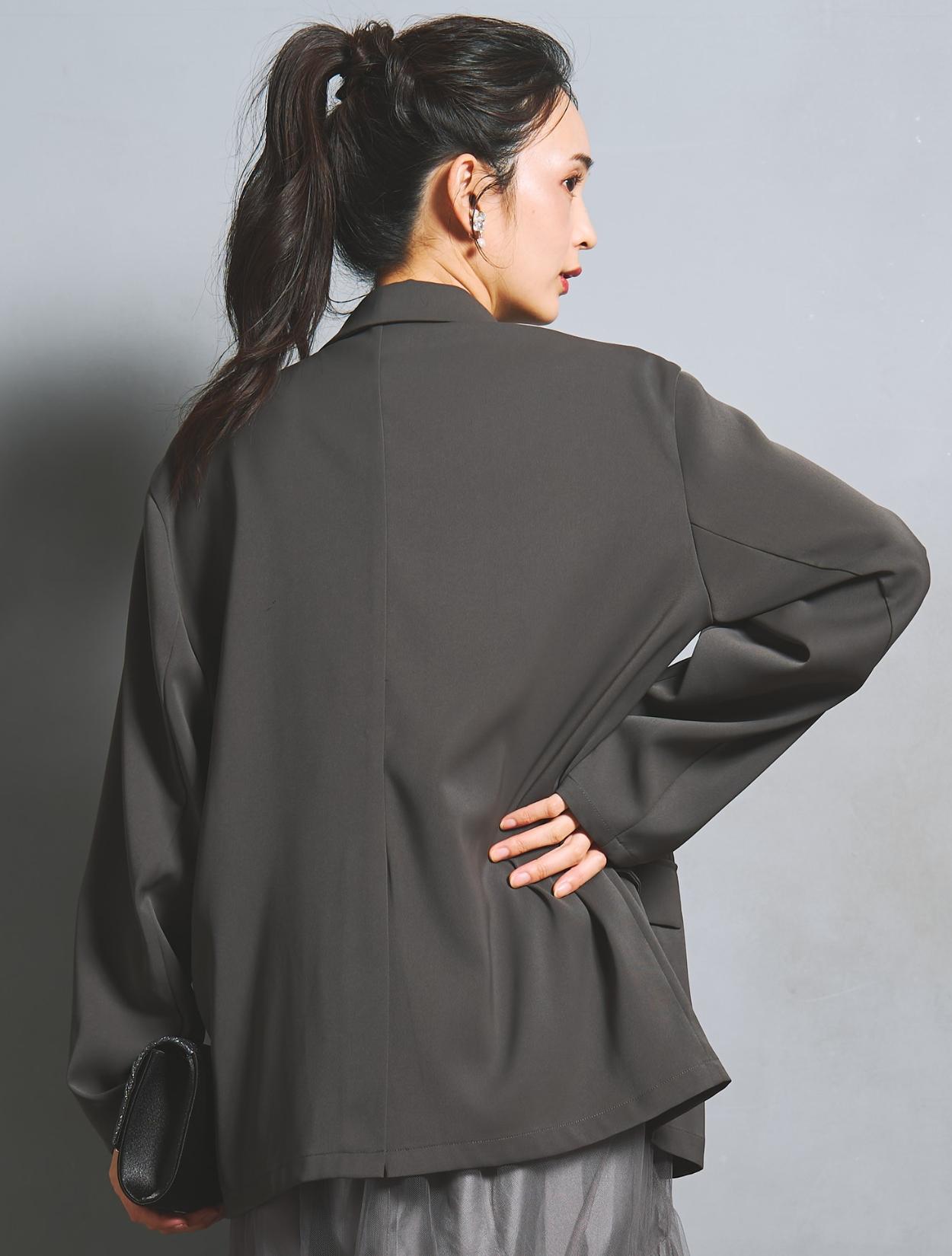 ジャケットはとろみのある生地で、落ち感が程よいリラックスムード。ゆとりを持たせたサイズ感で、サラッと羽織るだけでこなれたスタイリングに。華奢な方がざっくり着てもかっこいい着こなしになりますし、キャミワンピでは上半身の肉付きが気になる…という方にもカバー力抜群の強い味方のジャケットです。