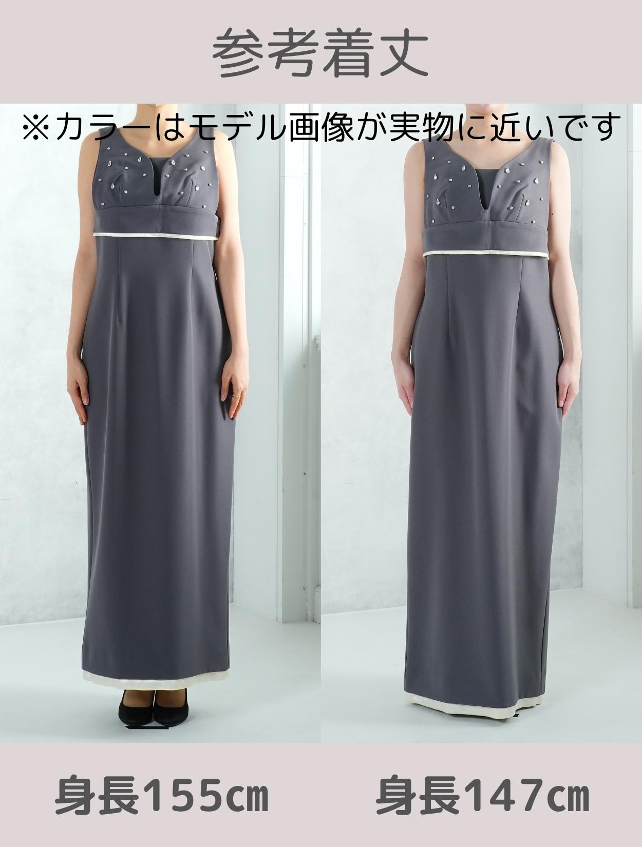 煌めくしずく型のクリスタルビジューが目を惹くビスチェドレス。スタイリッシュにきまるIラインシルエットに、女性らしい輝きがプラスされます。ビスチェとスカートの裾からは、光沢のあるサテン生地がのぞくデザイン。さり気なくロングドレスに艶っぽいメリハリを付けてくれます。