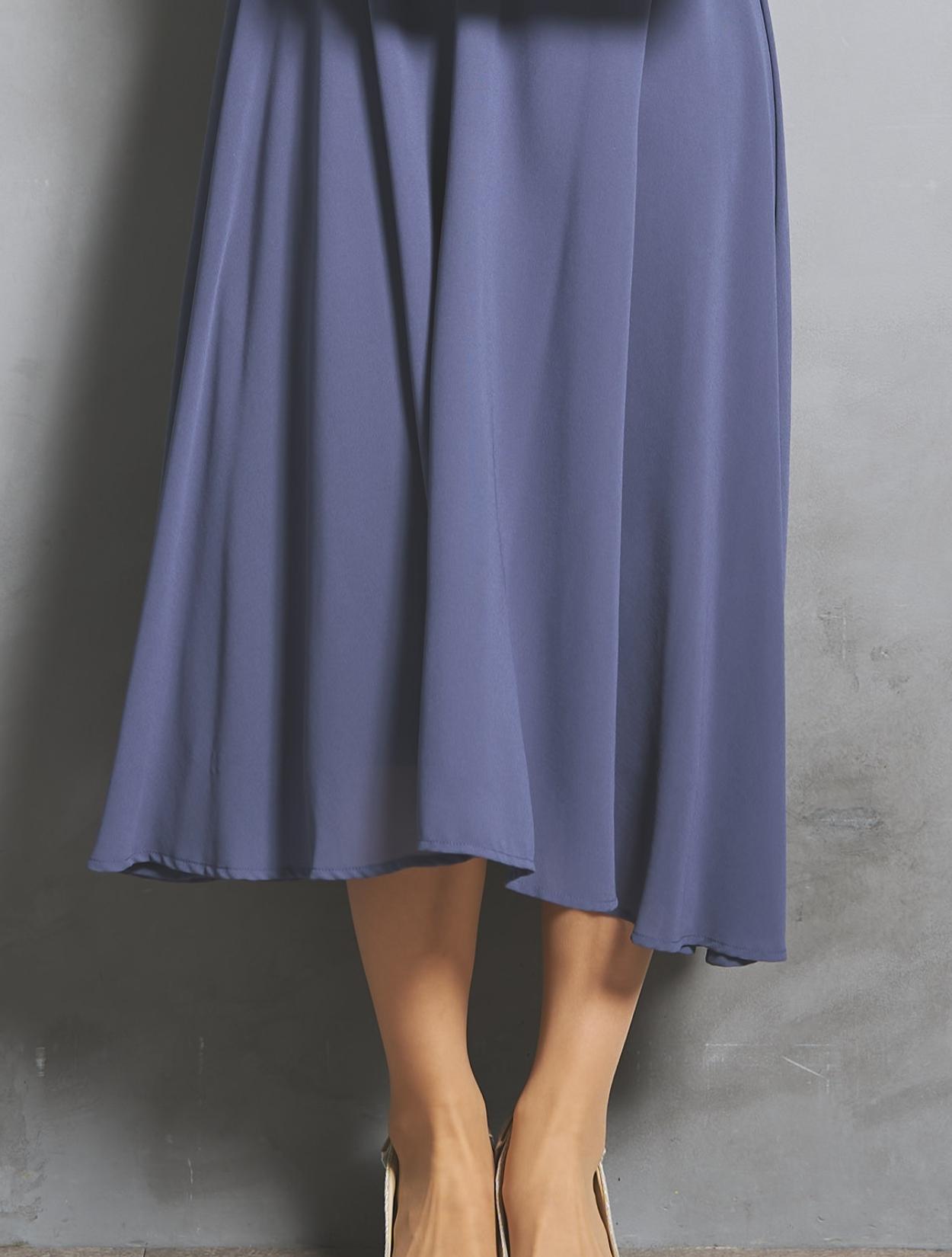お腹周り、バスト、お尻の体型カバーにおすすめのドレス。オーバーブラウスが気になる箇所をまとめてカバーしつつ、すっきり見える優秀なデザイン。着丈は長過ぎないので、小柄な方にもおすすめです。また、脚を隠したい方にも◎。ふくらはぎまでしっかり隠して、細くなる足首が覗くデザインは脚をきれいに見せてくれます。