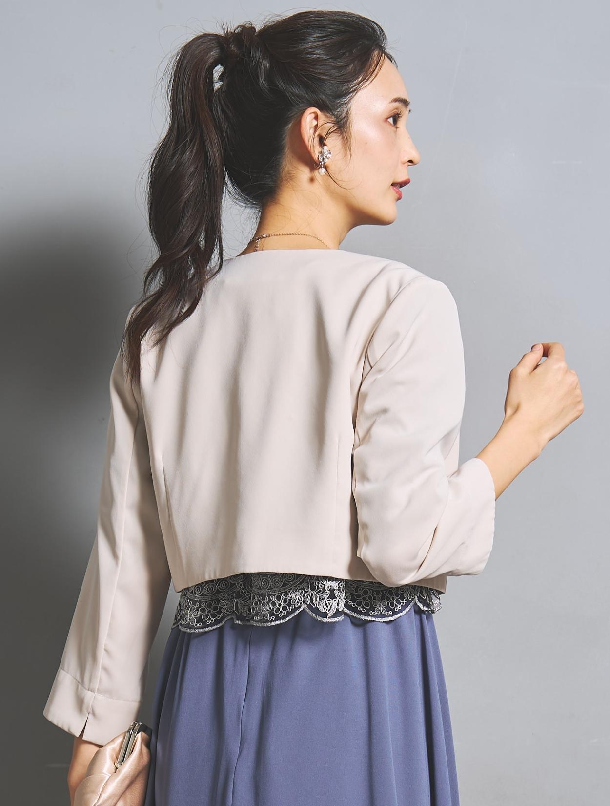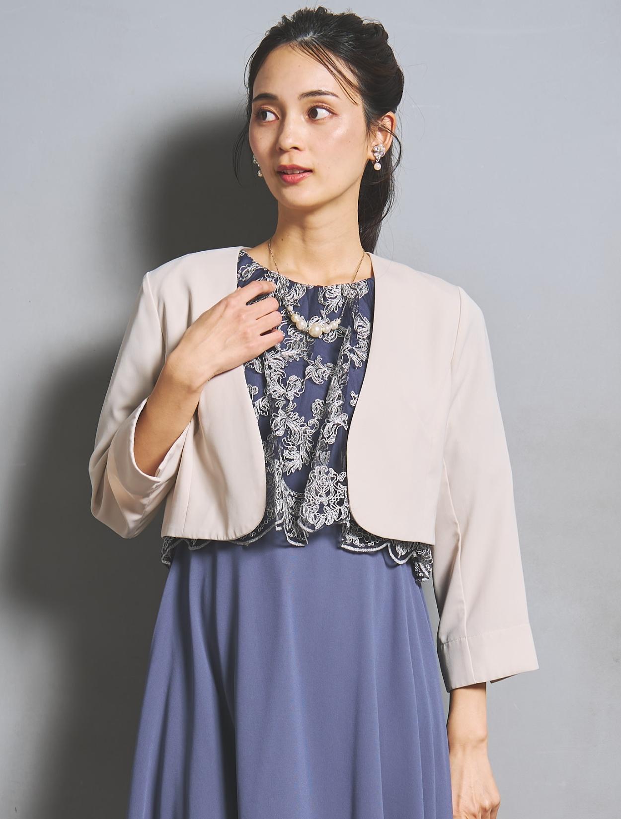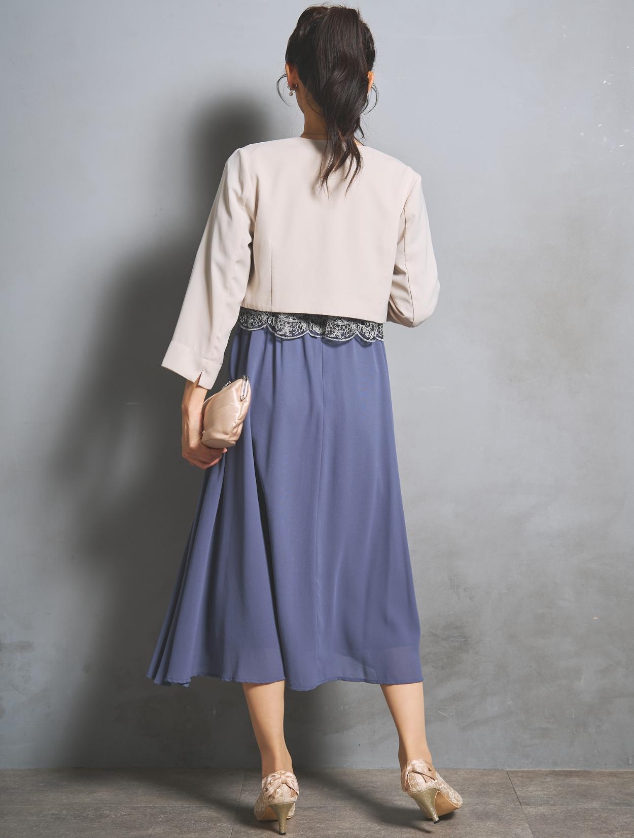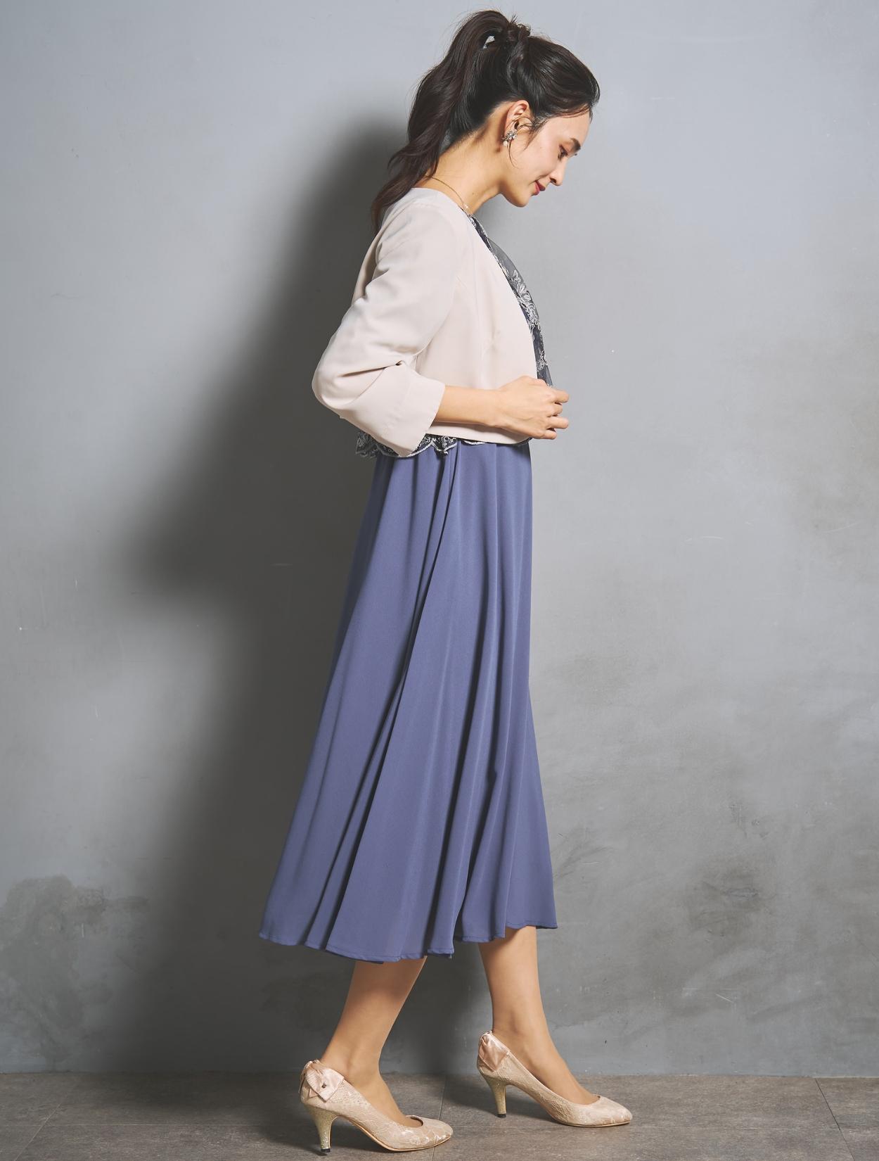オーバーブラウスのレースは、華やかな刺繍のスカラップレース。派手過ぎないドレスですが、華やかさはあります。様々な年代の方に着ていただけるドレスです。