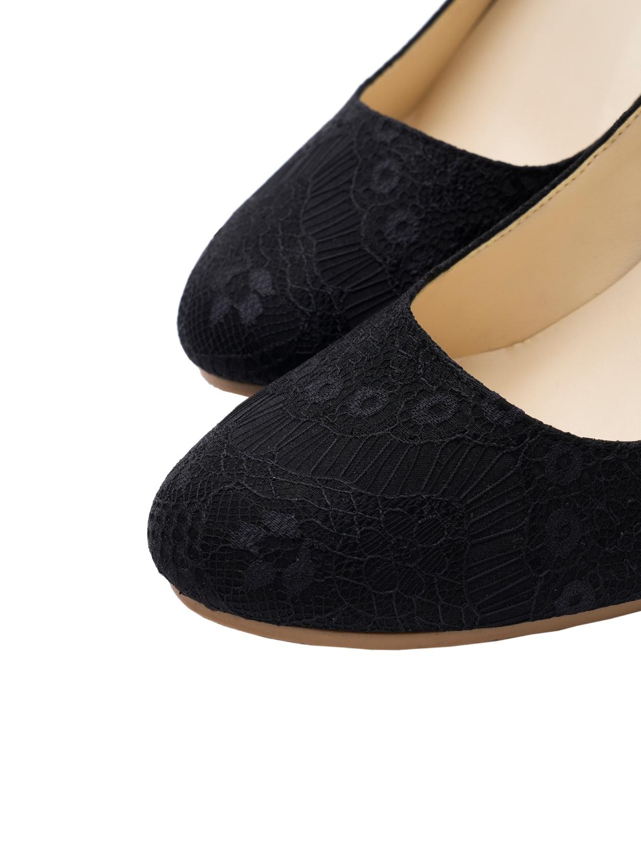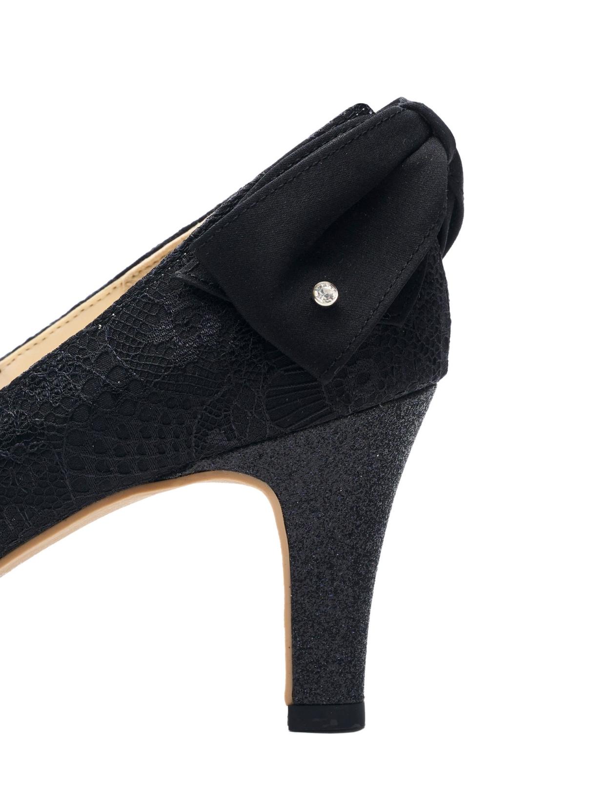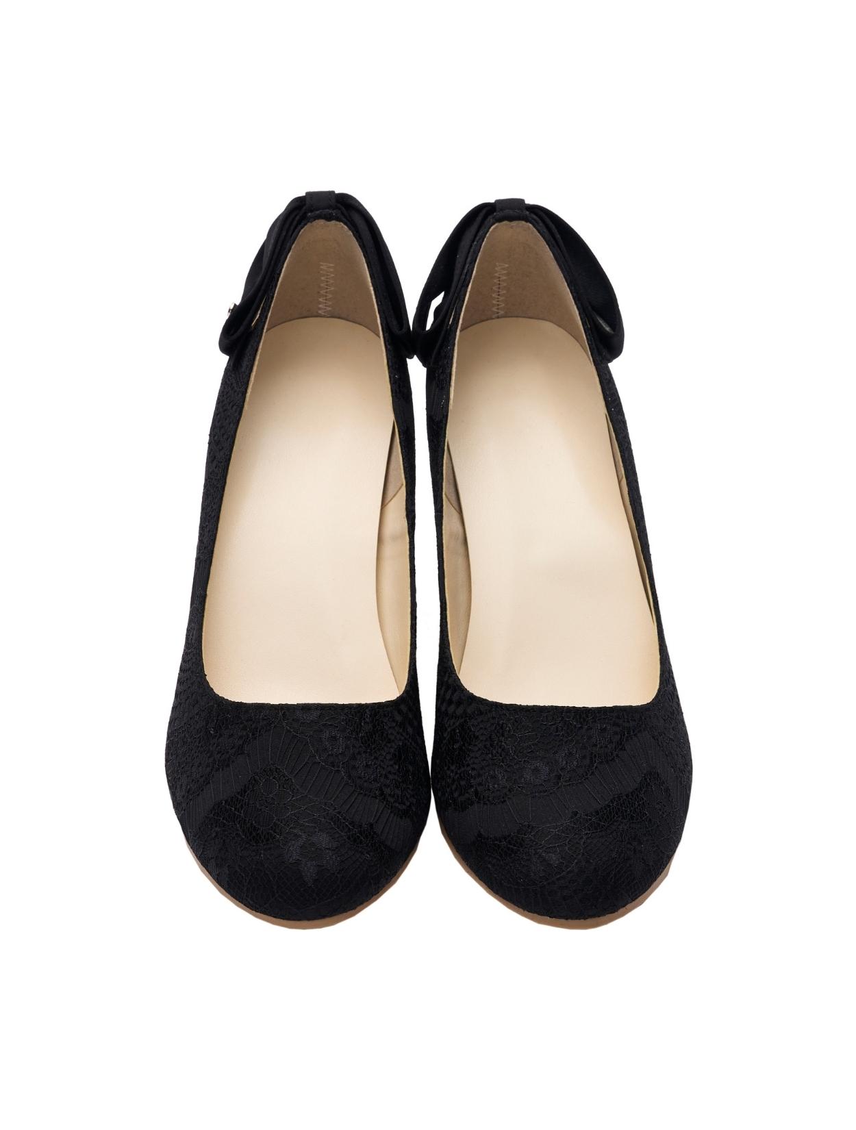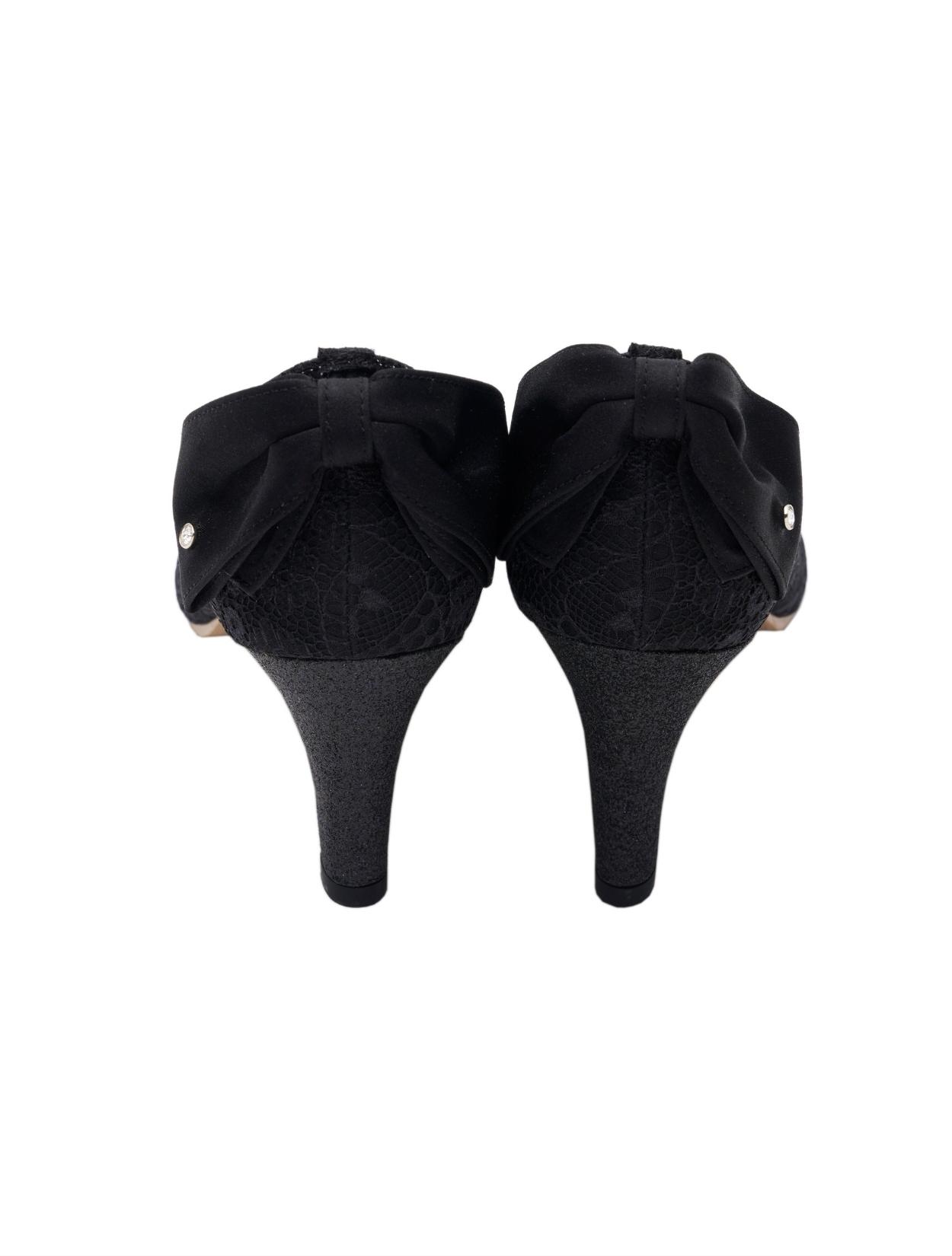 総レース×バックリボンパンプス甲深(ブラック/24.5)