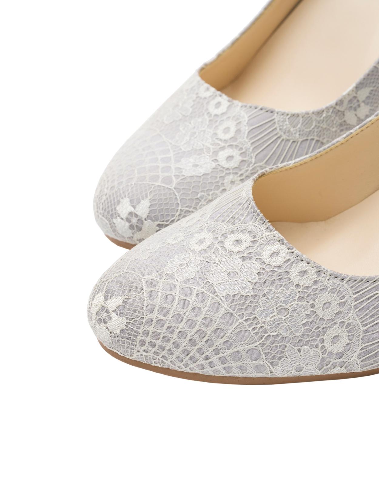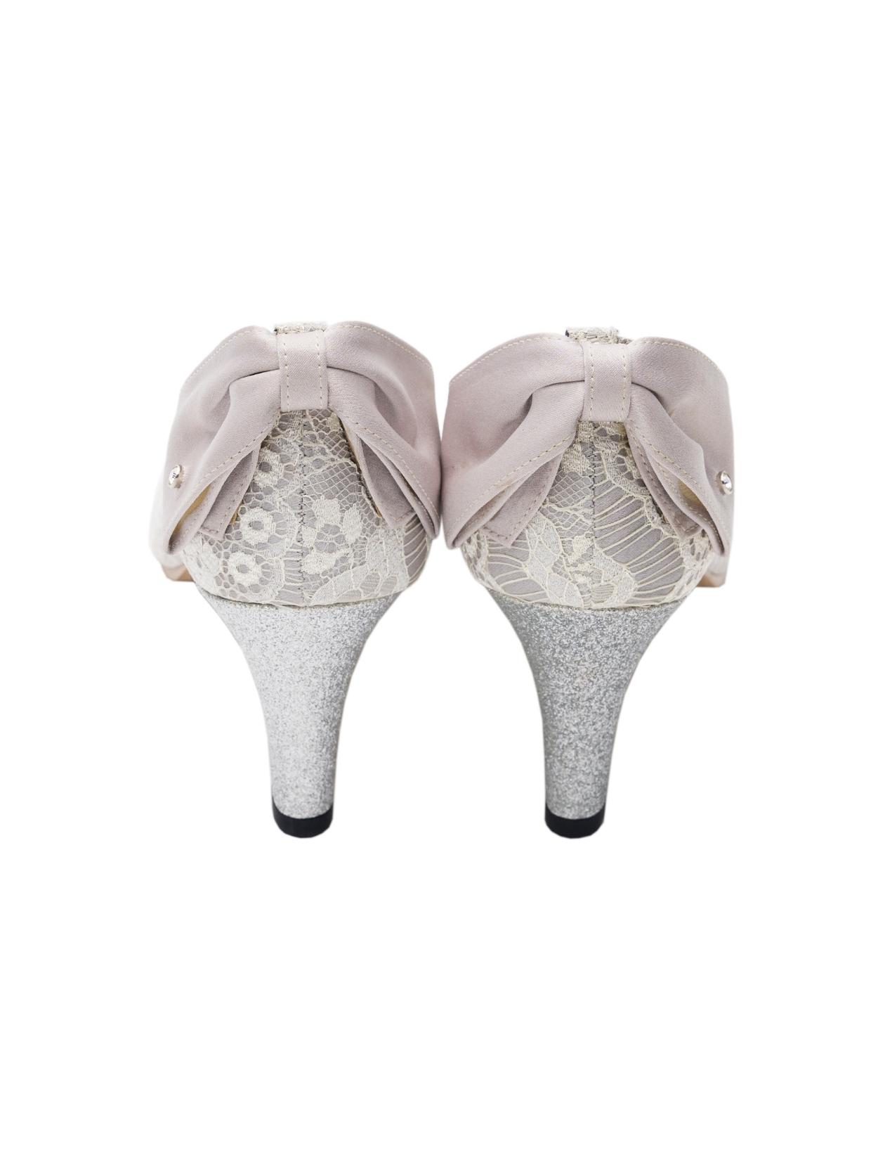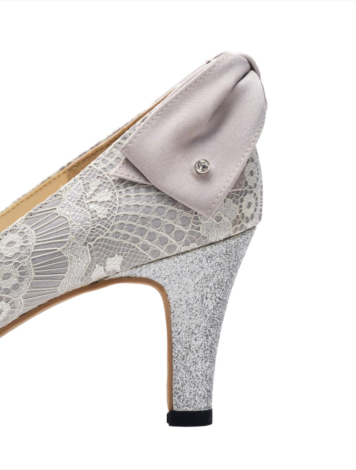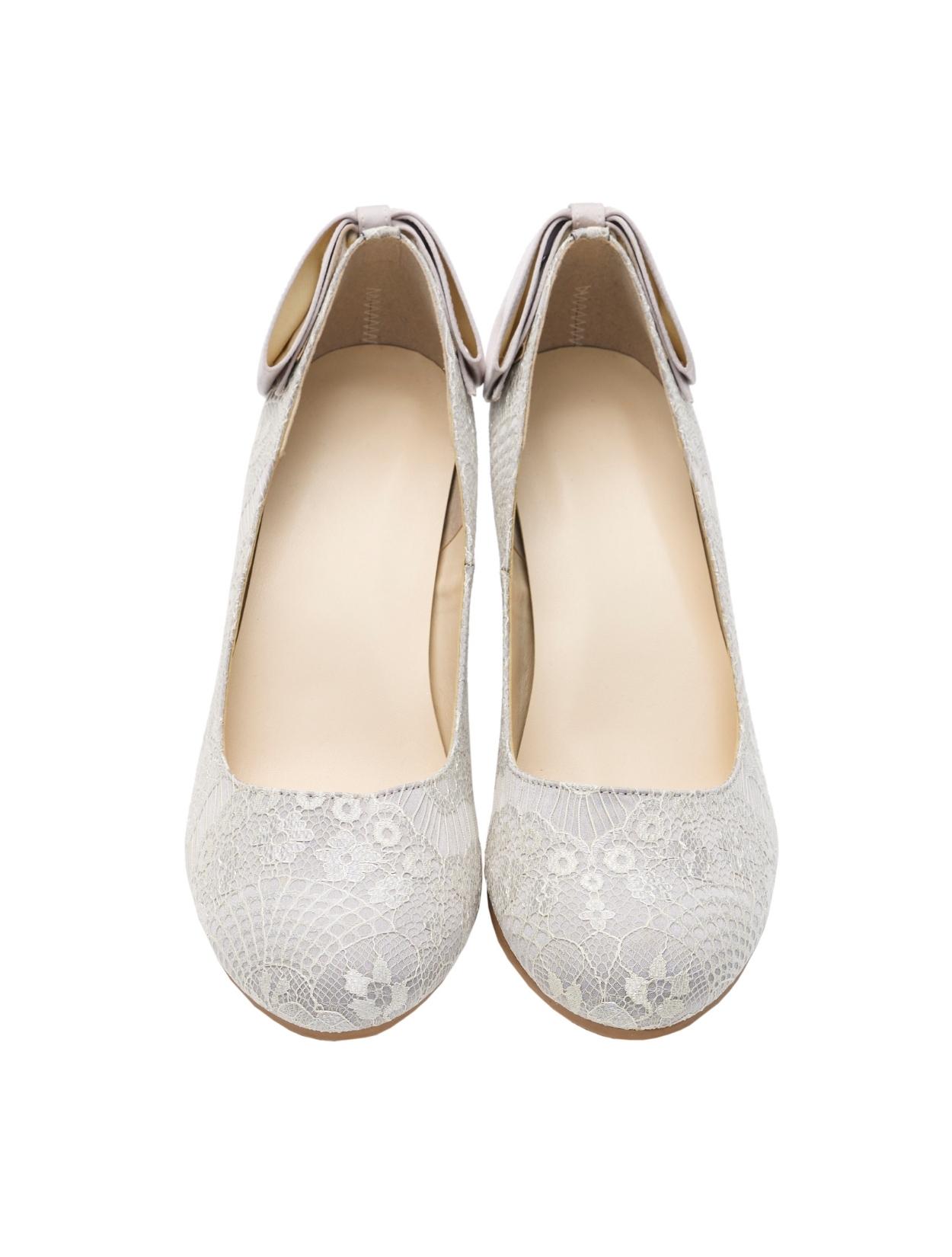 総レース×バックリボンパンプス甲深(シルバー/24.5)