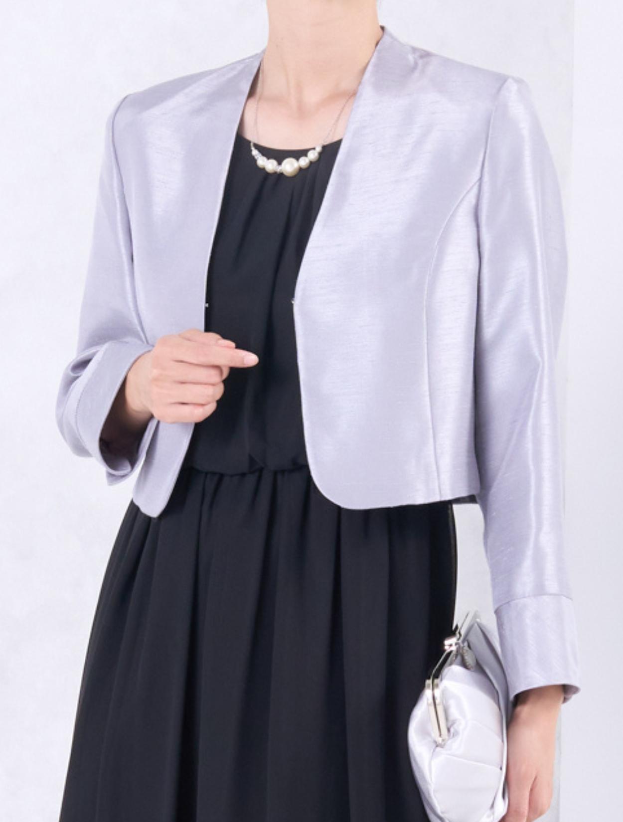 フォーマル感のあるシャンタン素材のジャケットは、親族コーデに人気のアイテムです。