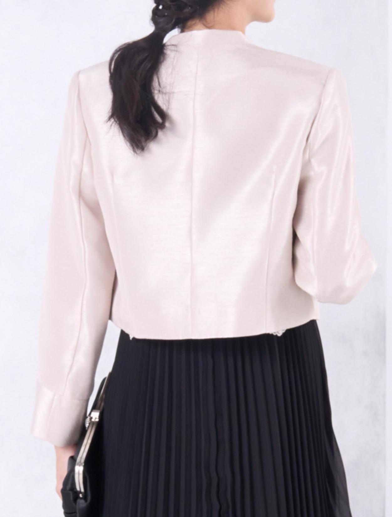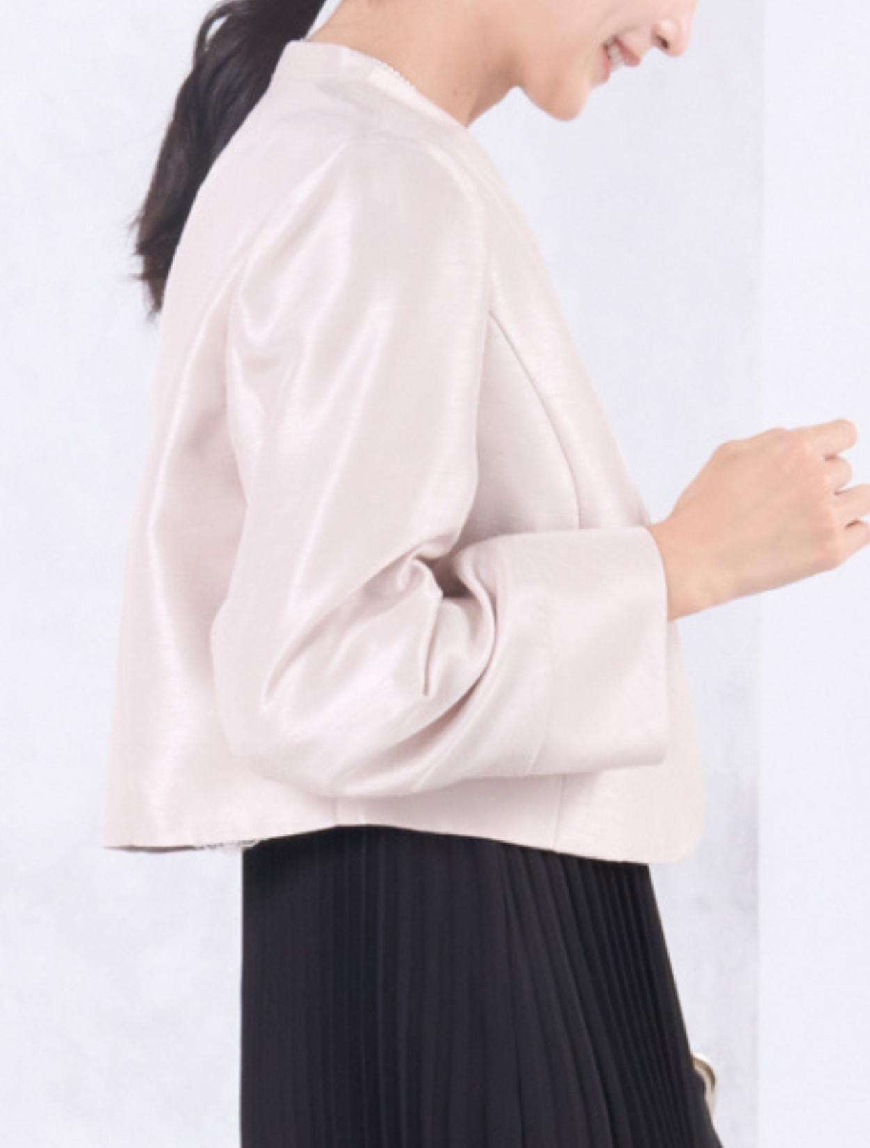 フォーマル感のあるシャンタン素材のジャケットは、親族コーデに人気のアイテムです。