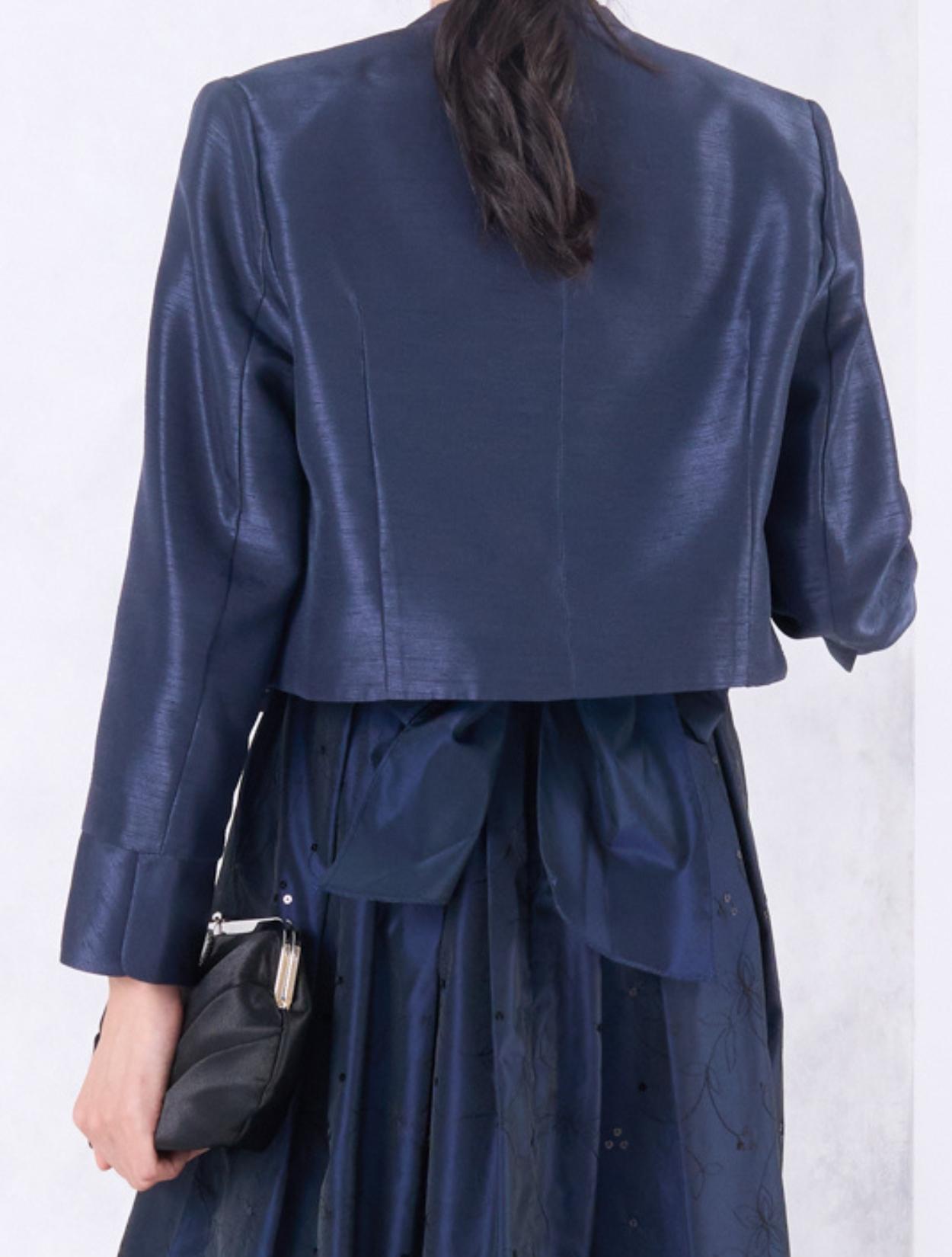 フォーマル感のあるシャンタン素材のジャケットは、親族コーデに人気のアイテムです。