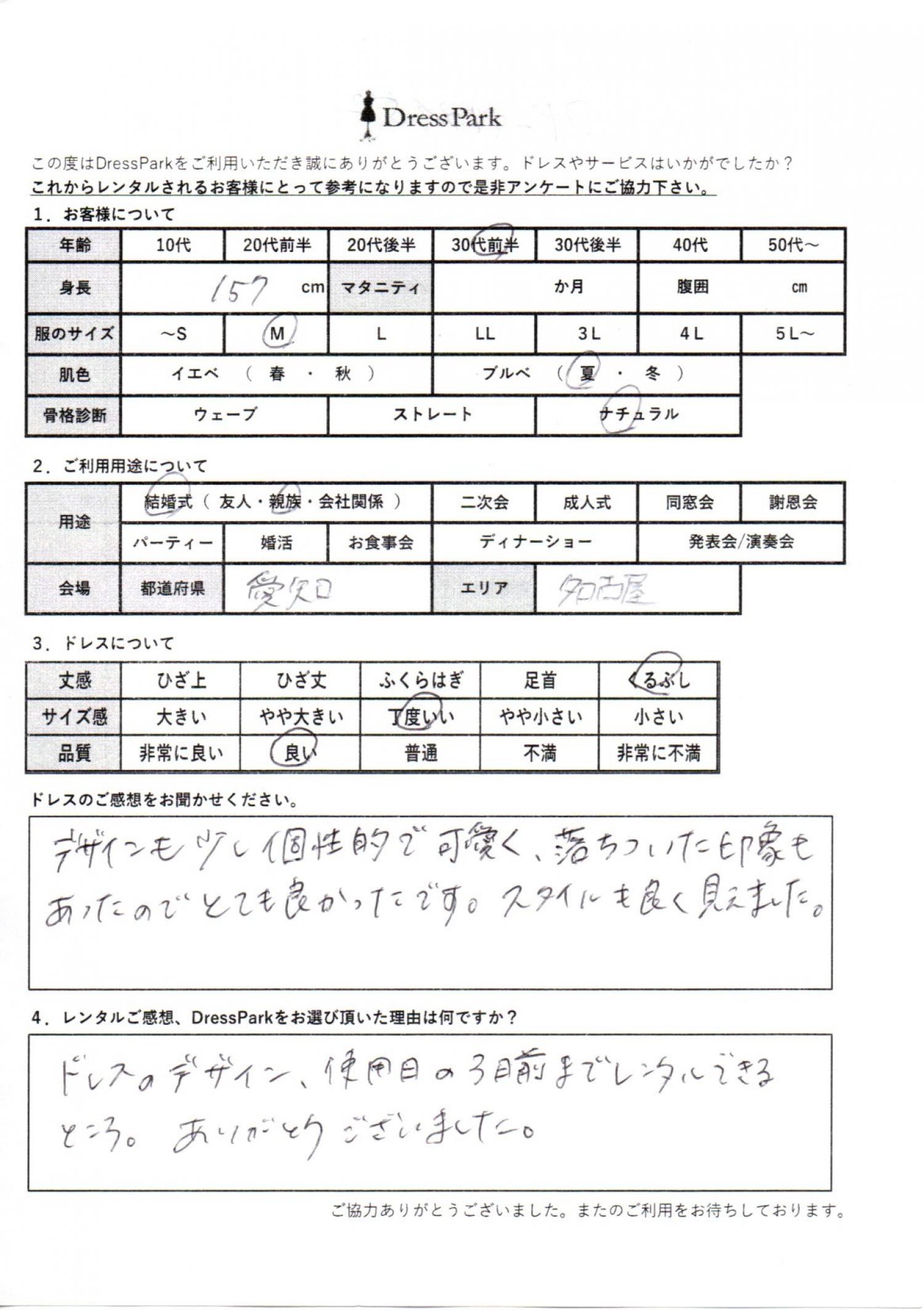 愛知県 S.T様157㎝ Mサイズ名古屋