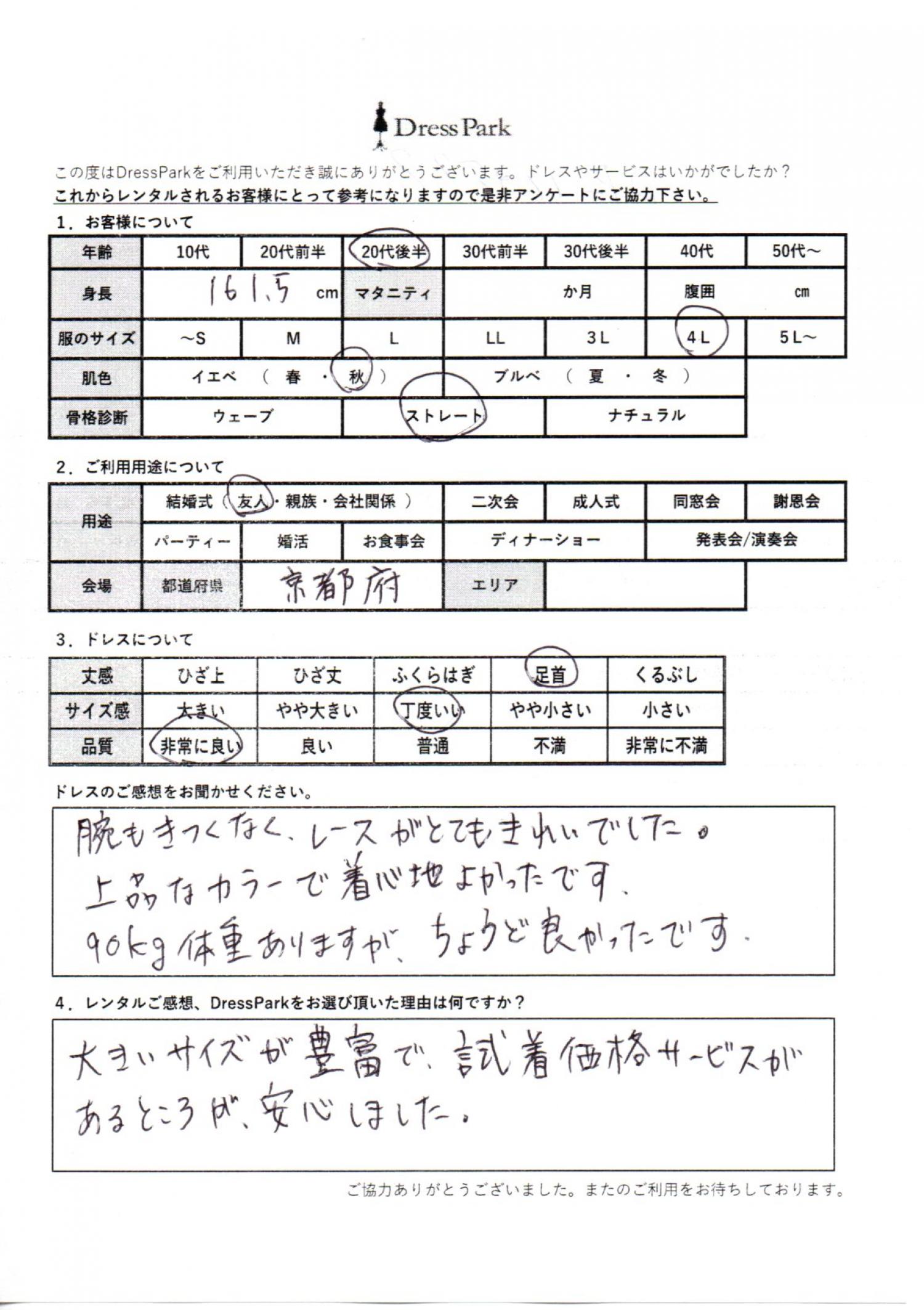 京都府 K.M様161㎝ 4Lサイズ
